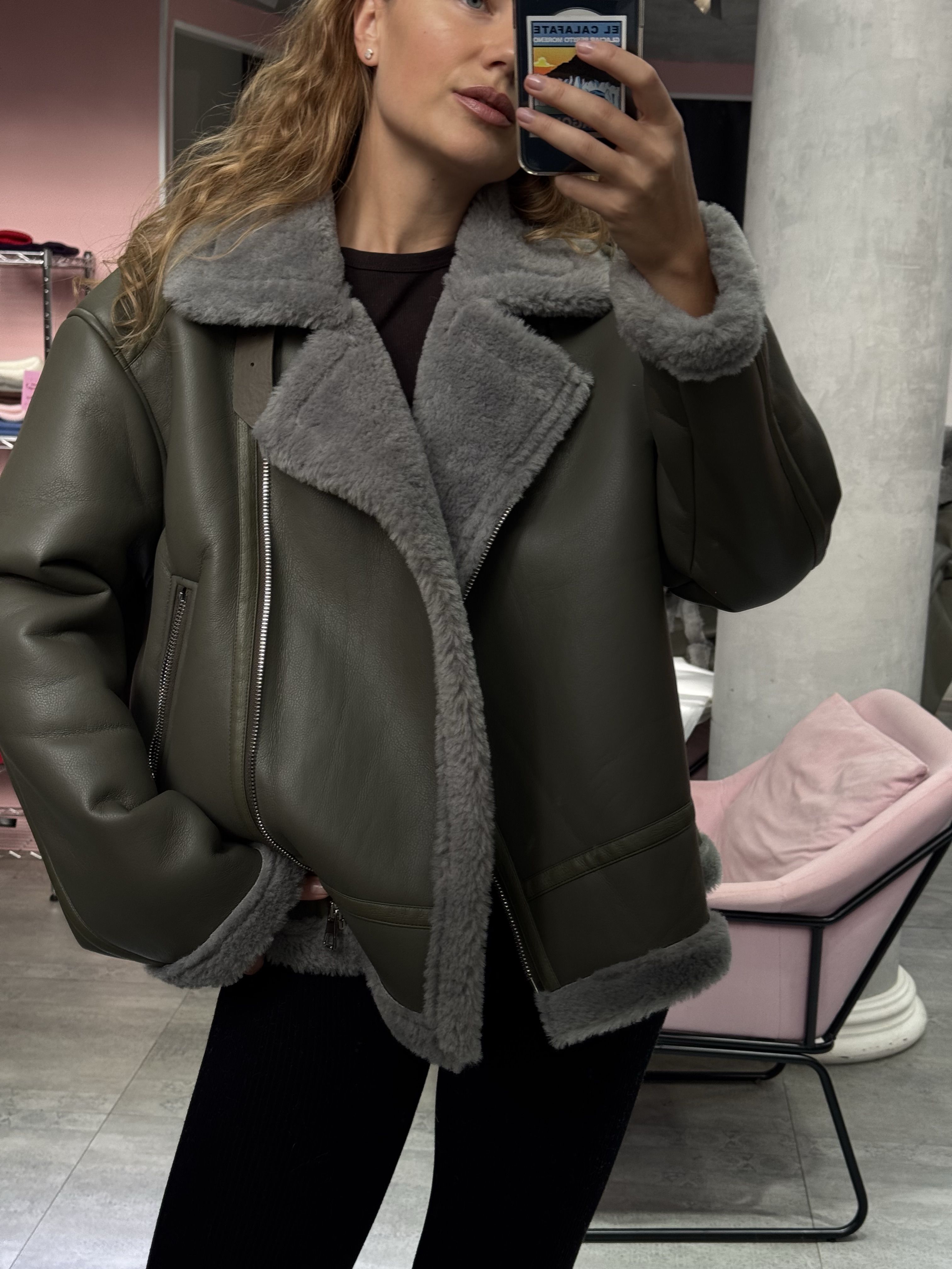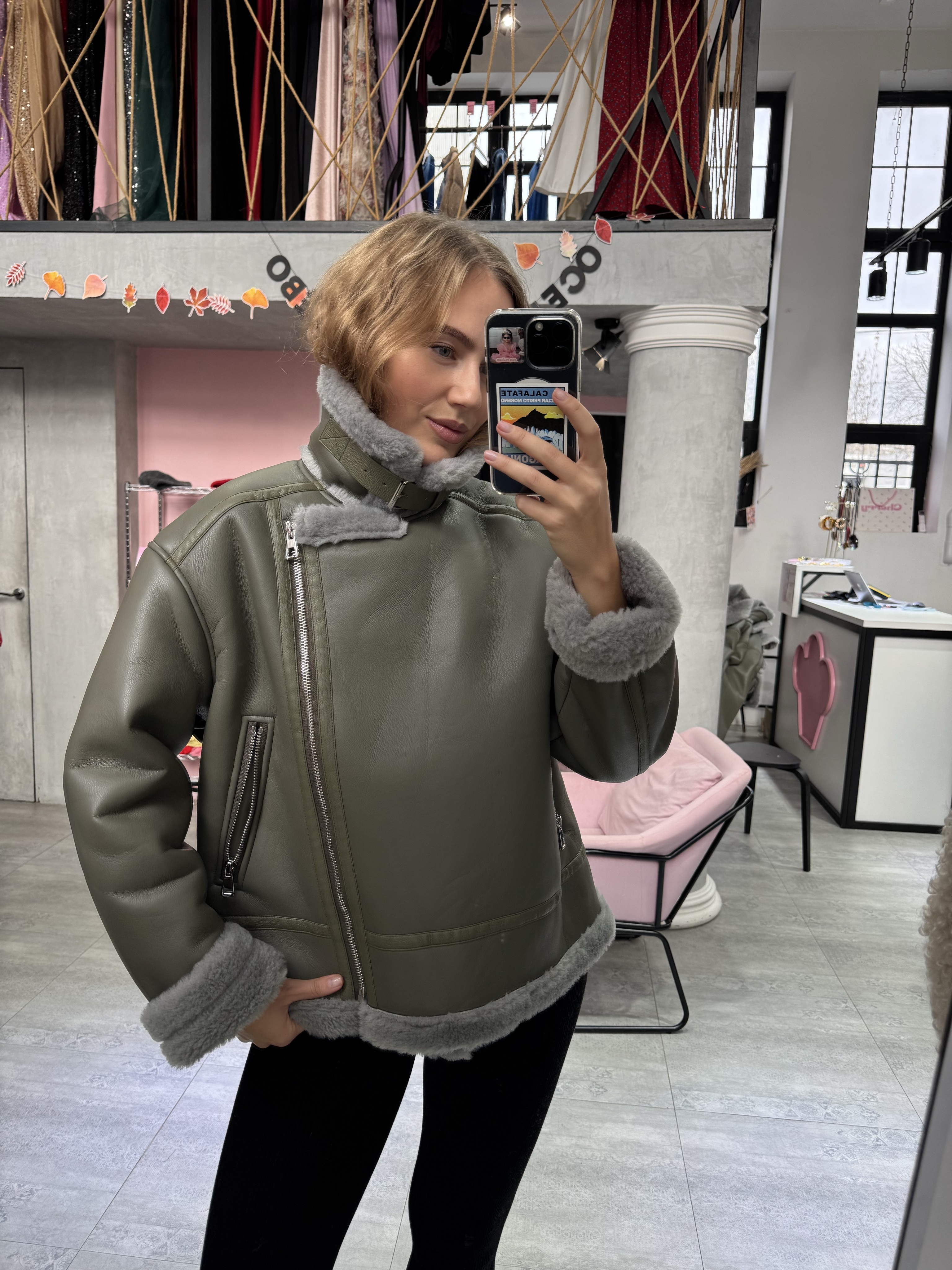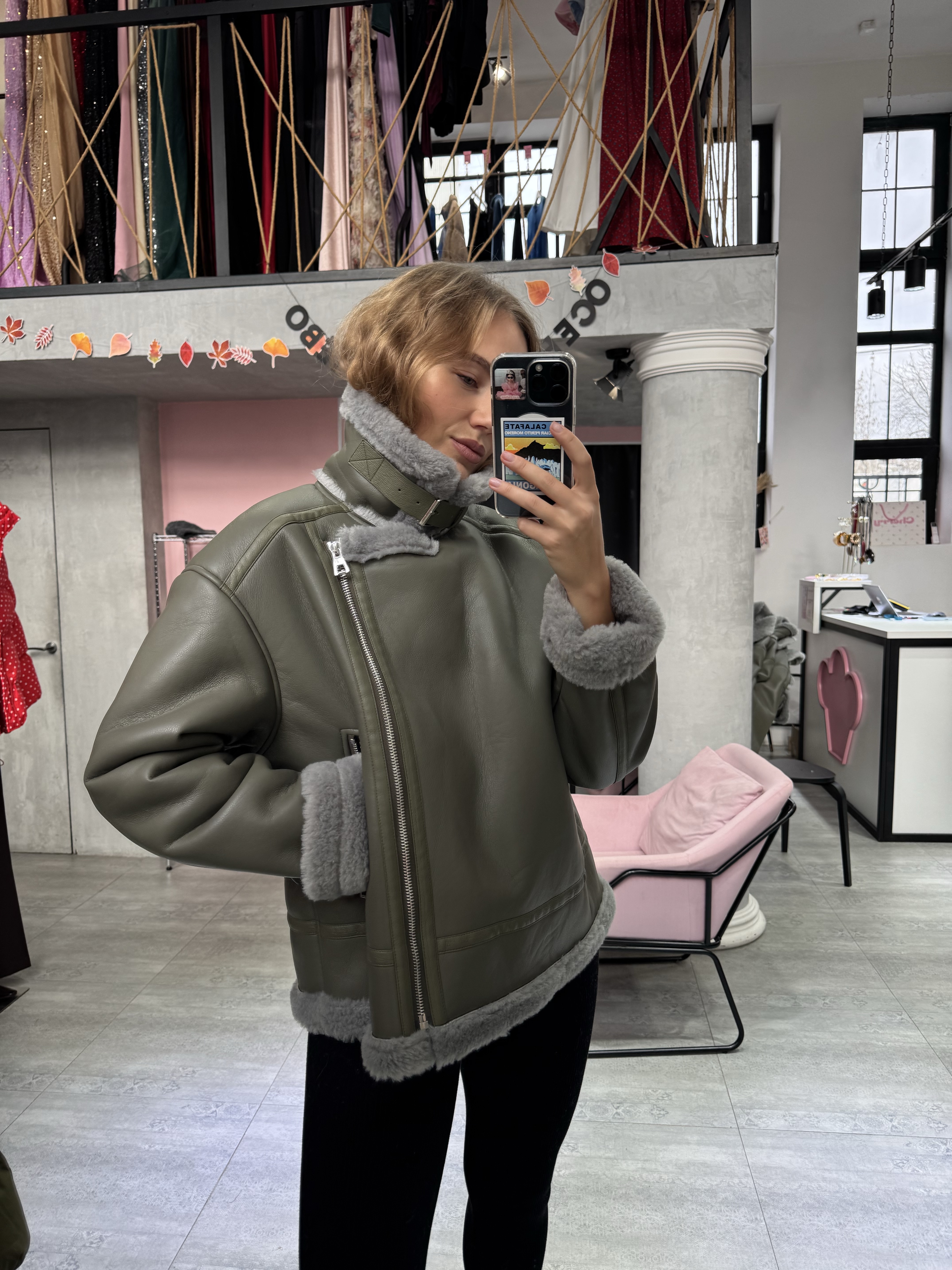 Эта укороченная дублёнка создаёт ощущение современного стиля и комфорта с первого взгляда. Модель выполнена из плотного материала с мягкой фактурной подкладкой, которая красиво выглядывает по краям и добавляет образу выразительности. Широкие лацканы и слегка объёмный силуэт подчёркивают тренд на расслабленную верхнюю одежду, которая одновременно выглядит аккуратно и стильно.