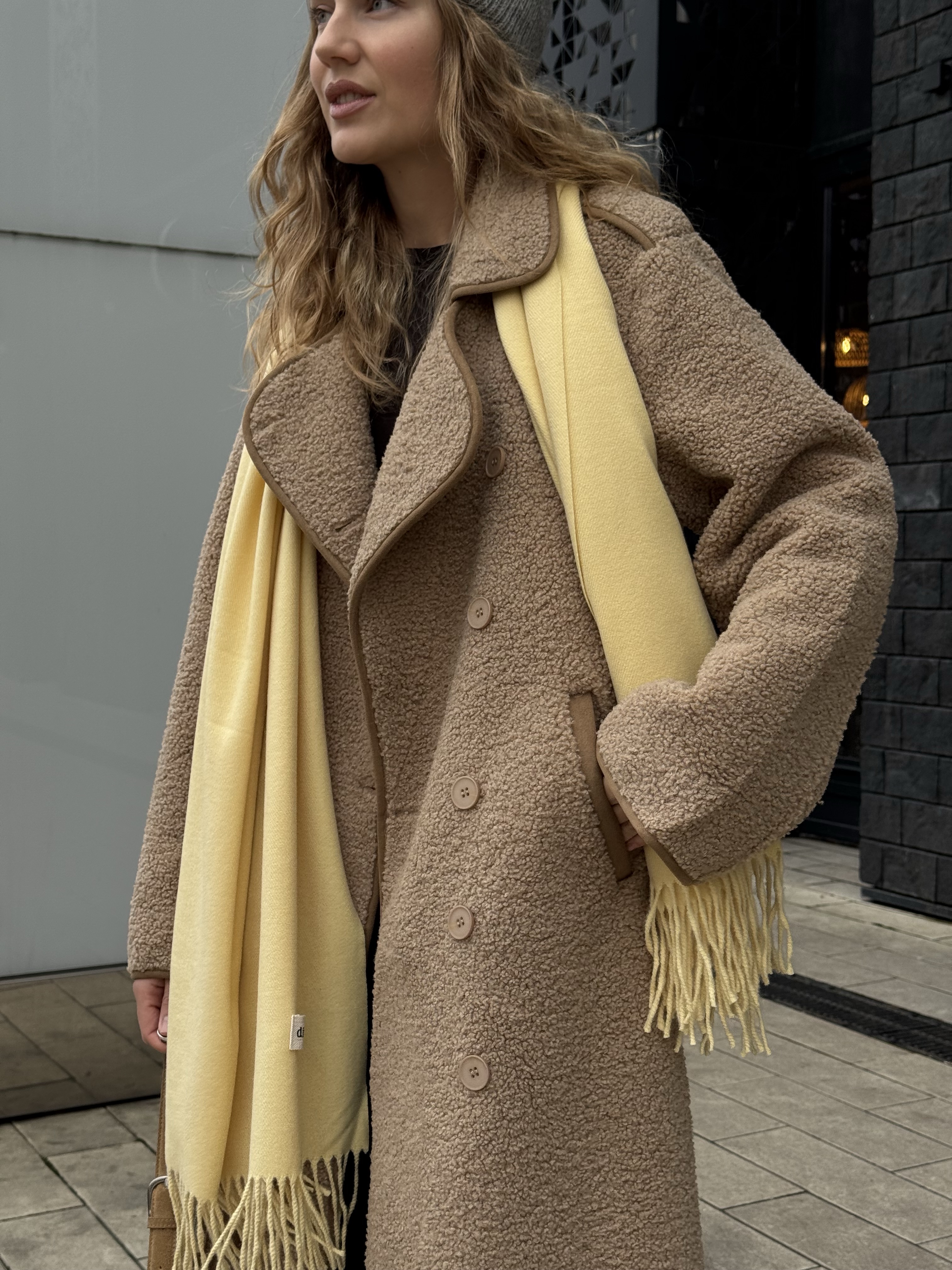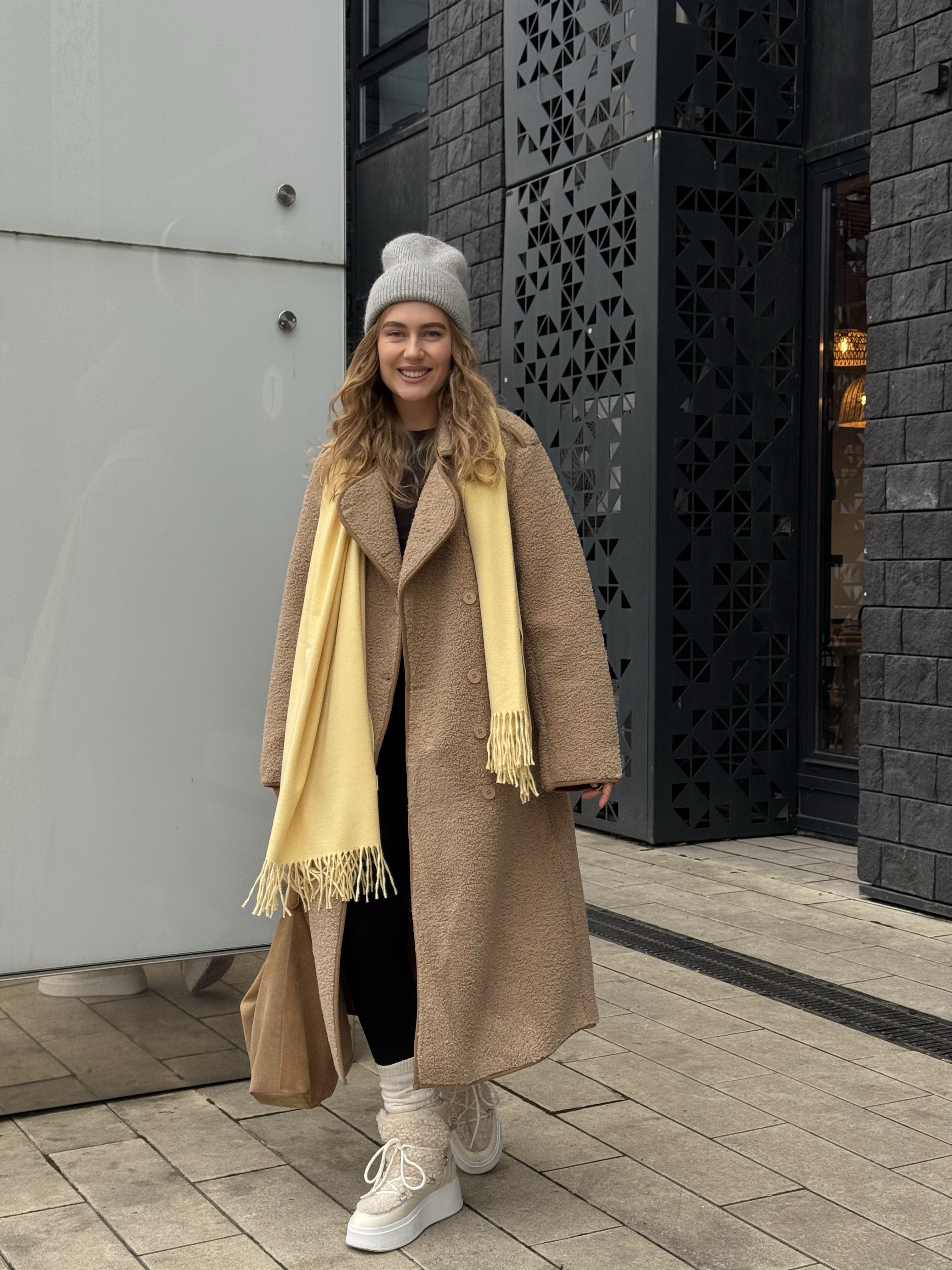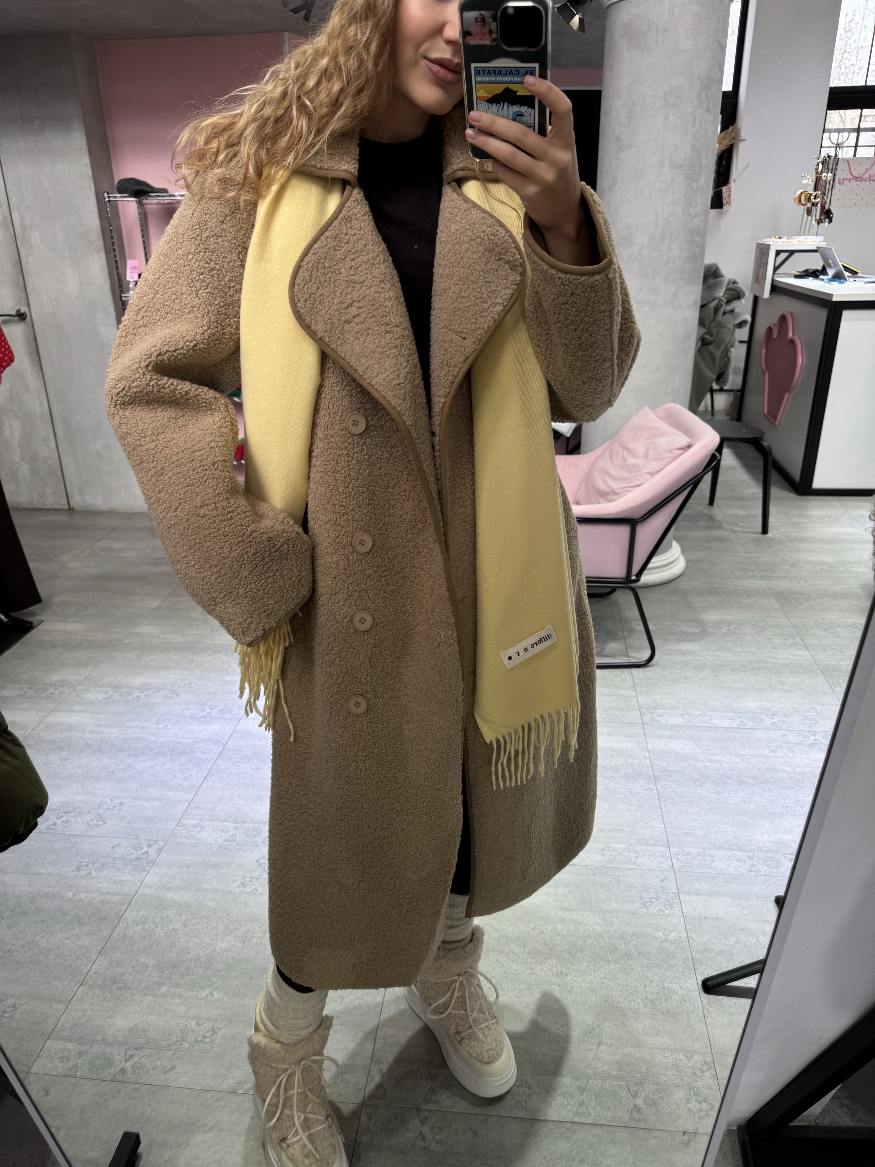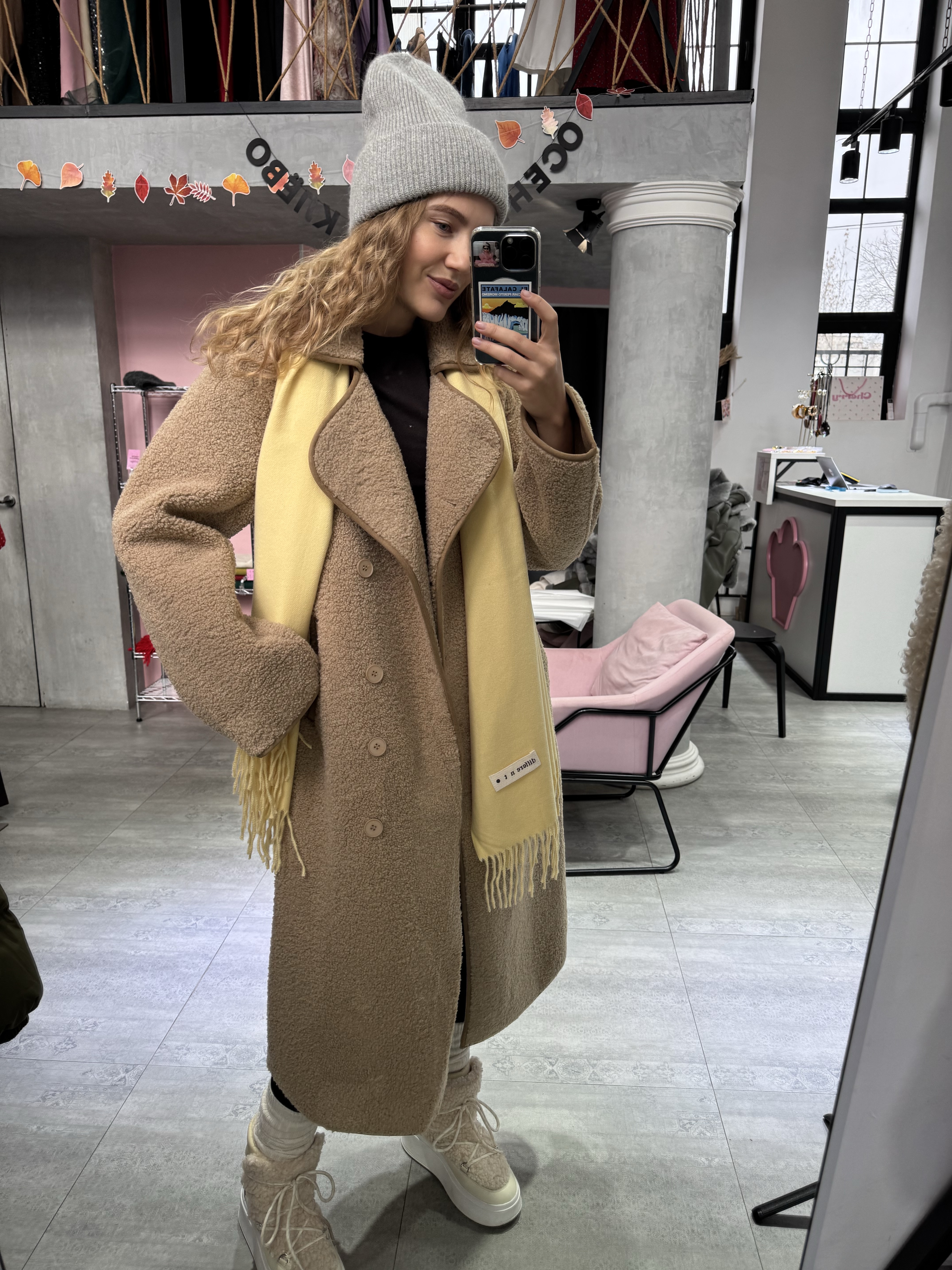 Длинная дублёнка, которая выглядит одновременно минималистично и очень благородно. Её мягкая, аккуратная фактура создаёт впечатление дорогой, спокойной текстуры, а удлинённый прямой крой визуально вытягивает силуэт, придавая образу стройность и собранность.