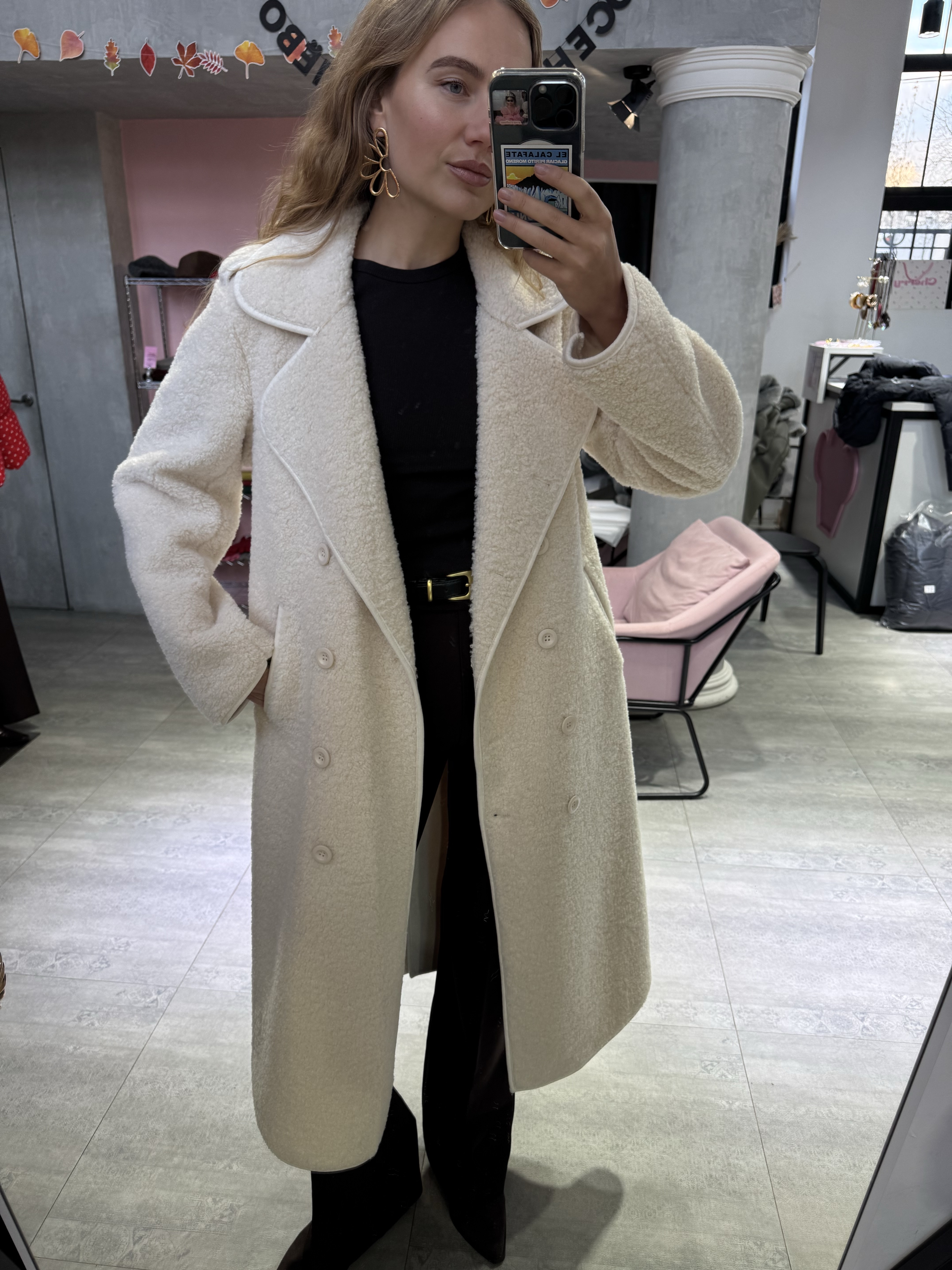 Длинная дублёнка, которая выглядит одновременно минималистично и очень благородно. Её мягкая, аккуратная фактура создаёт впечатление дорогой, спокойной текстуры, а удлинённый прямой крой визуально вытягивает силуэт, придавая образу стройность и собранность.