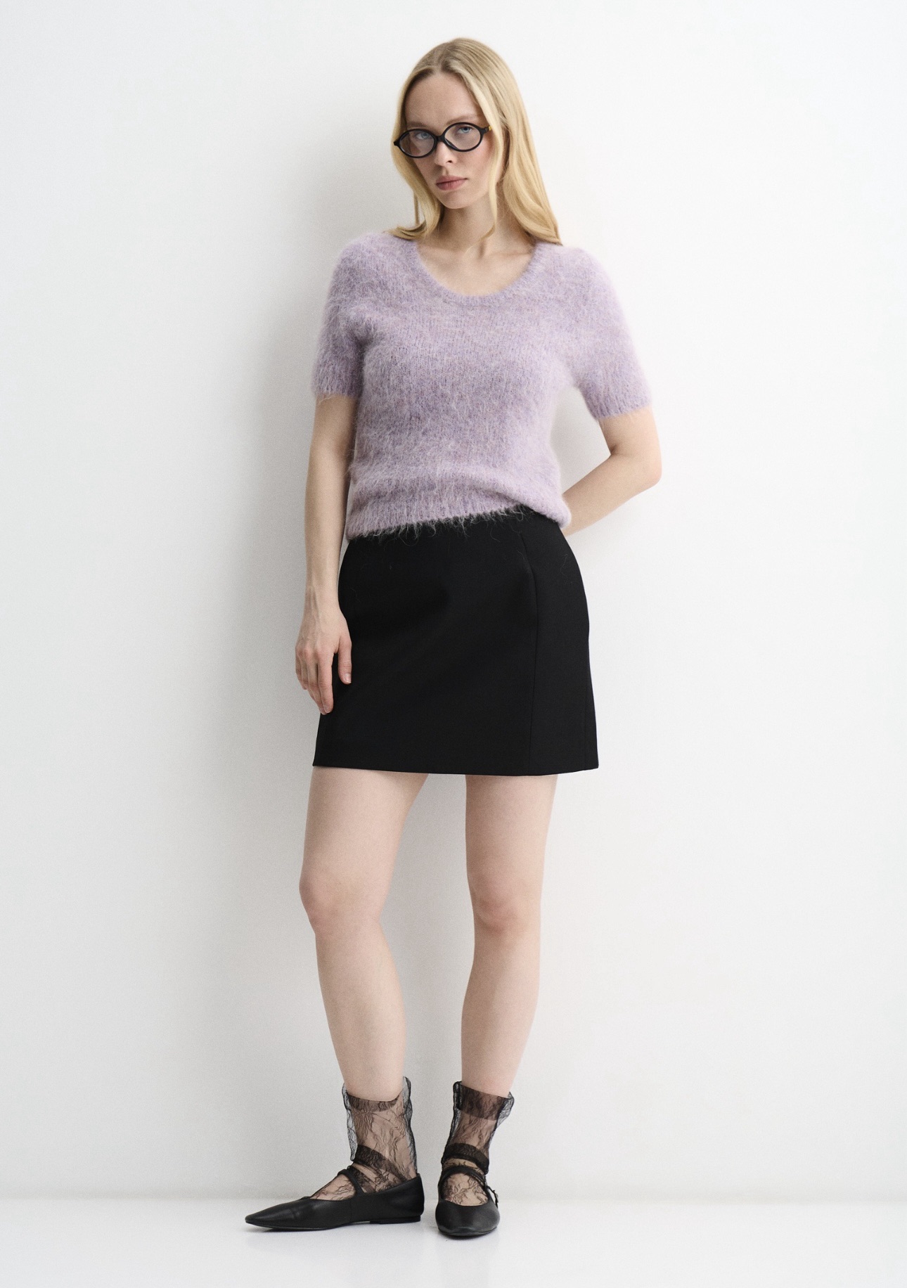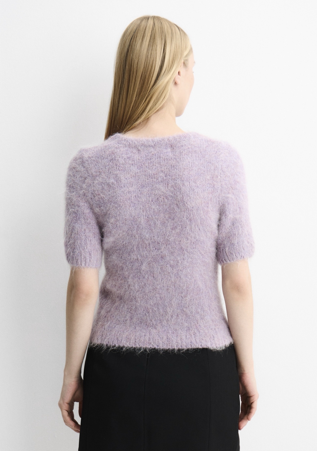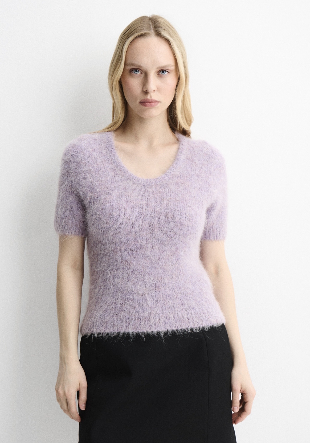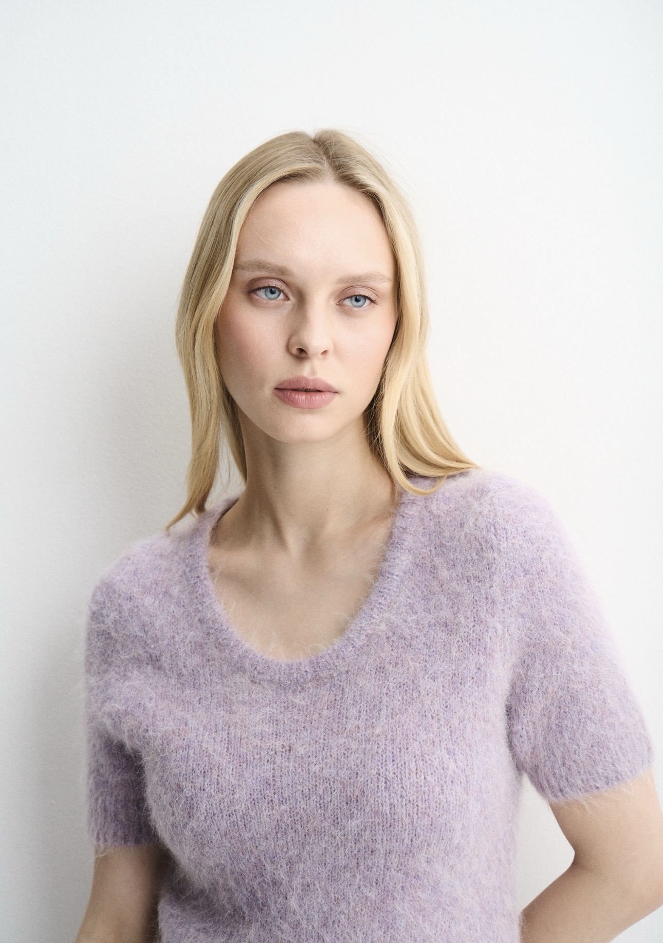 Пушистый джемпер с коротким рукавом — мягкая и уютная модель, которая добавляет образу нежности и объёма. Лёгкая фактура приятно ощущается на коже и делает даже простой комплект более интересным и выразительным.