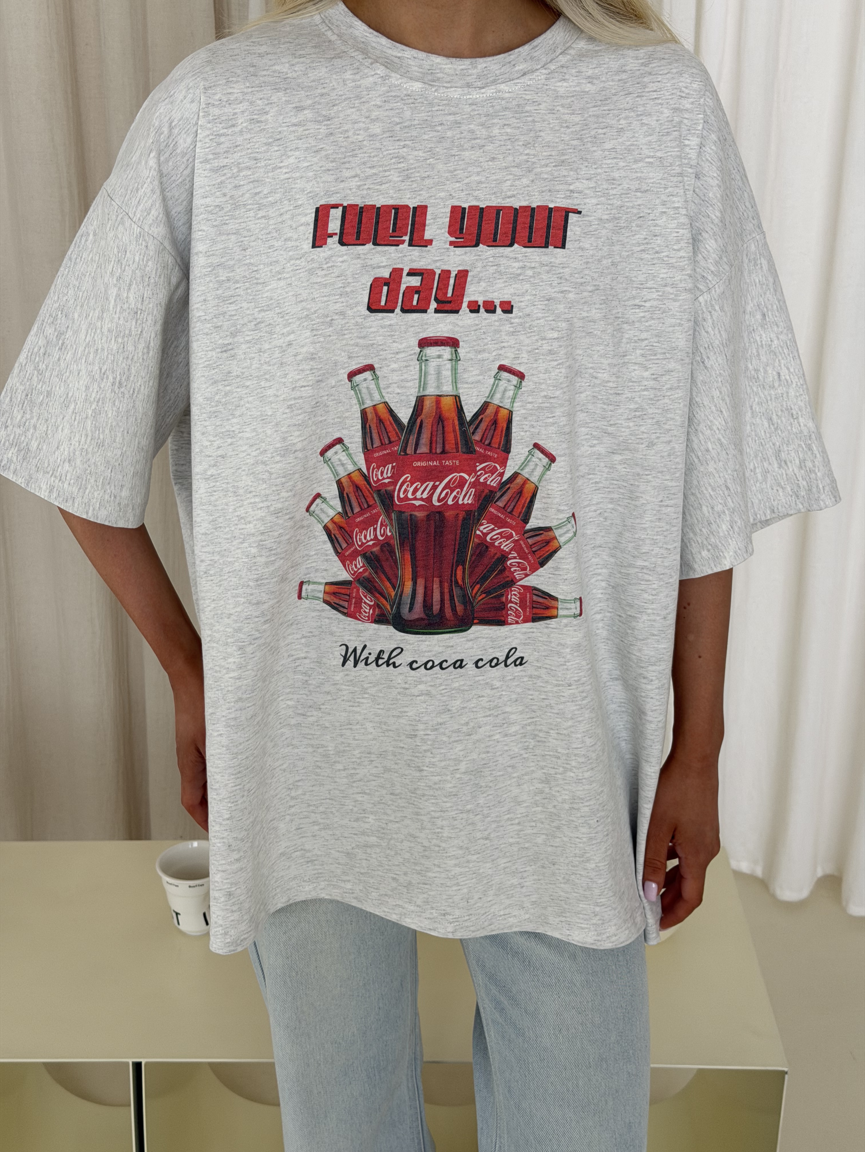 Голубые джинсы Shop с высокой посадкой и прямым кроем — мягкий деним и необработанный край придают образу непринужденную лёгкость, а акцент на талии визуально вытягивает силуэт и подчёркивает фигуру.
