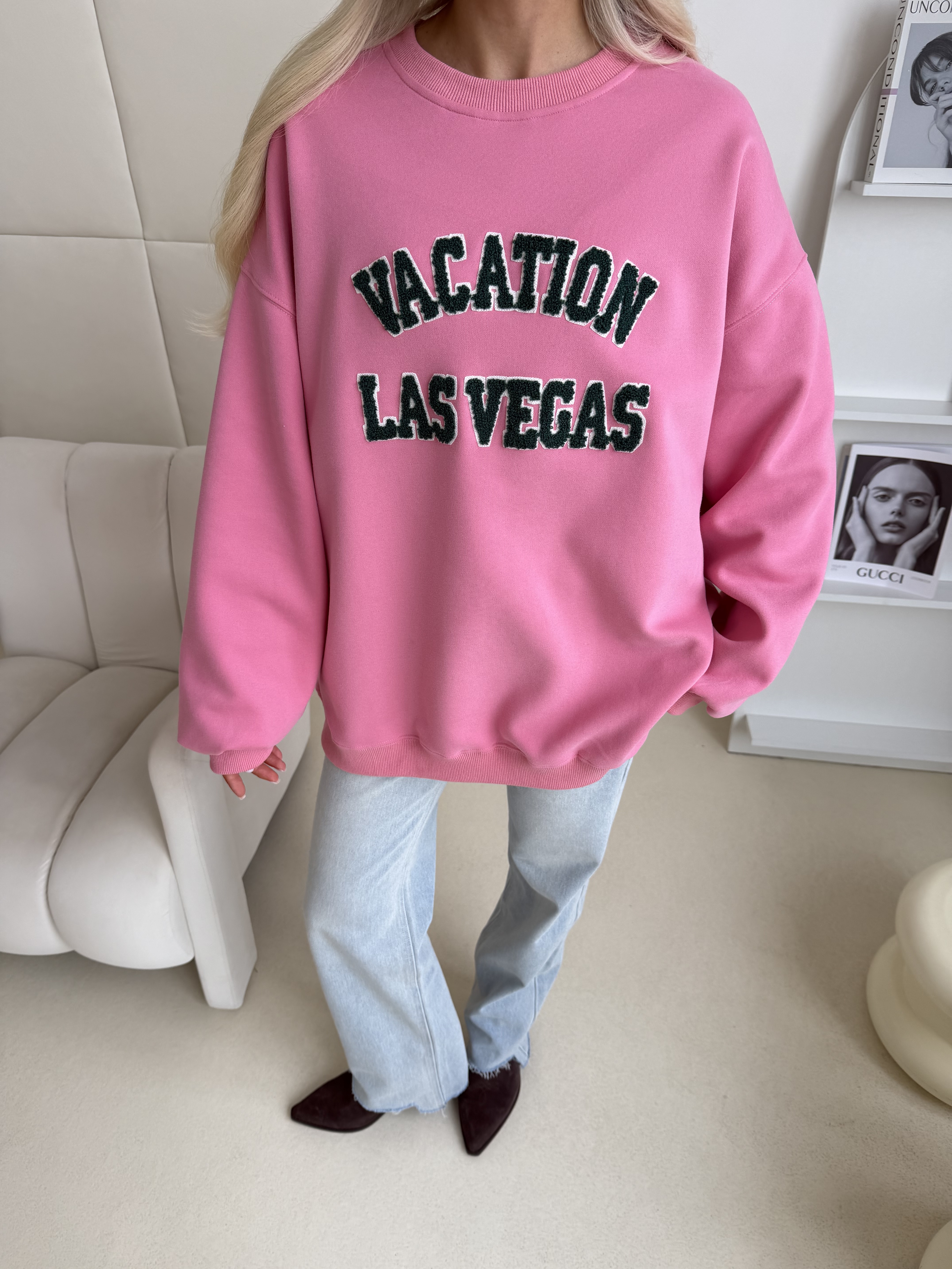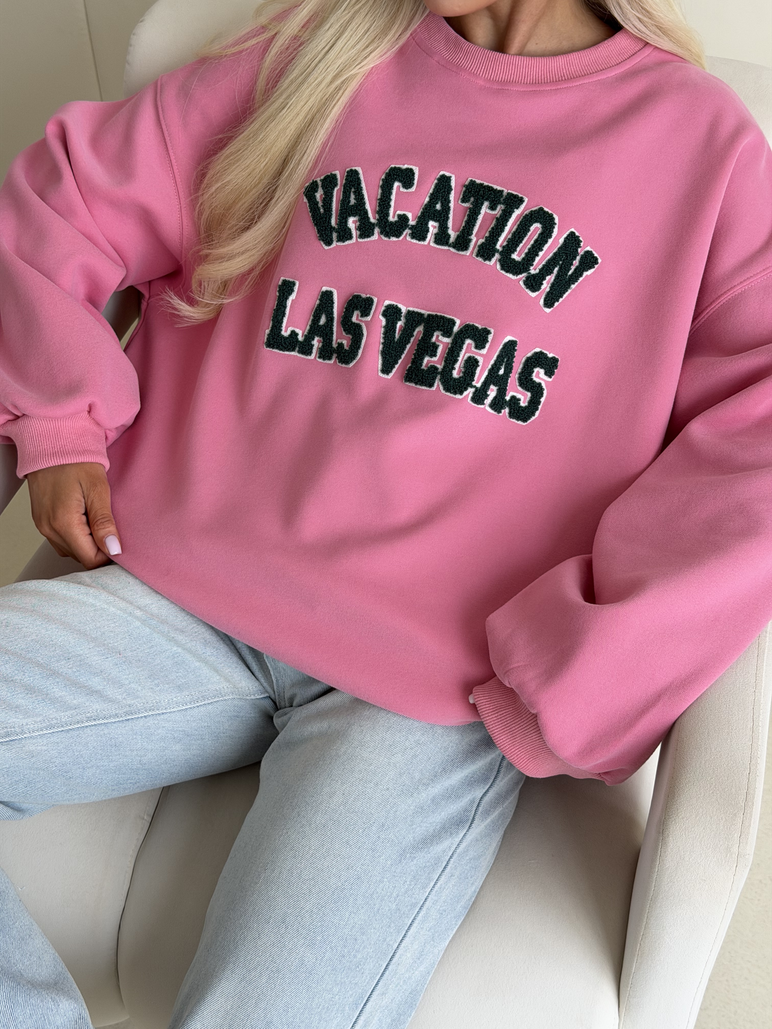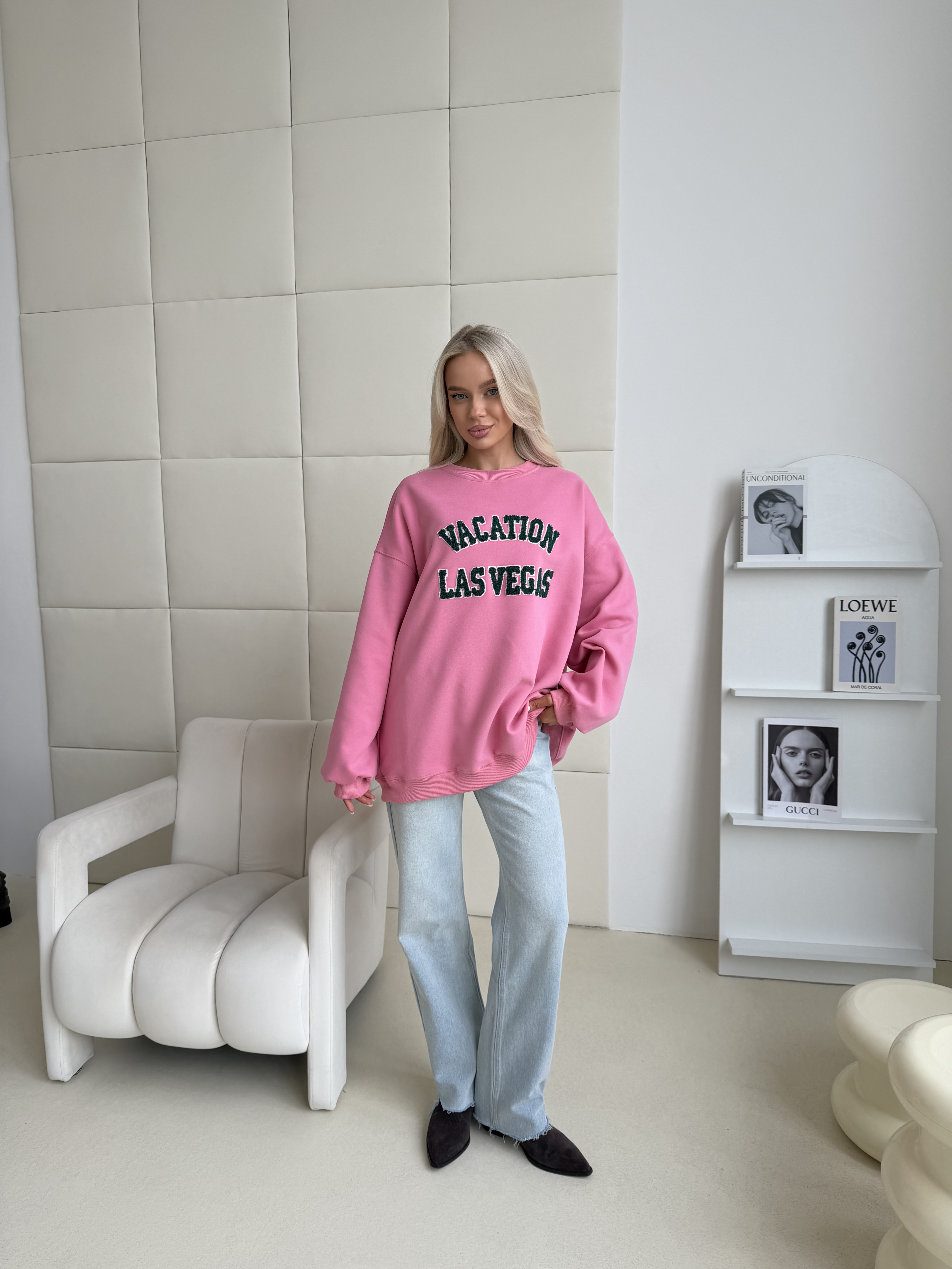 Розовое худи — комфортная модель в расслабленном стиле. Контрастная надпись Las Vegas добавляет образу лёгкое настроение путешествий и делает его более выразительным.