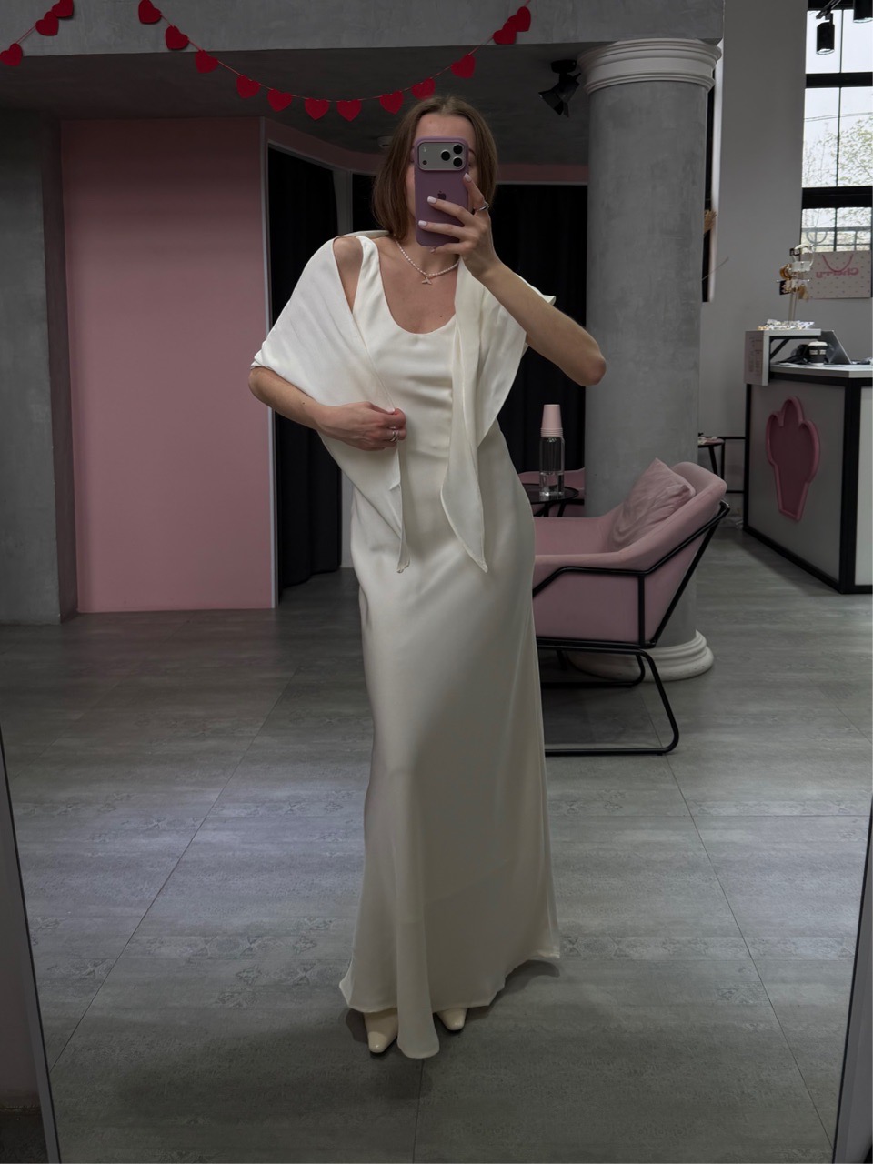 Элегантное платье макси с лаконичным прямым силуэтом и съёмной косынкой на поясе, которая добавляет образу выразительность и позволяет менять стилизацию. Косынку можно носить как пояс, накинуть на плечи или повязать на голову, создавая разные настроения образа. Чистые линии и мягкая посадка делают модель утончённой и современной.