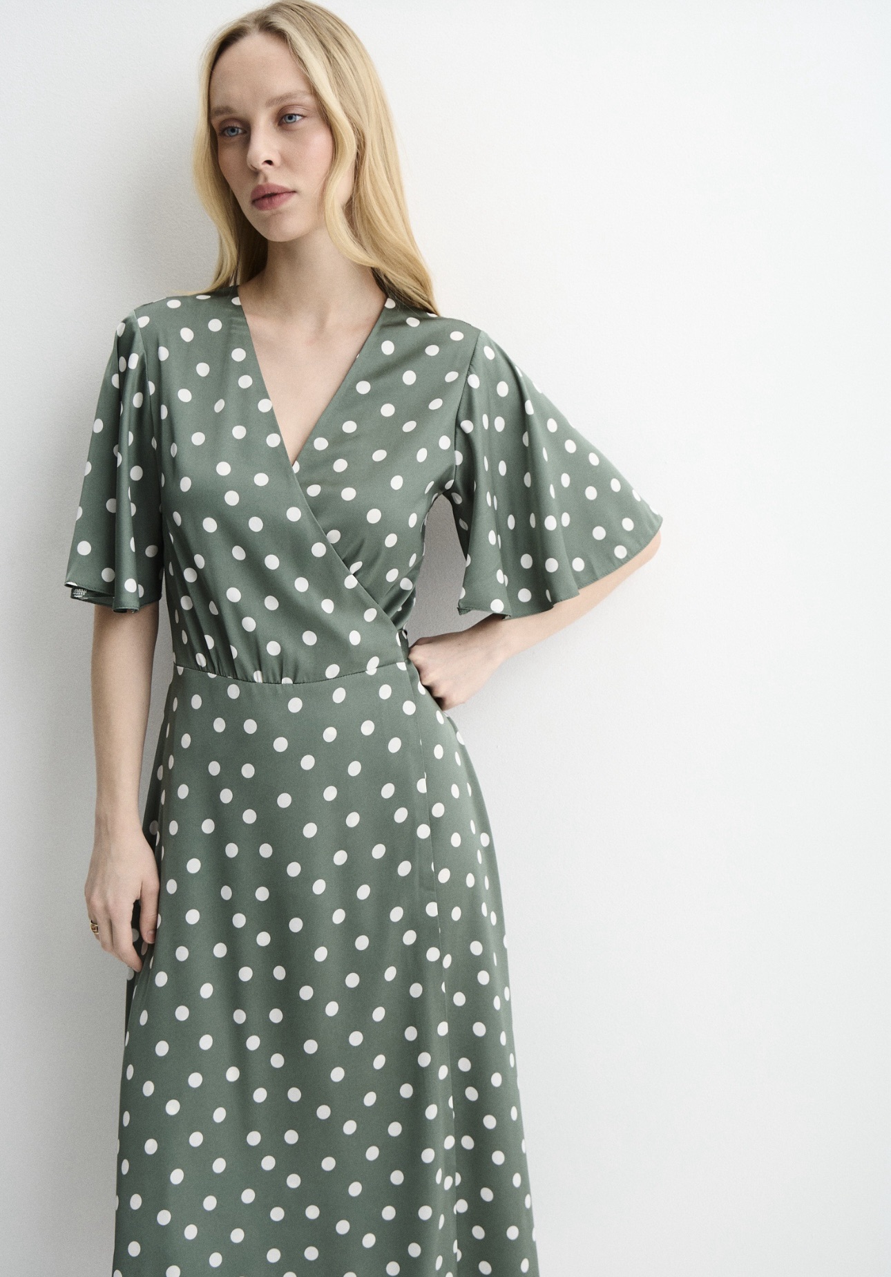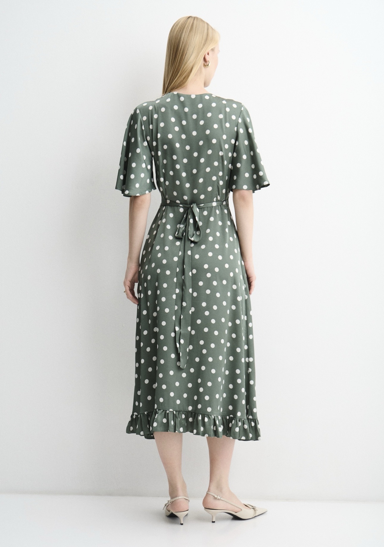 Легкое и воздушное платье станет идеальным спутником для теплых дней. Элегантная комбинация оттенков создает романтичный образ, а длина миди добавляет элегантности.