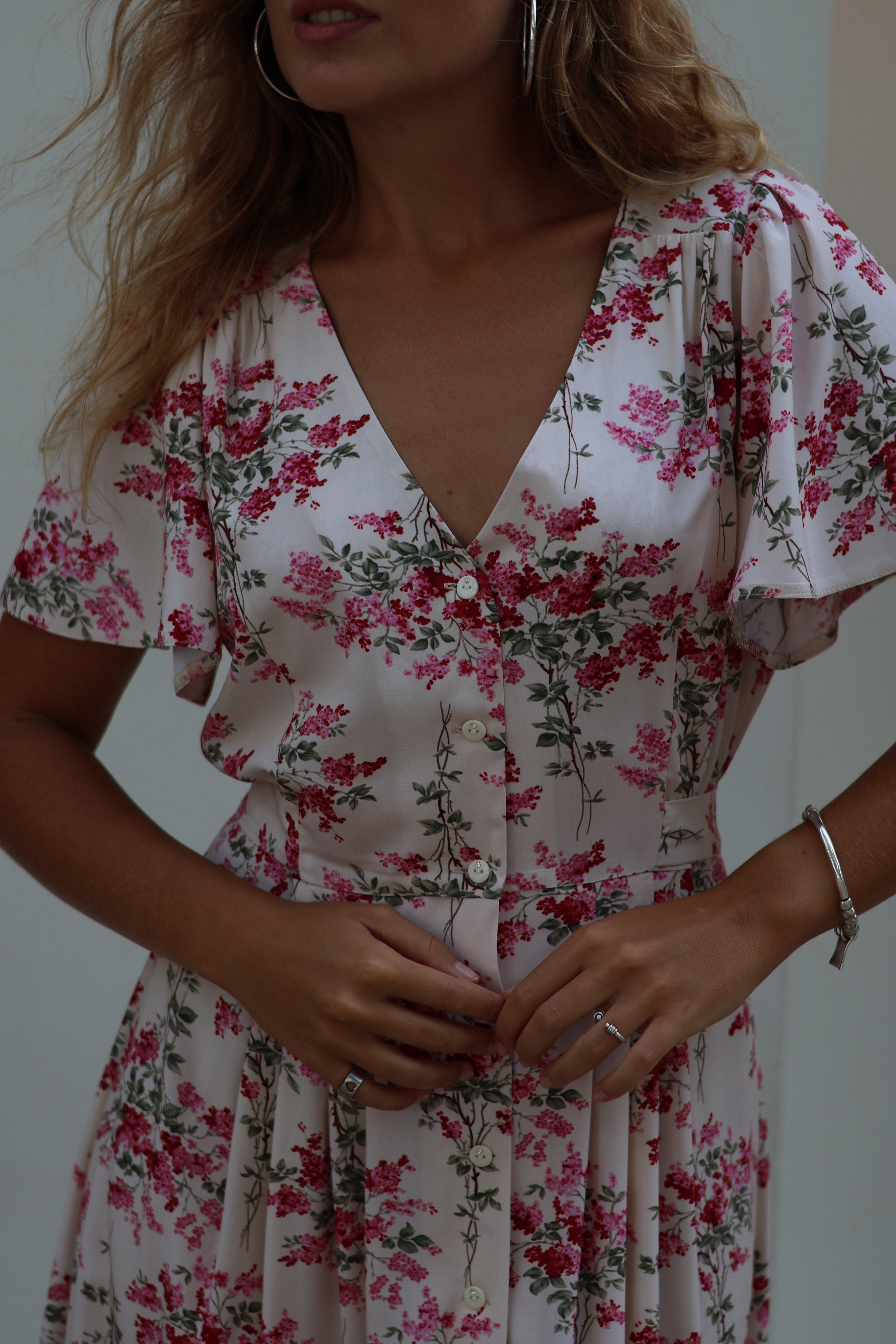 Свободные развивающиеся рукава дополняют легкость и невесомость этого платья.