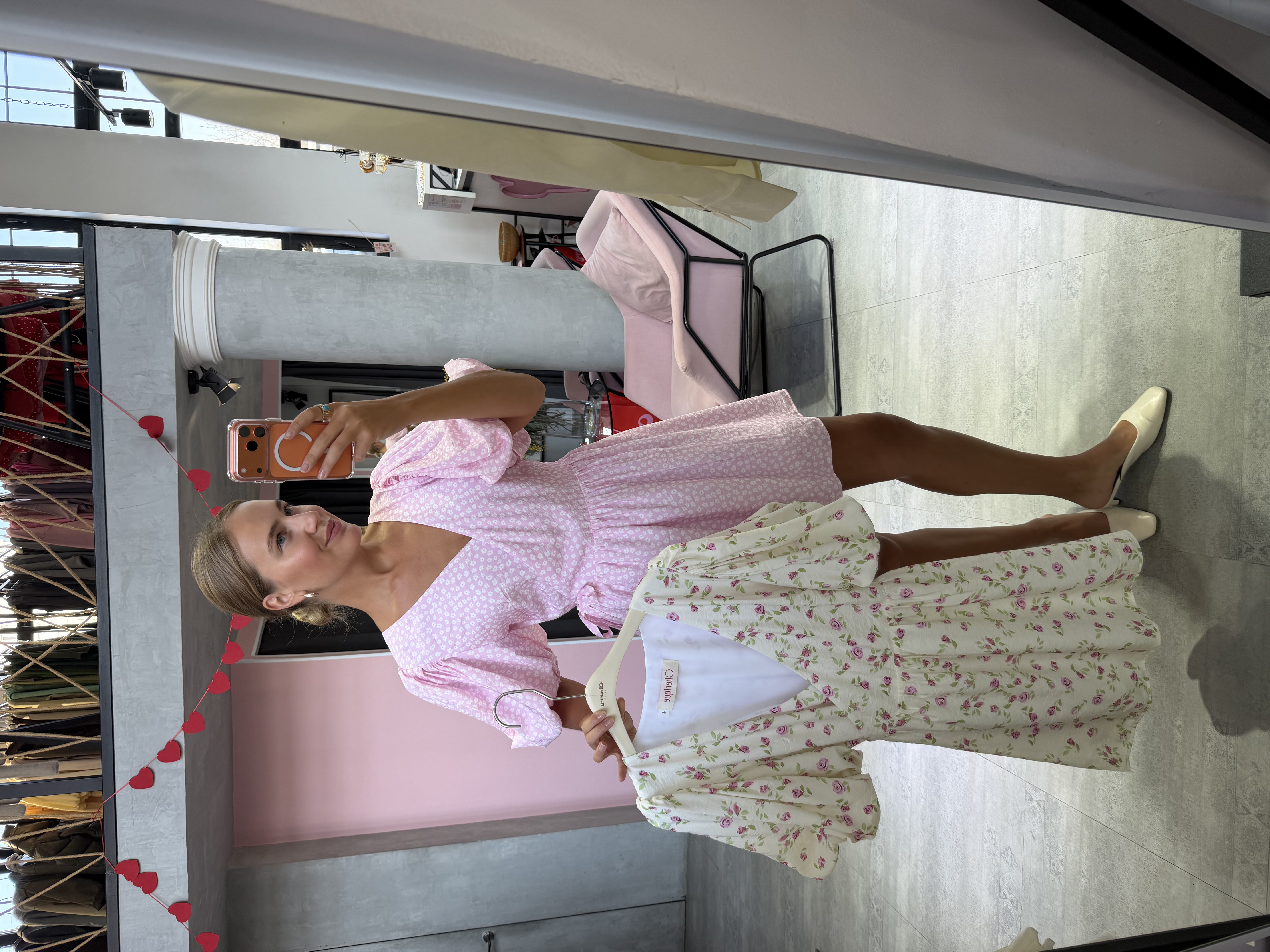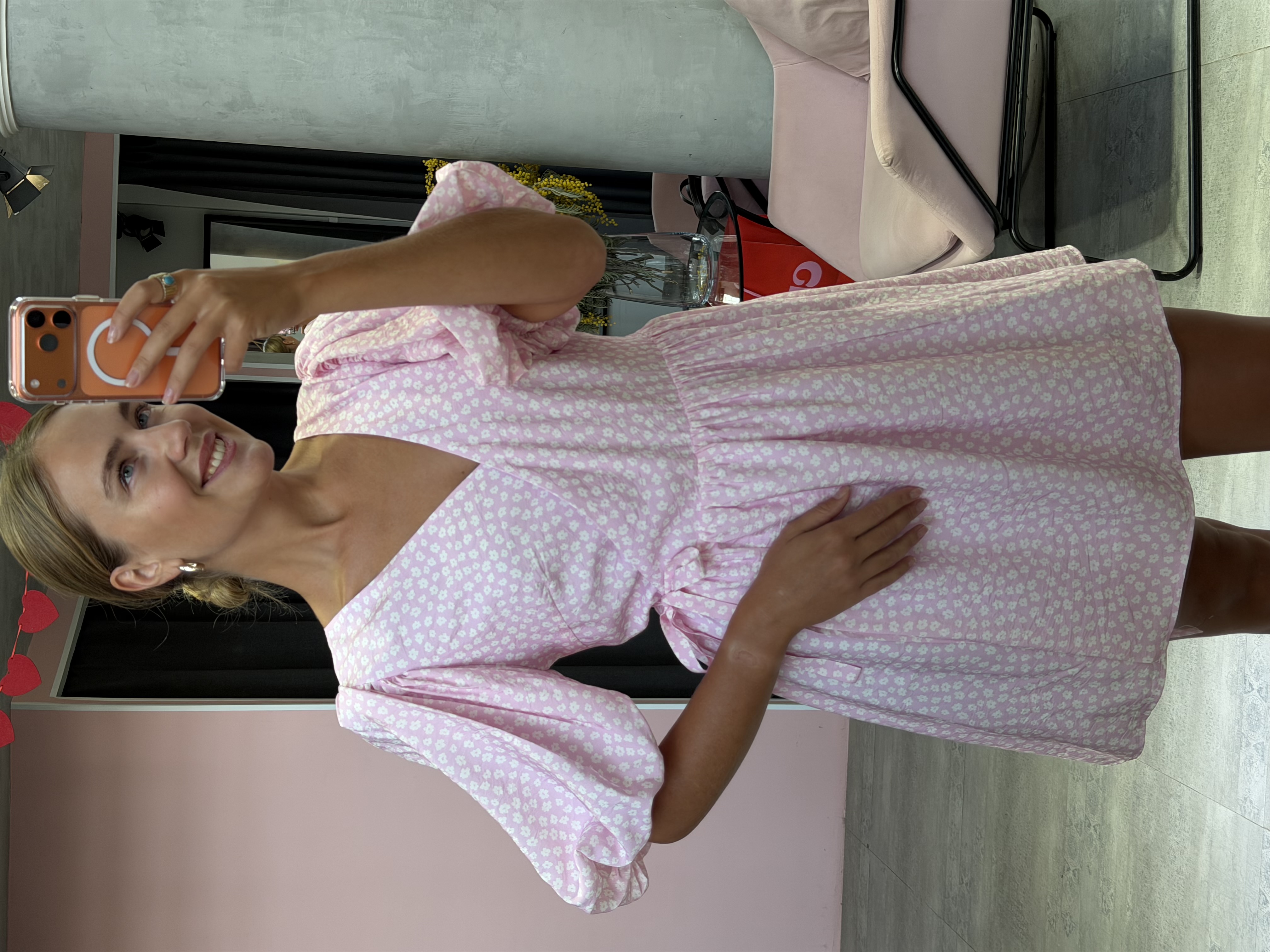 Лёгкое воздушное платье с романтичным силуэтом и утончённым флоральным принтом в розовых тонах — идеальный баланс между элегантностью и непринуждённостью.