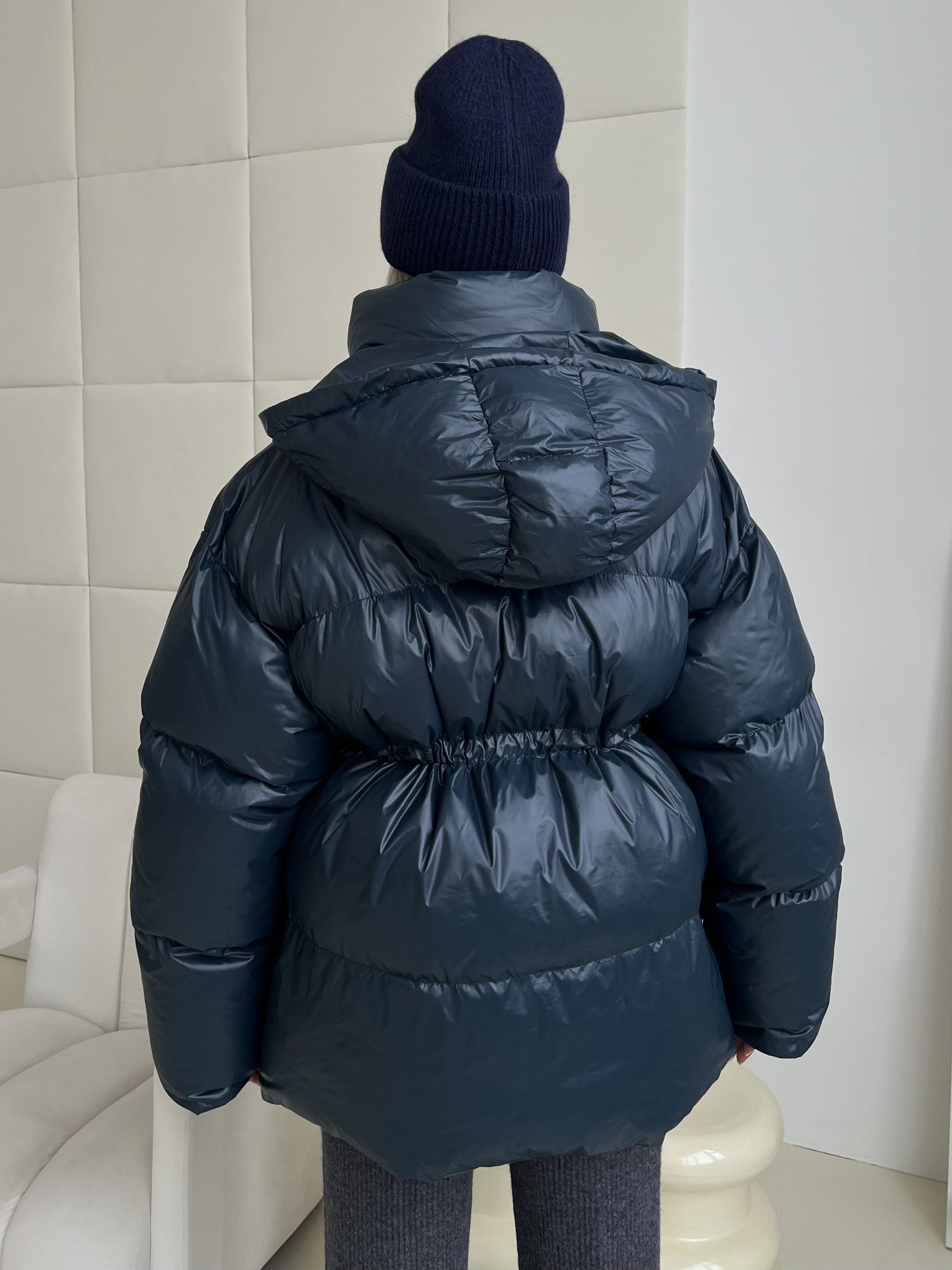 Этот пуховик выделяется мягким объёмом и аккуратной стёжкой, создающей ровный, приятный глазу силуэт. Модель не утяжеляет фигуру и остаётся комфортной даже при активном движении. Наполнение из 100% утиного пуха обеспечивает надёжное тепло и лёгкость, а ткань хорошо защищает от ветра и сохраняет форму.