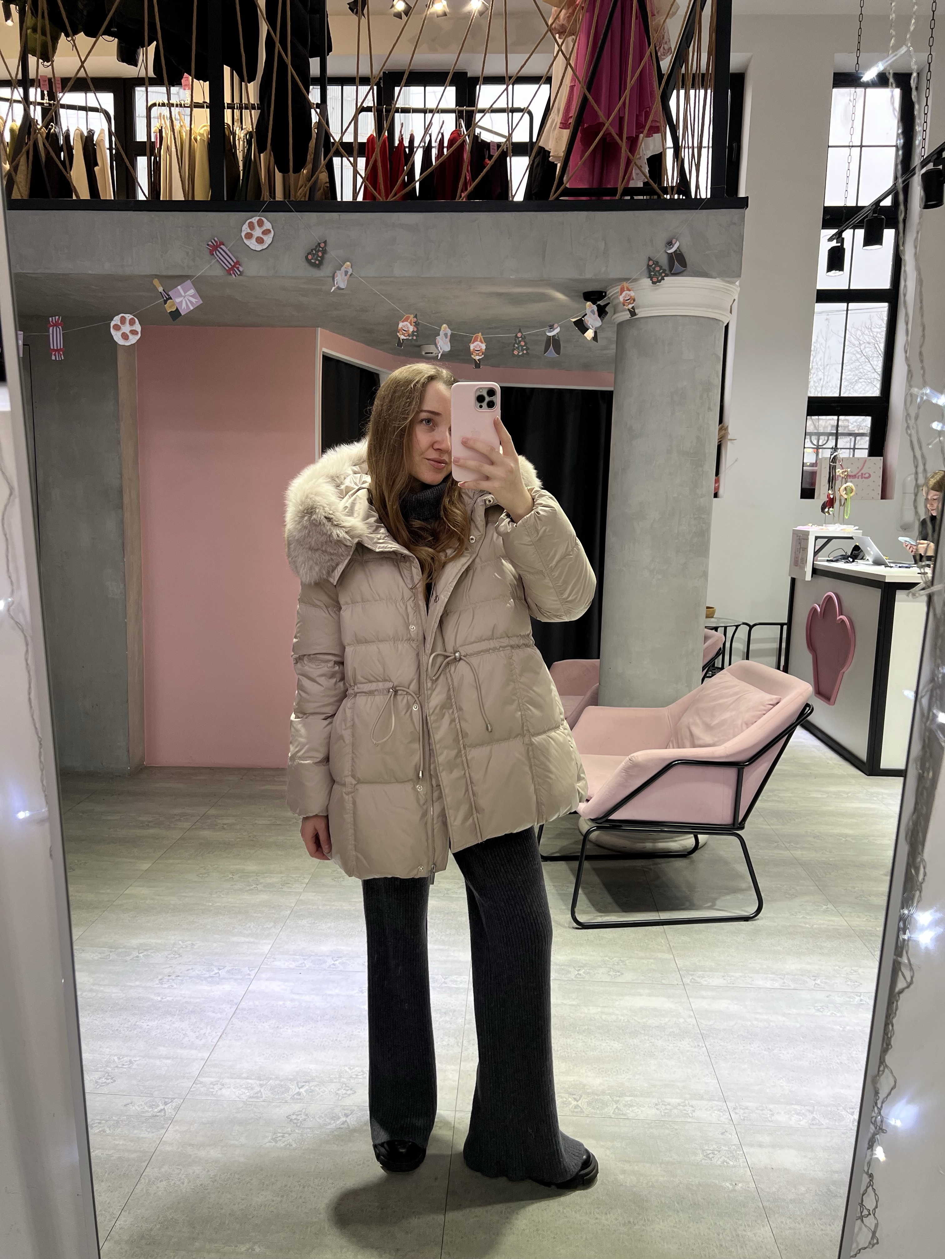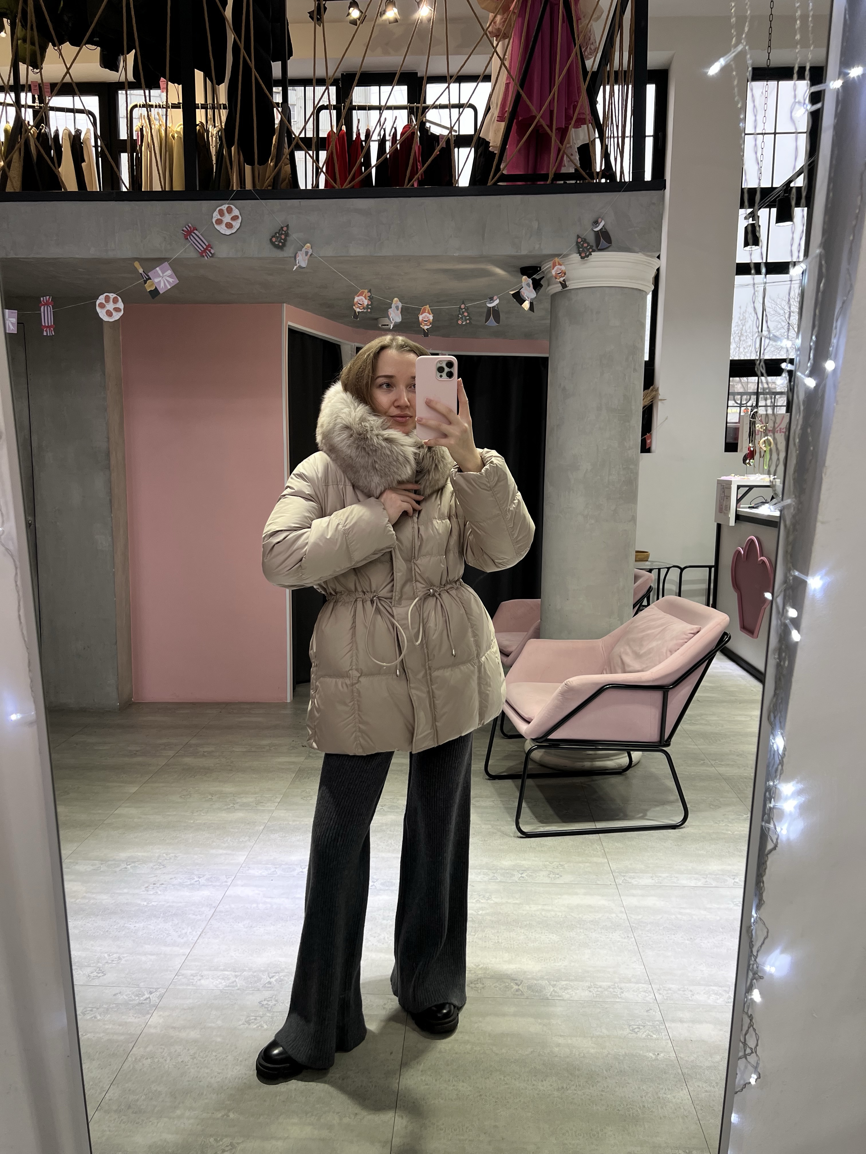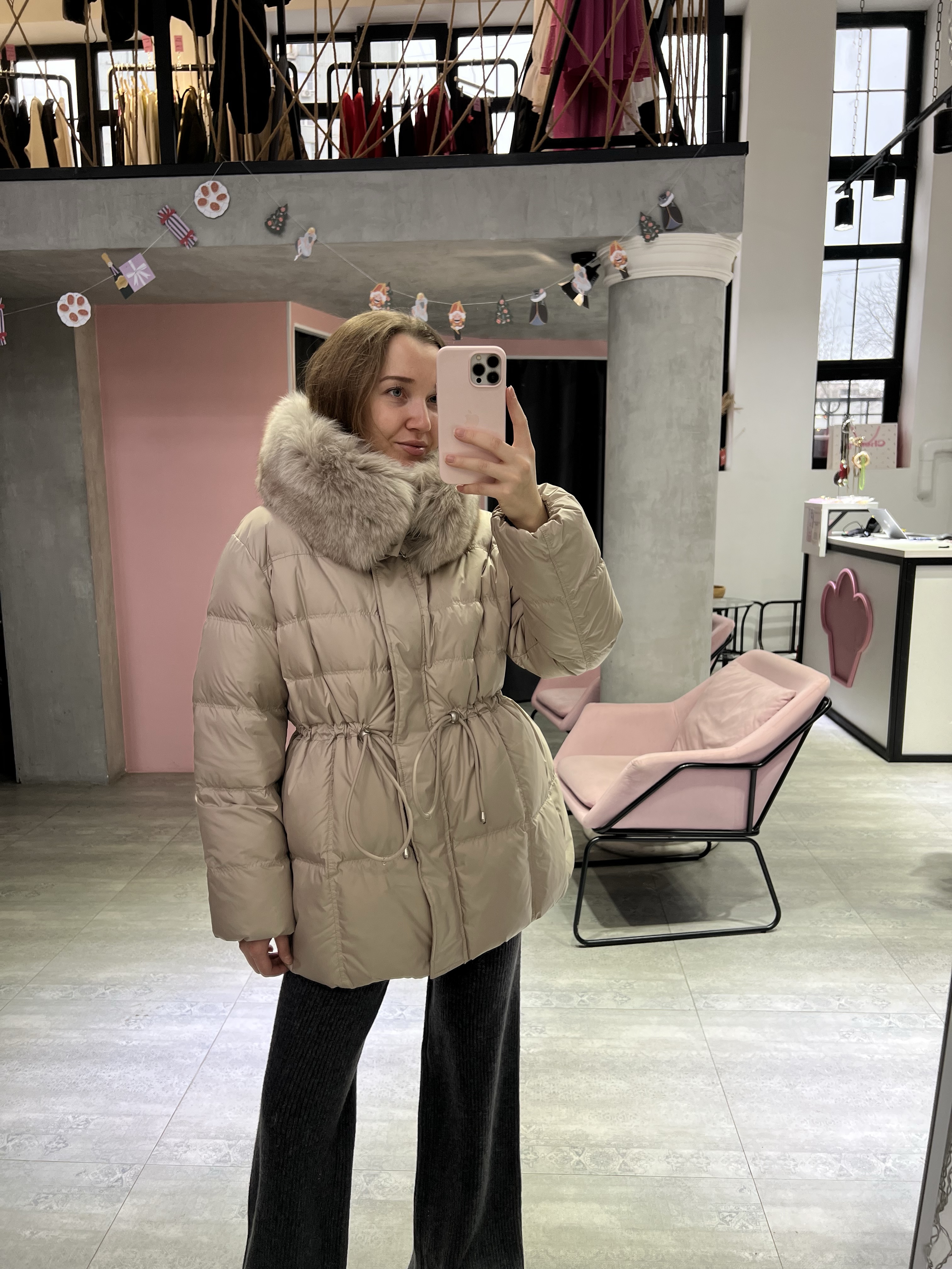 Натуральный мех добавляет образу статусности и завершённости, делая пуховик особенно эффектным. Пояс подчёркивает талию и позволяет регулировать посадку — можно носить как более приталенно, так и свободно. Универсальный вариант для города, поездок и долгих зимних прогулок