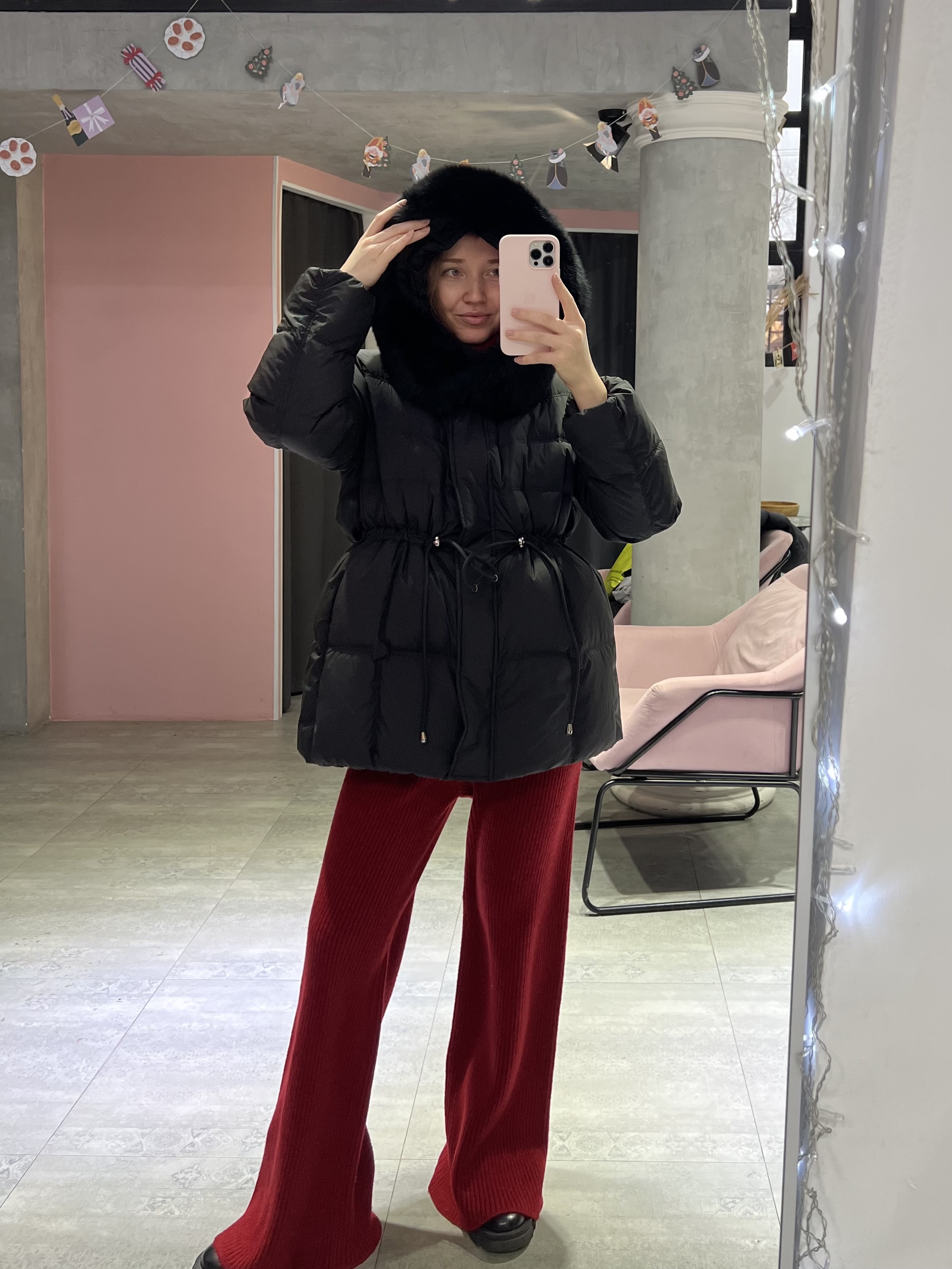 Натуральный мех добавляет образу статусности и завершённости, делая пуховик особенно эффектным. Пояс подчёркивает талию и позволяет регулировать посадку — можно носить как более приталенно, так и свободно. Универсальный вариант для города, поездок и долгих зимних прогулок