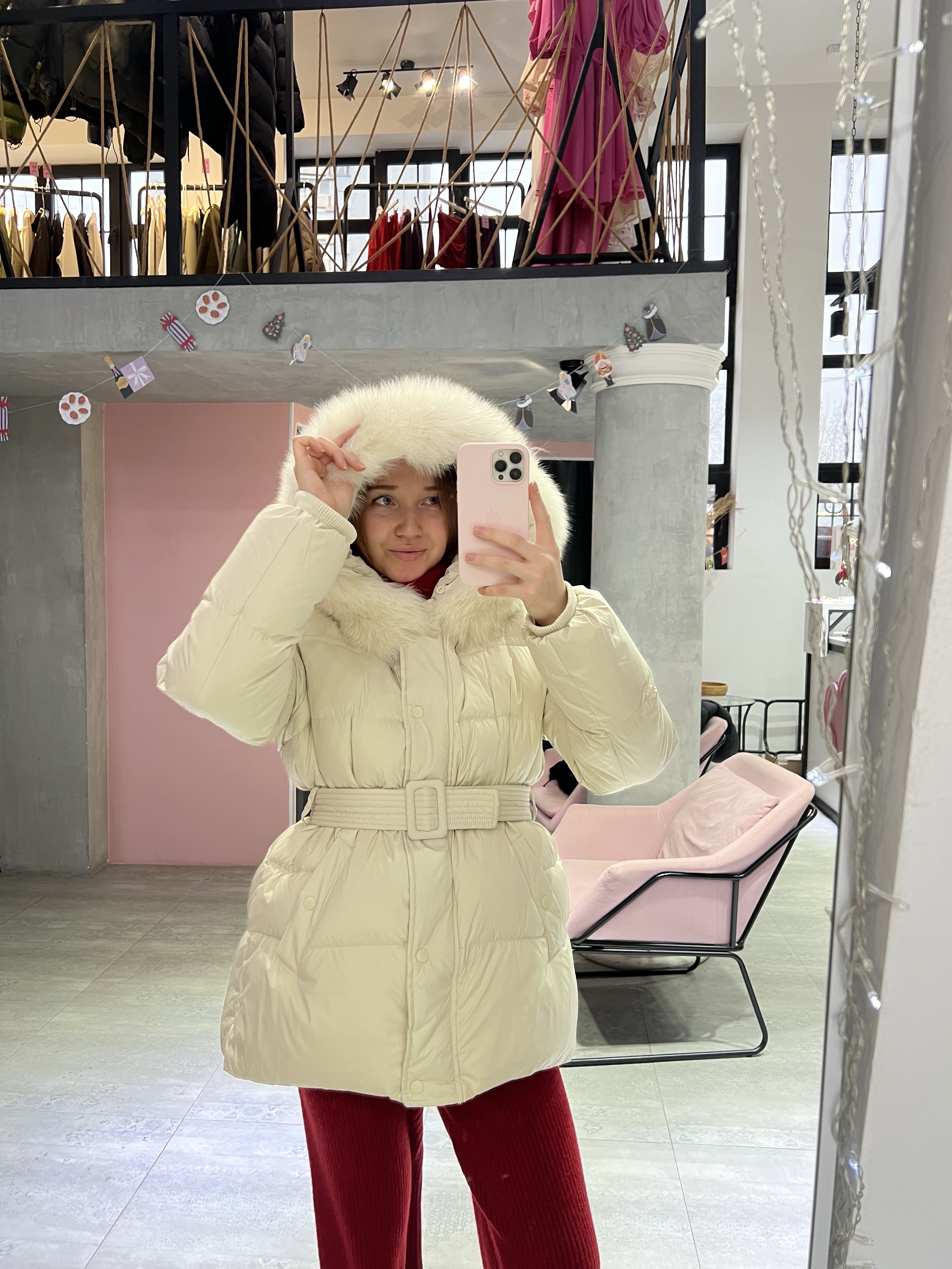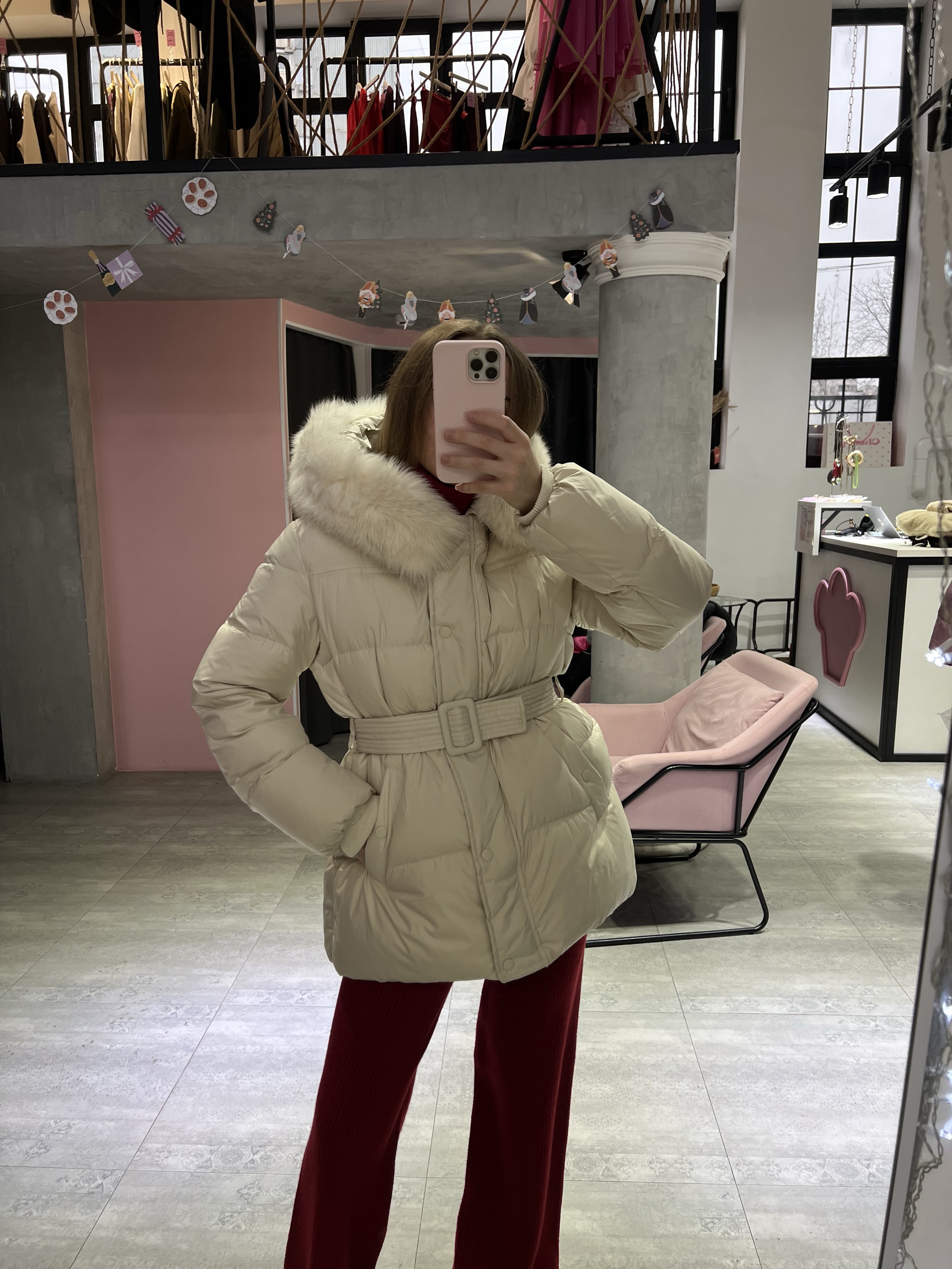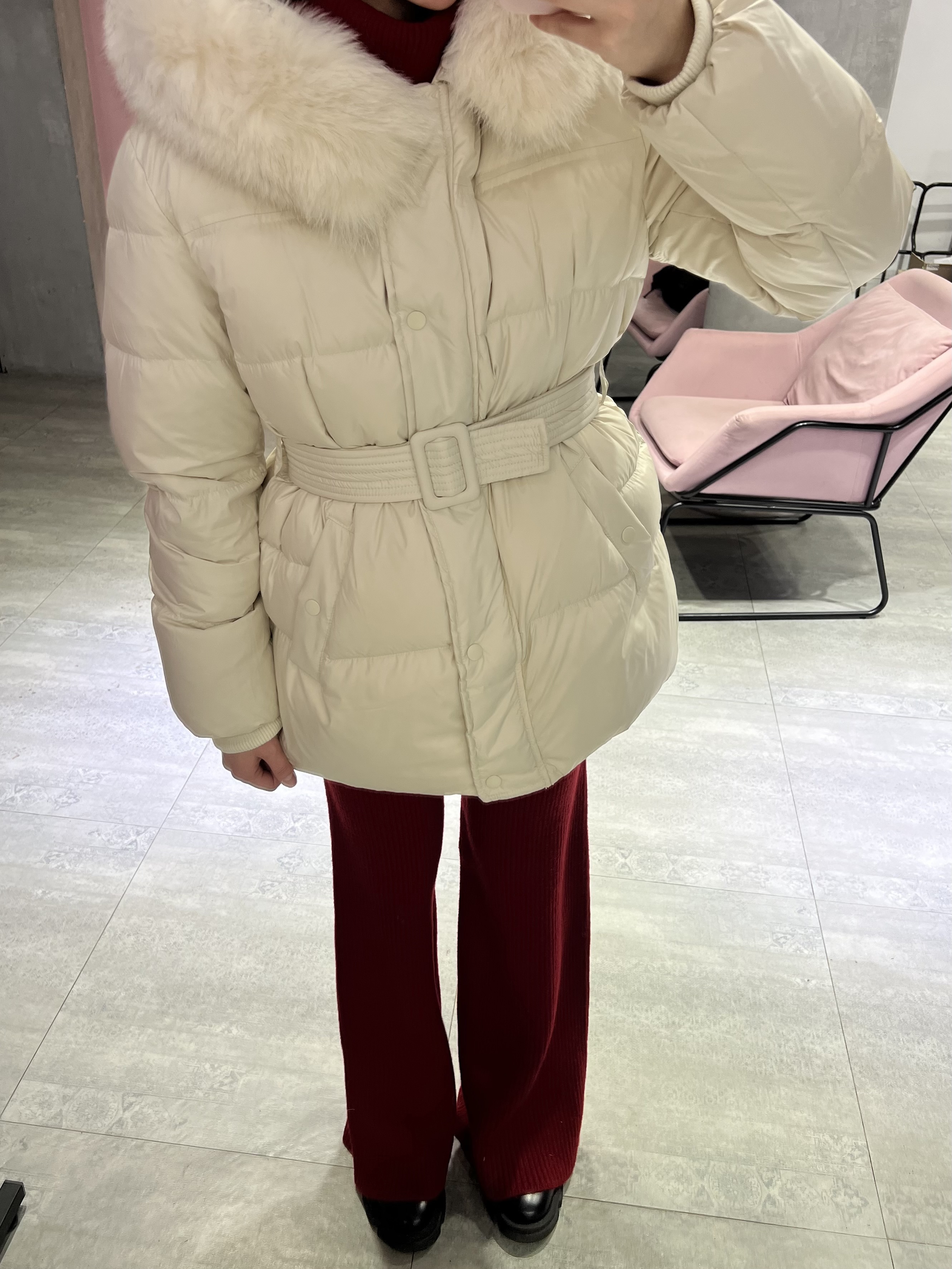 Натуральный мех добавляет образу статусности и завершённости, делая пуховик особенно эффектным. Пояс подчёркивает талию и позволяет регулировать посадку — можно носить как более приталенно, так и свободно. Универсальный вариант для города, поездок и долгих зимних прогулок