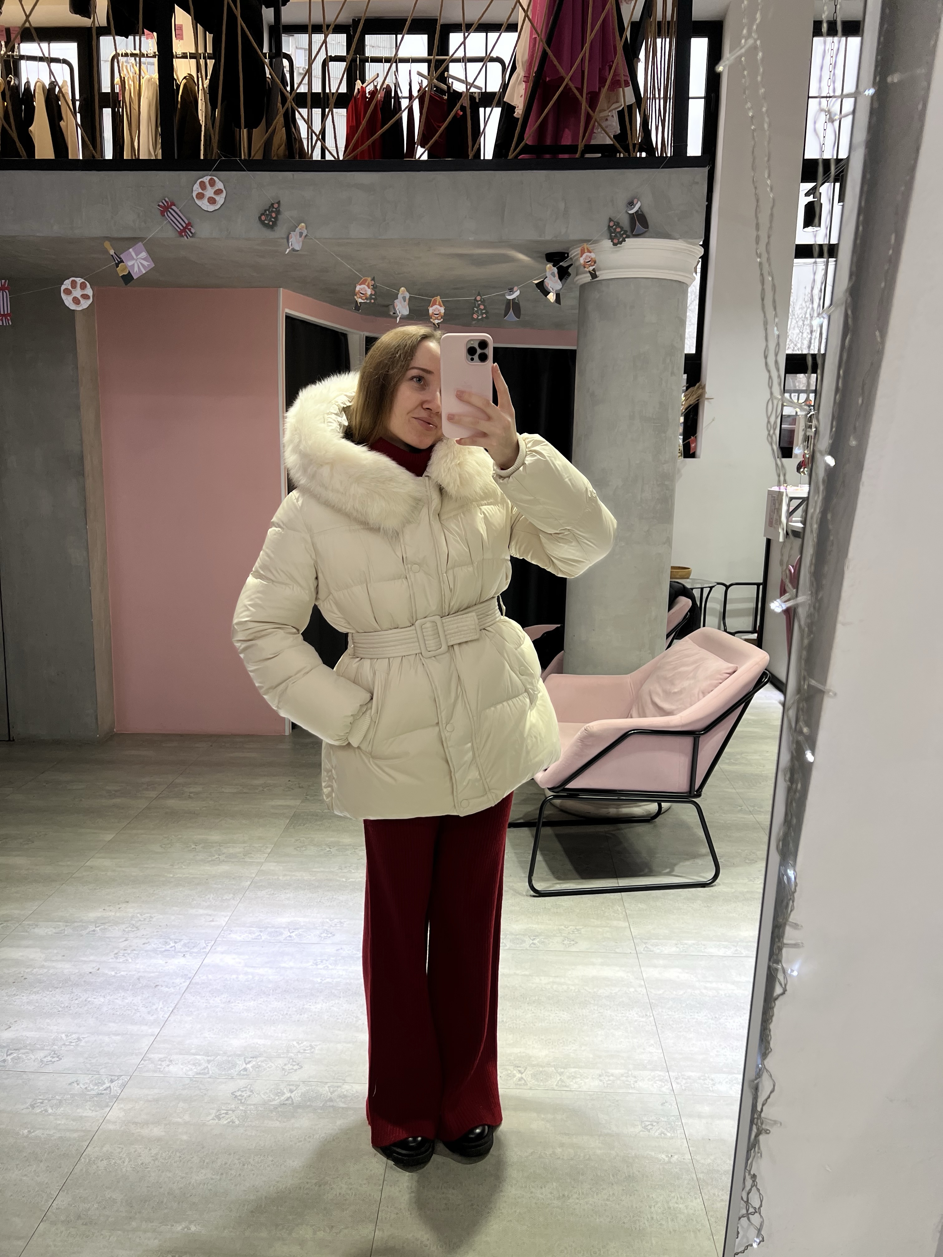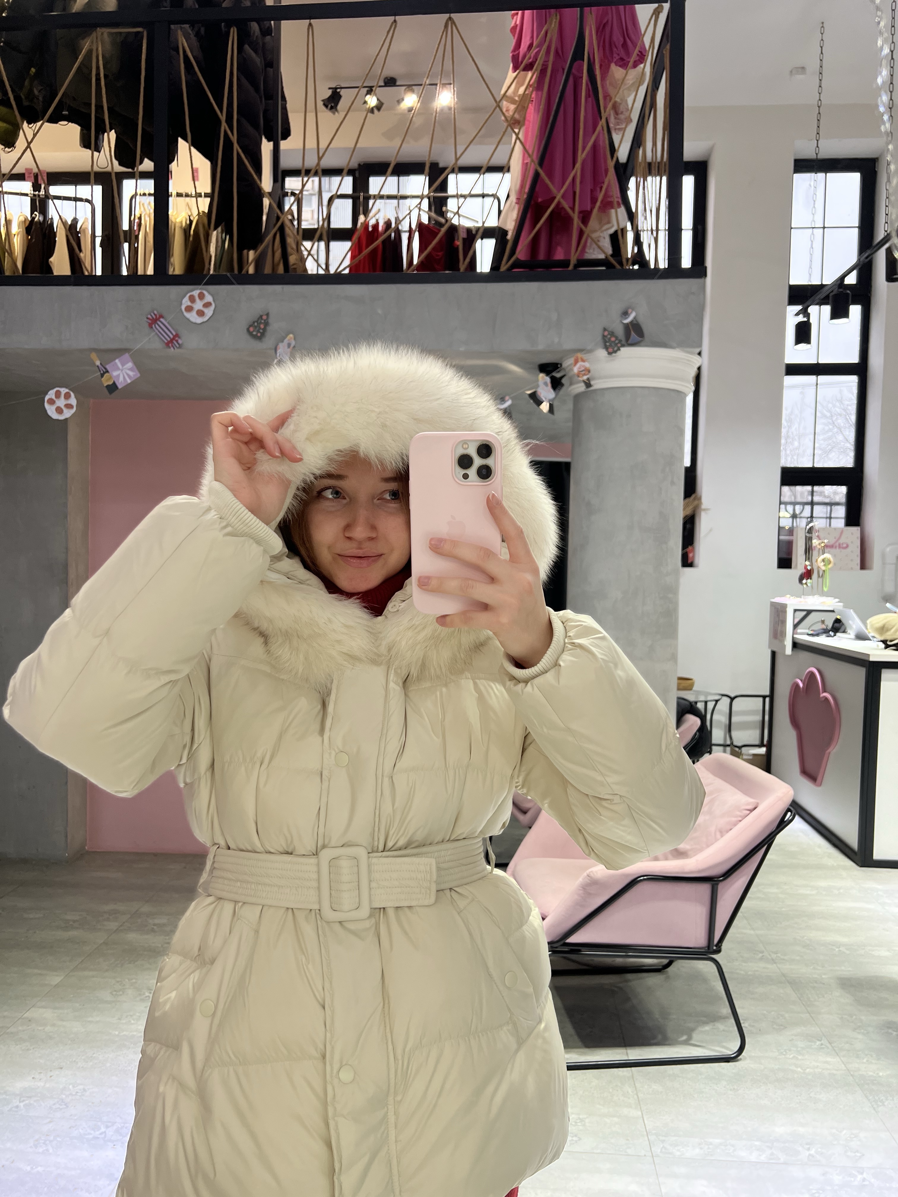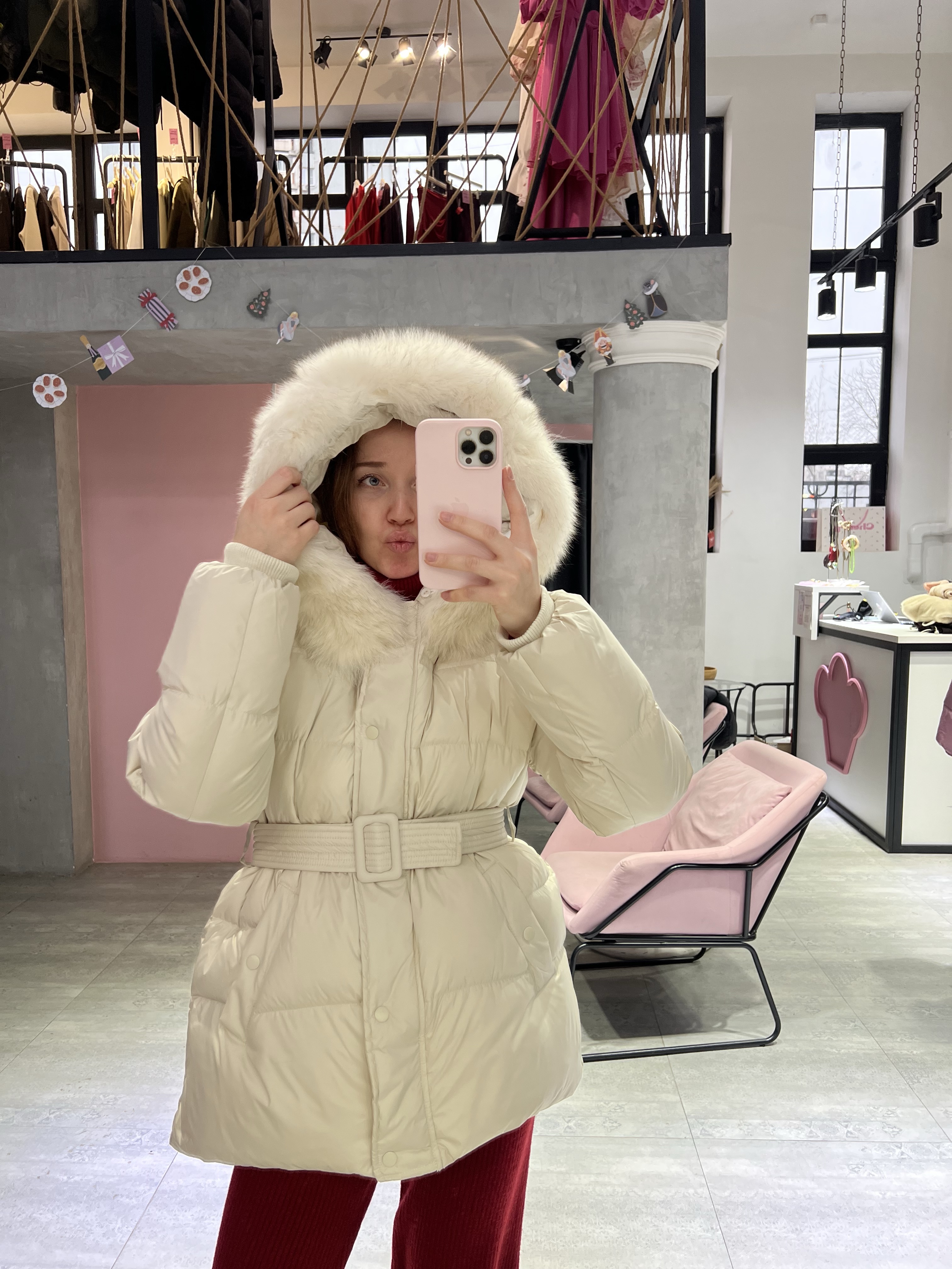 Натуральный мех добавляет образу статусности и завершённости, делая пуховик особенно эффектным. Пояс подчёркивает талию и позволяет регулировать посадку — можно носить как более приталенно, так и свободно. Универсальный вариант для города, поездок и долгих зимних прогулок