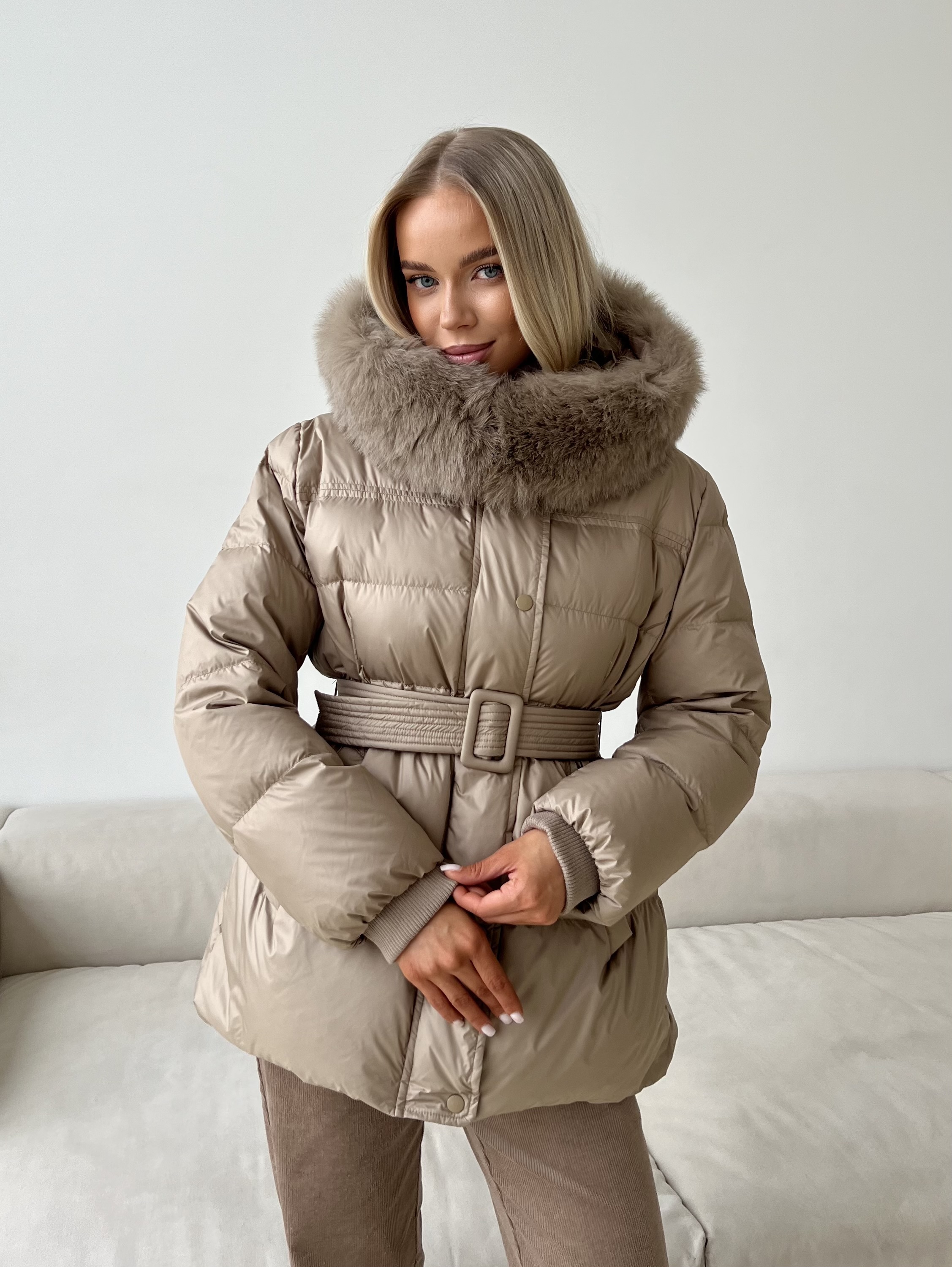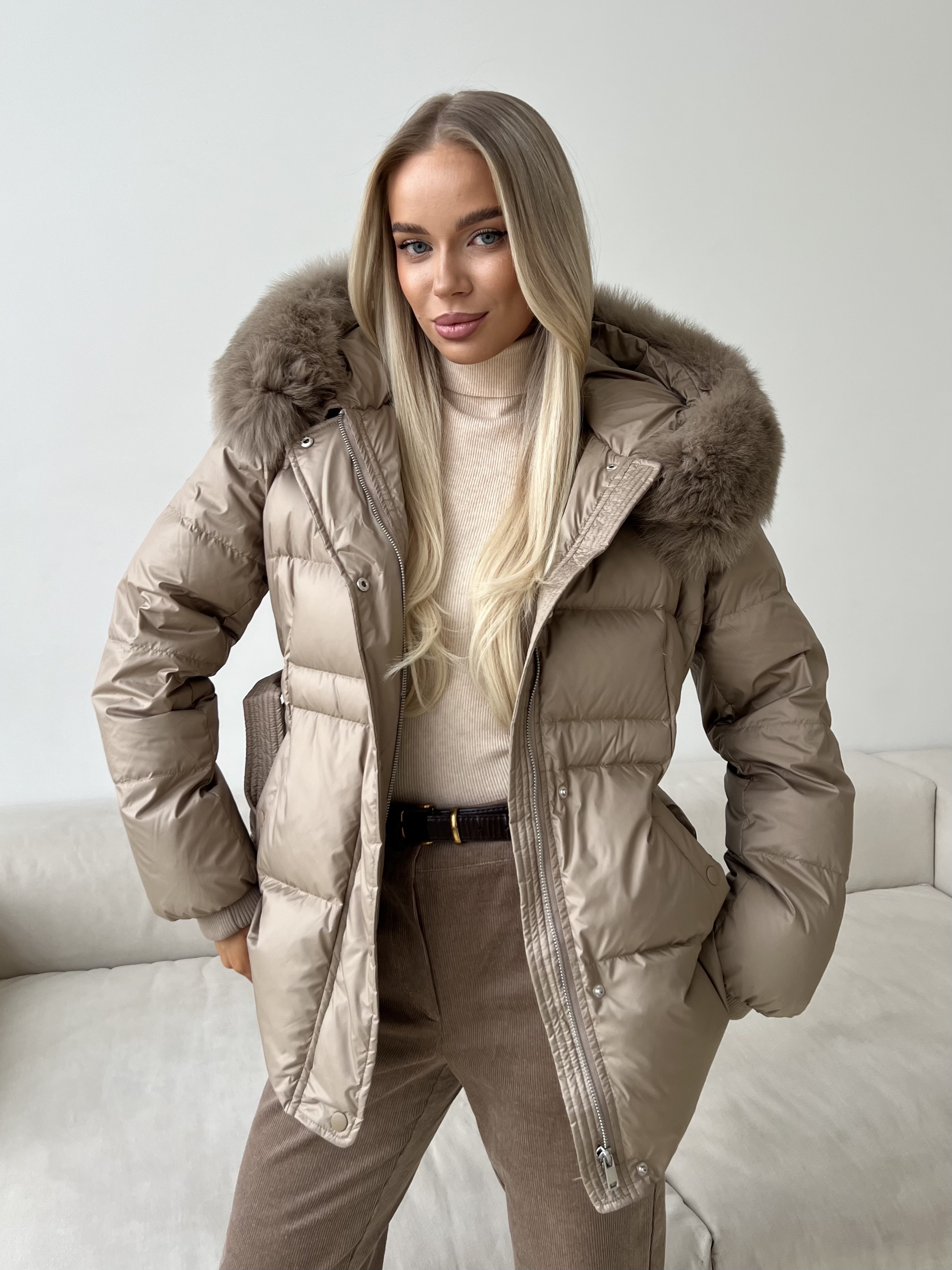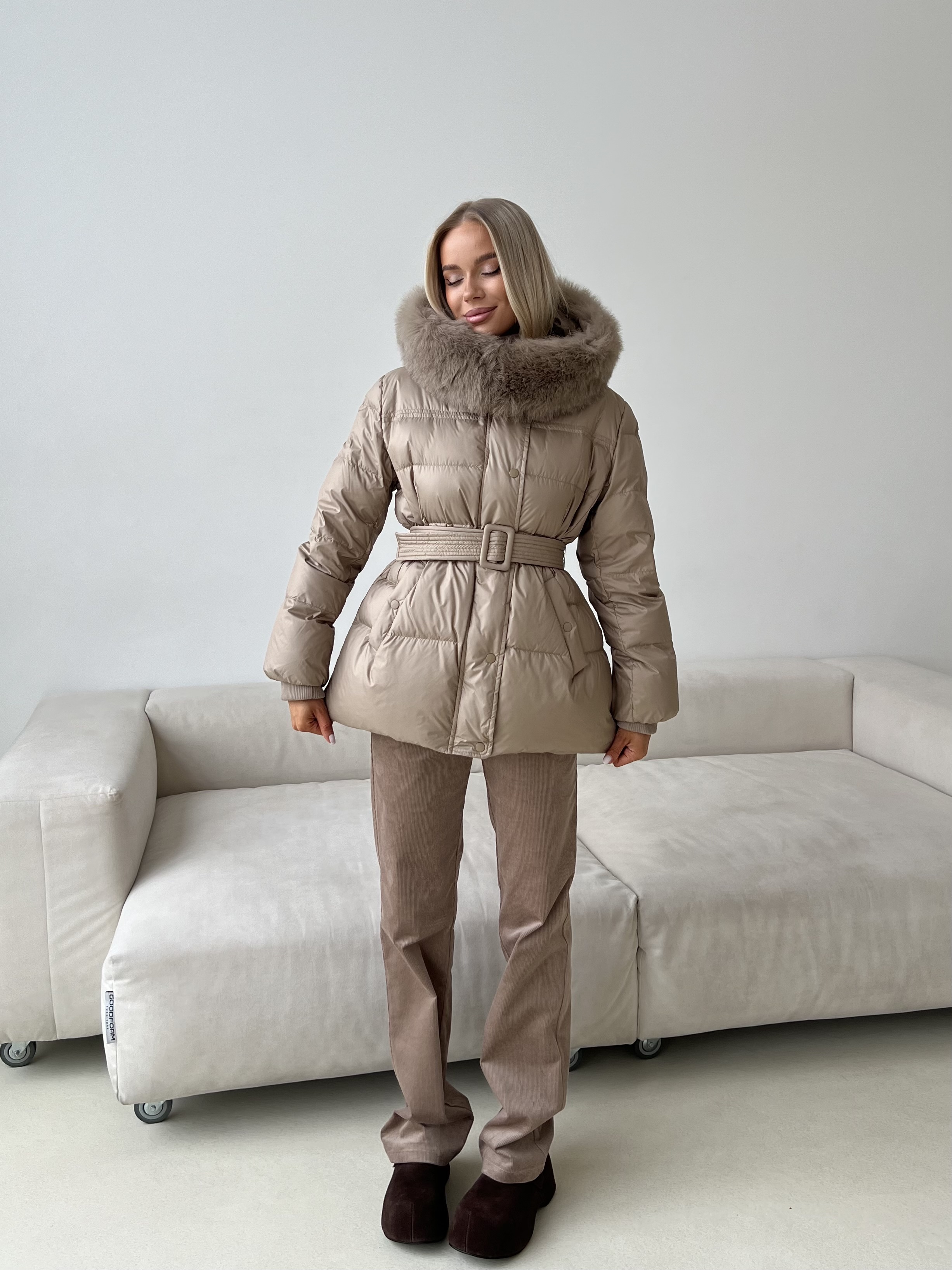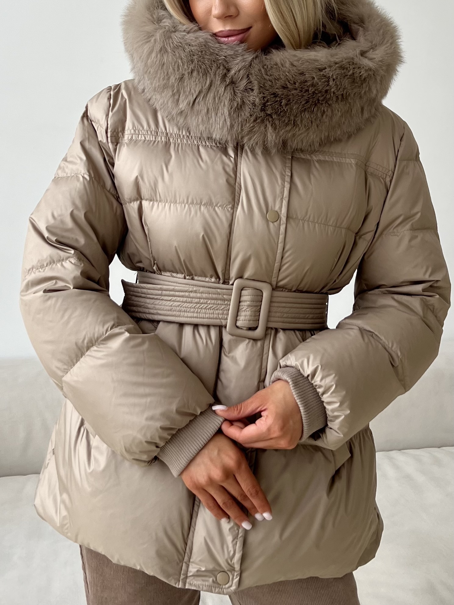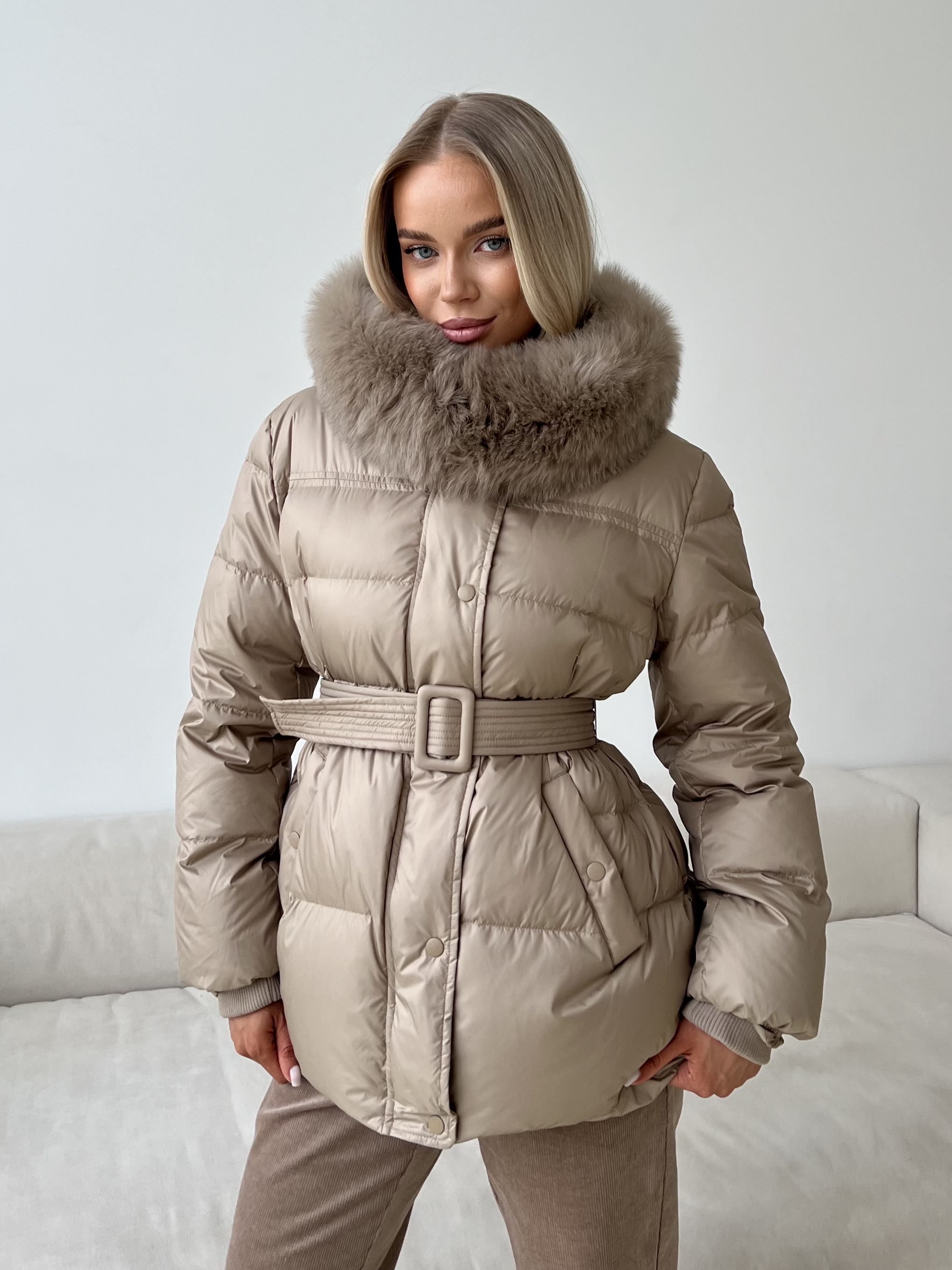 Натуральный мех добавляет образу статусности и завершённости, делая пуховик особенно эффектным. Пояс подчёркивает талию и позволяет регулировать посадку — можно носить как более приталенно, так и свободно. Универсальный вариант для города, поездок и долгих зимних прогулок