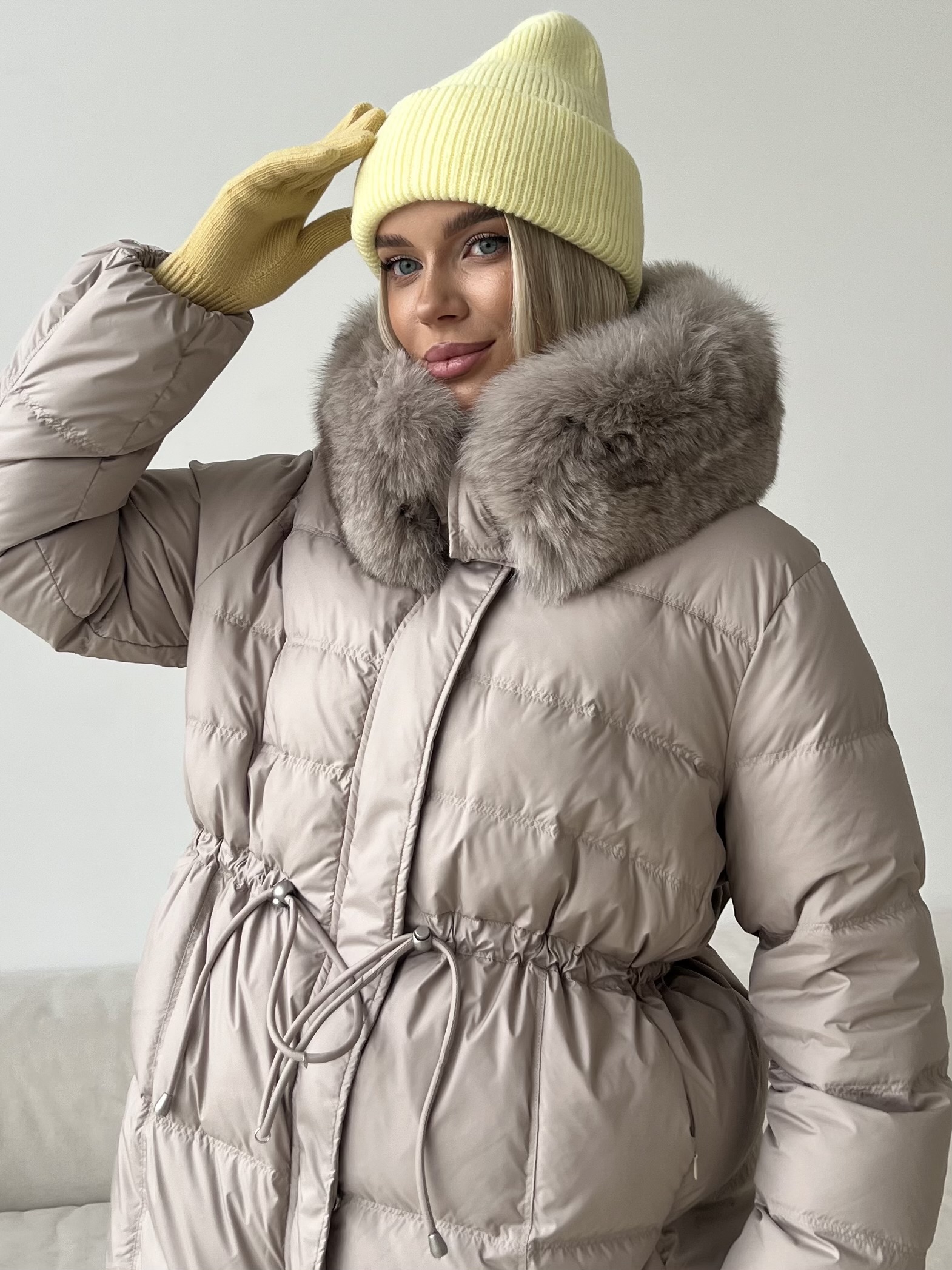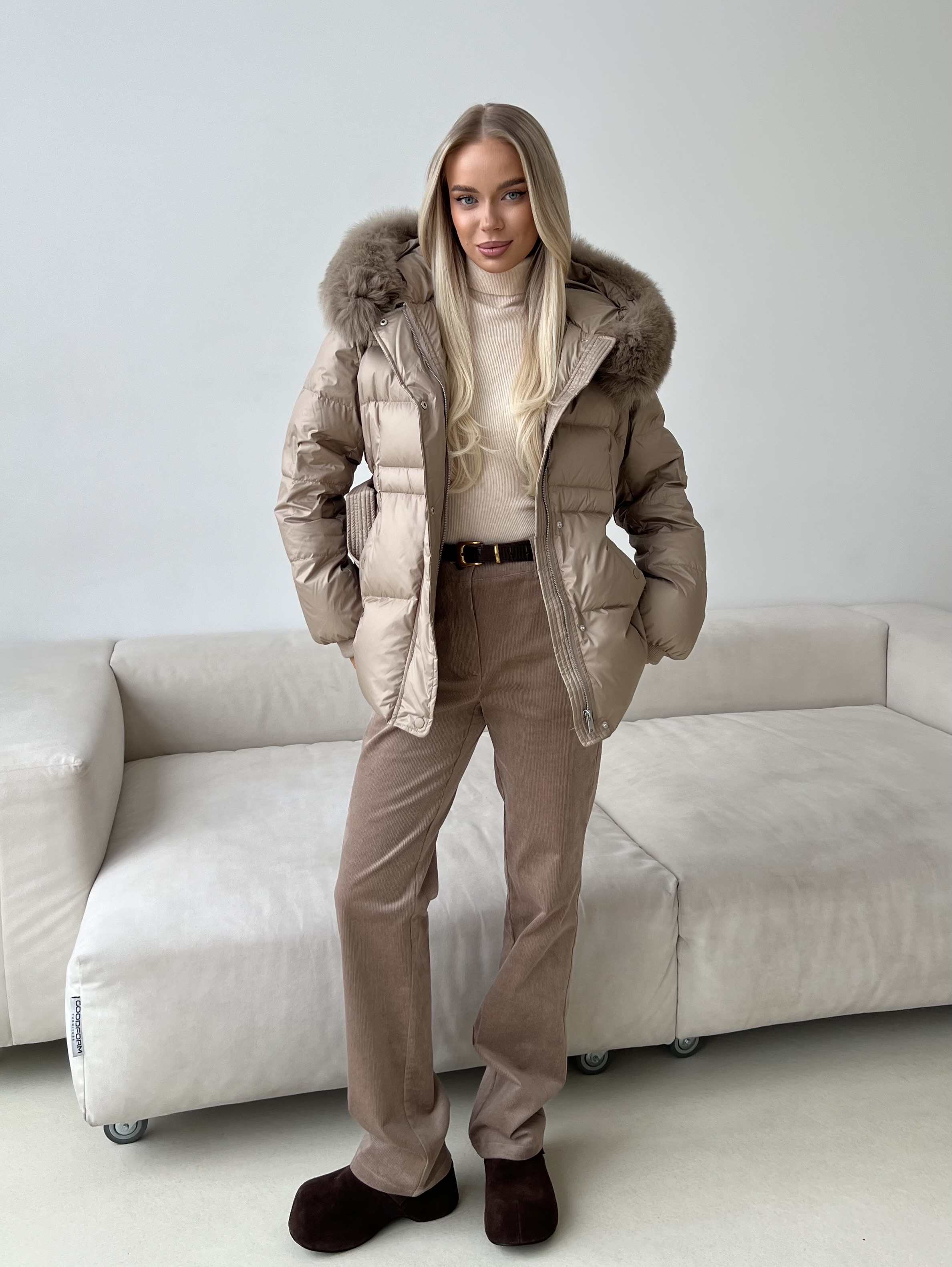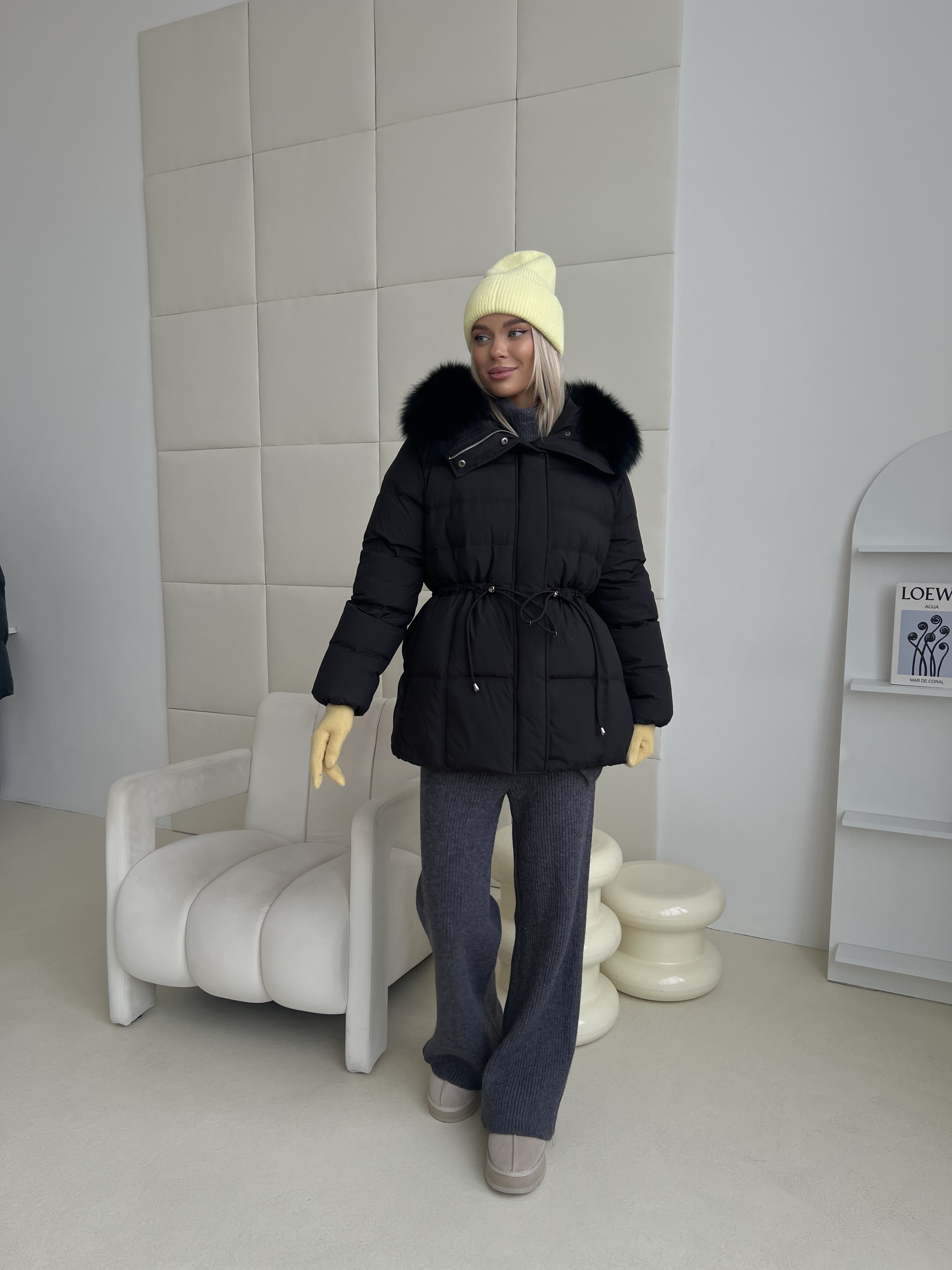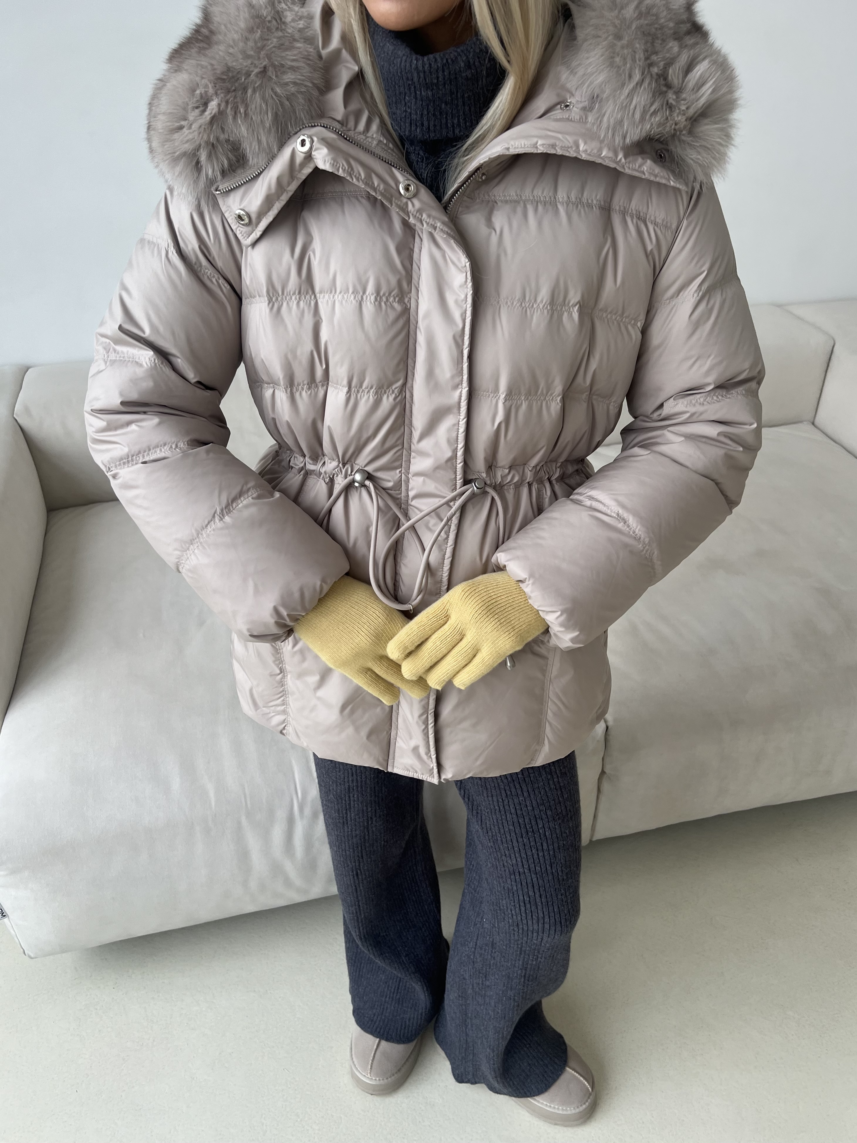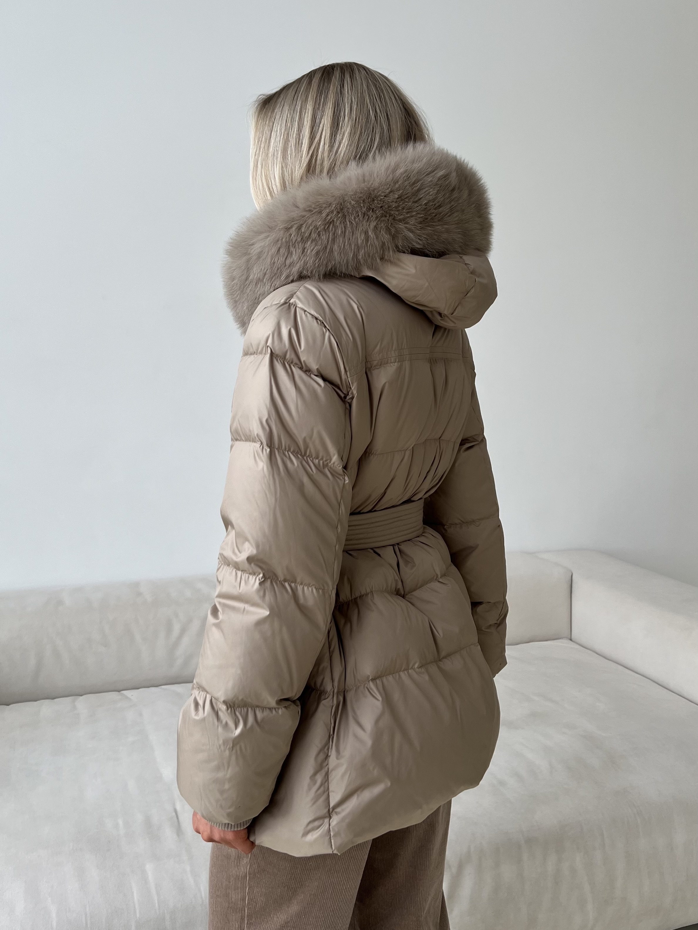 Натуральный мех добавляет образу статусности и завершённости, делая пуховик особенно эффектным. Пояс подчёркивает талию и позволяет регулировать посадку — можно носить как более приталенно, так и свободно. Универсальный вариант для города, поездок и долгих зимних прогулок