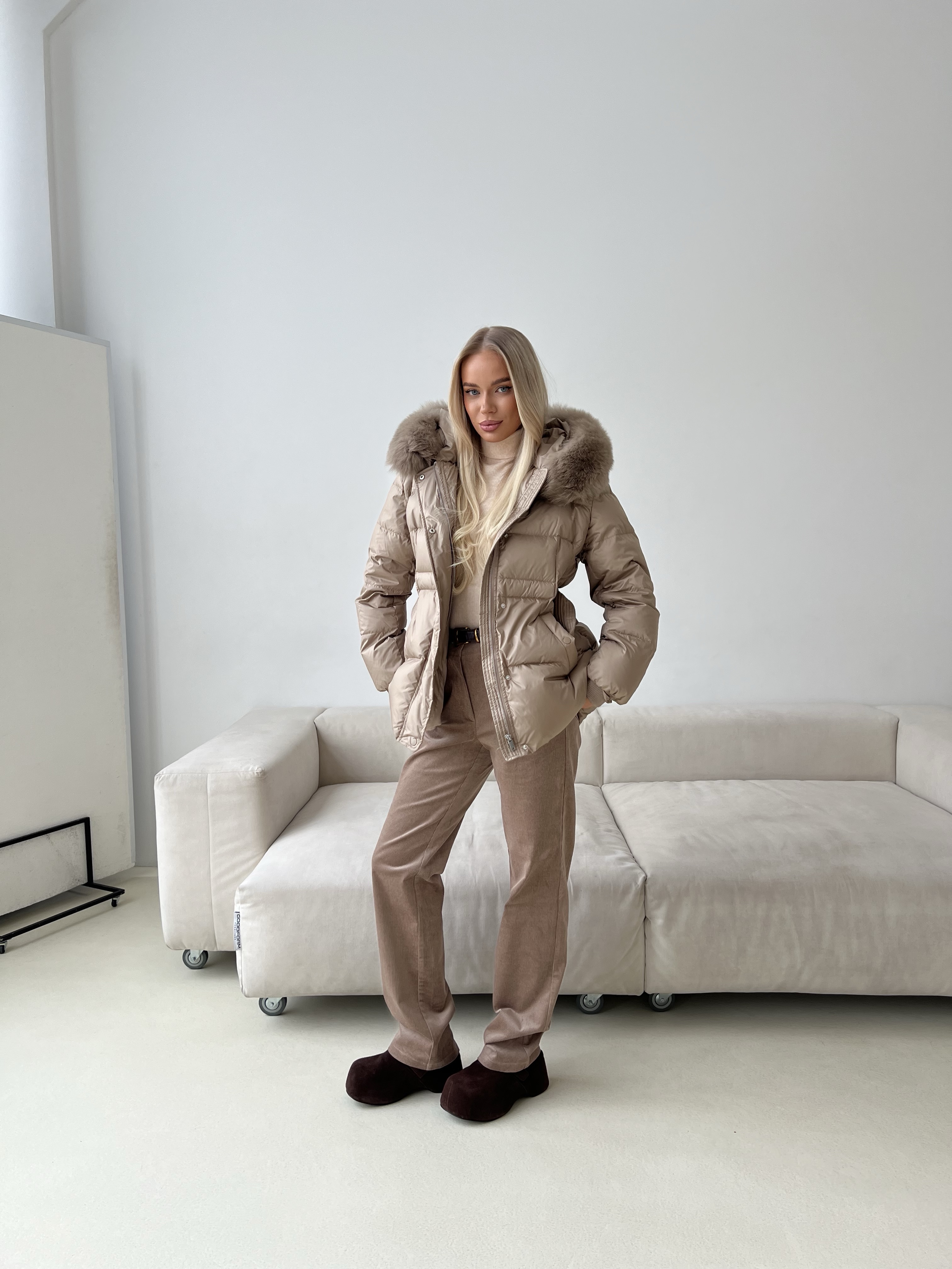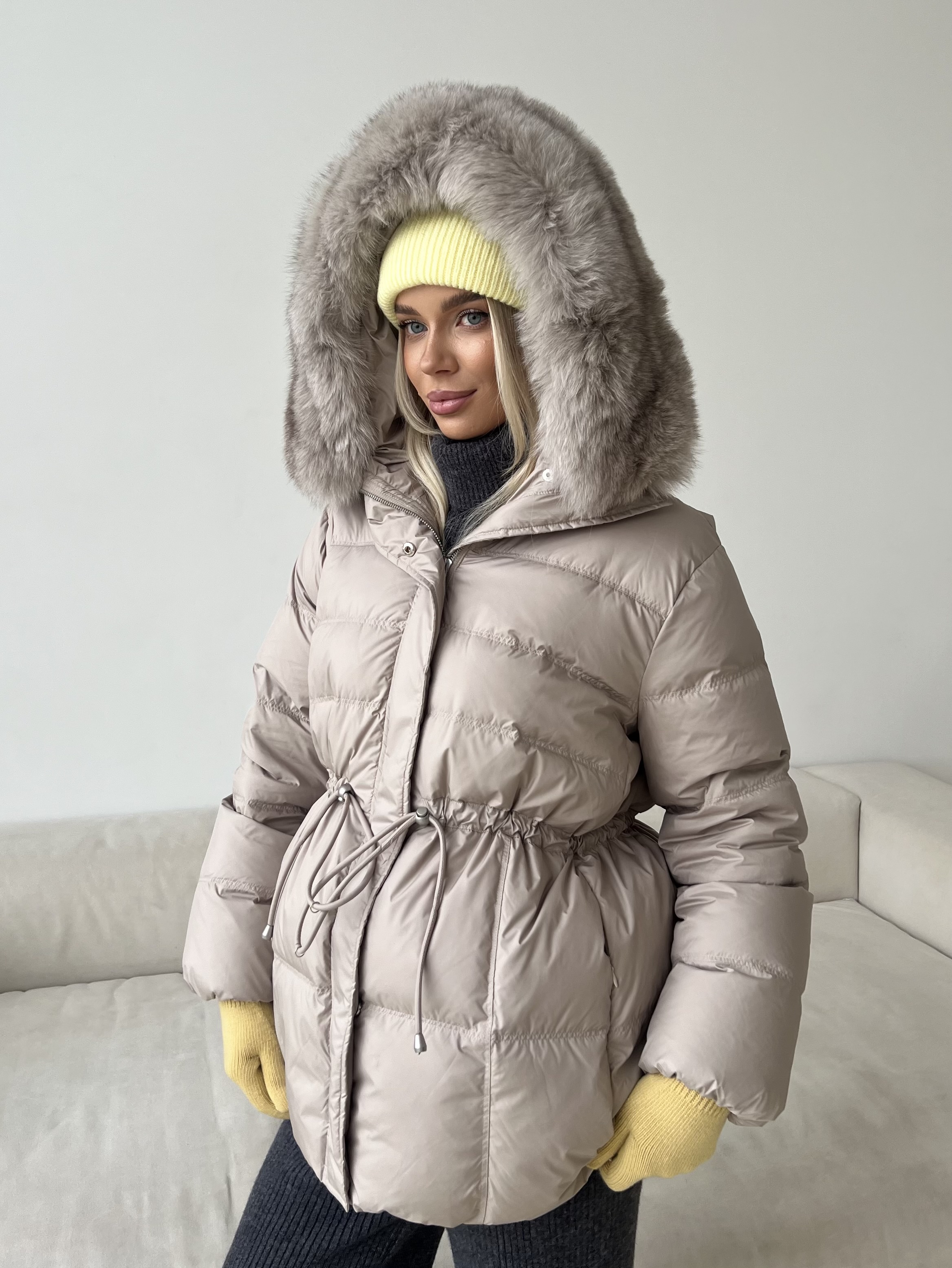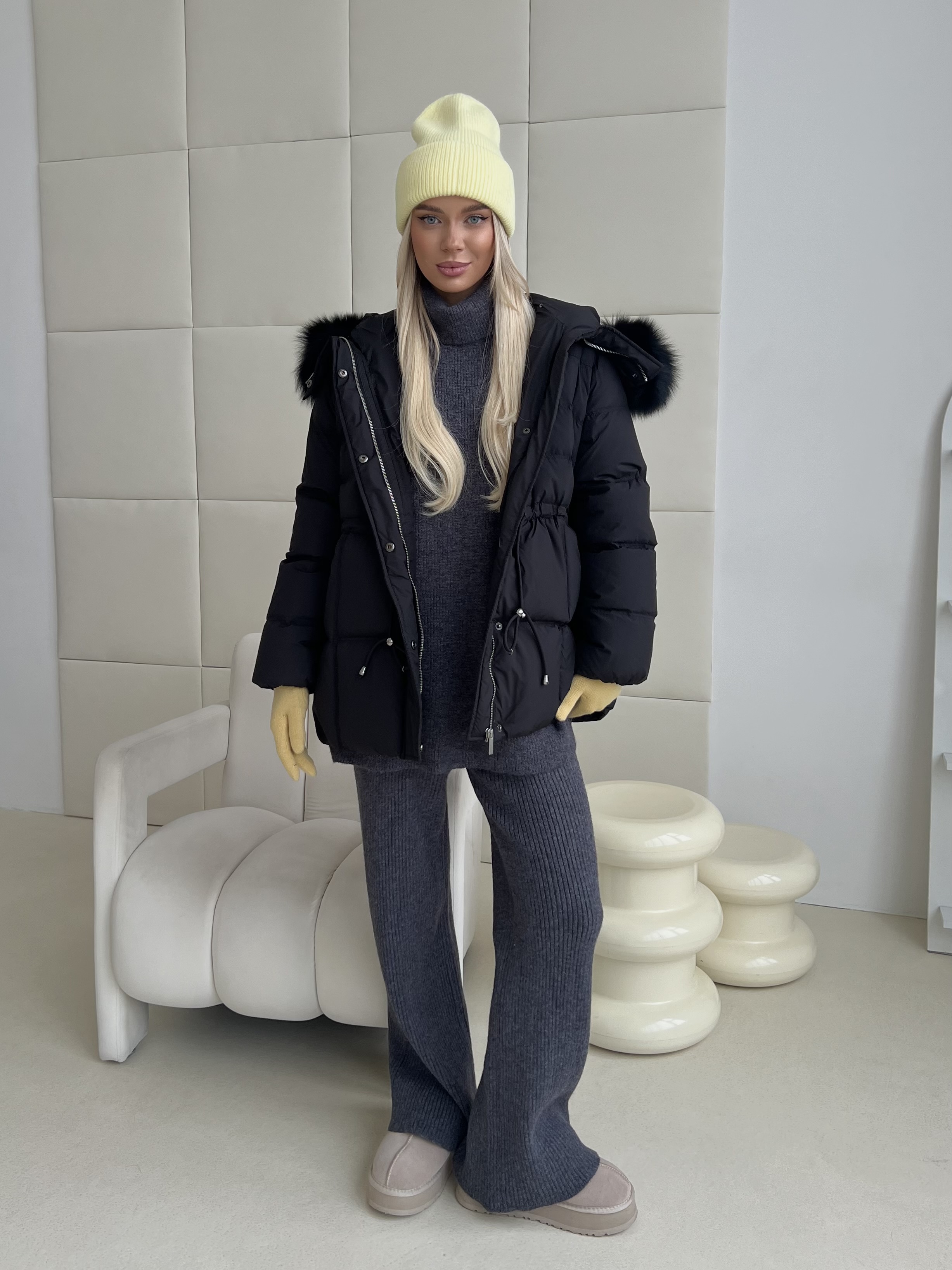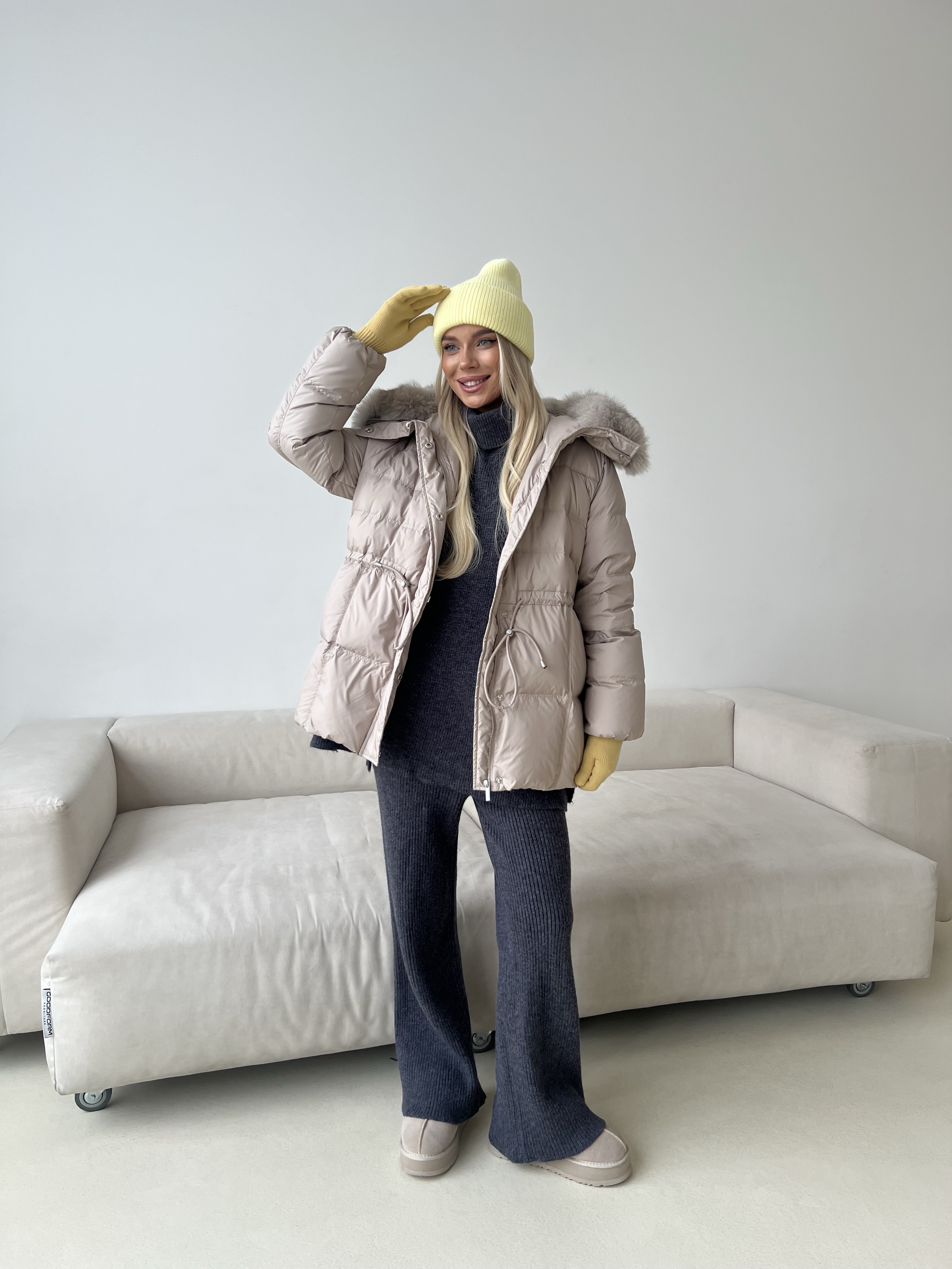 Натуральный мех добавляет образу статусности и завершённости, делая пуховик особенно эффектным. Пояс подчёркивает талию и позволяет регулировать посадку — можно носить как более приталенно, так и свободно. Универсальный вариант для города, поездок и долгих зимних прогулок