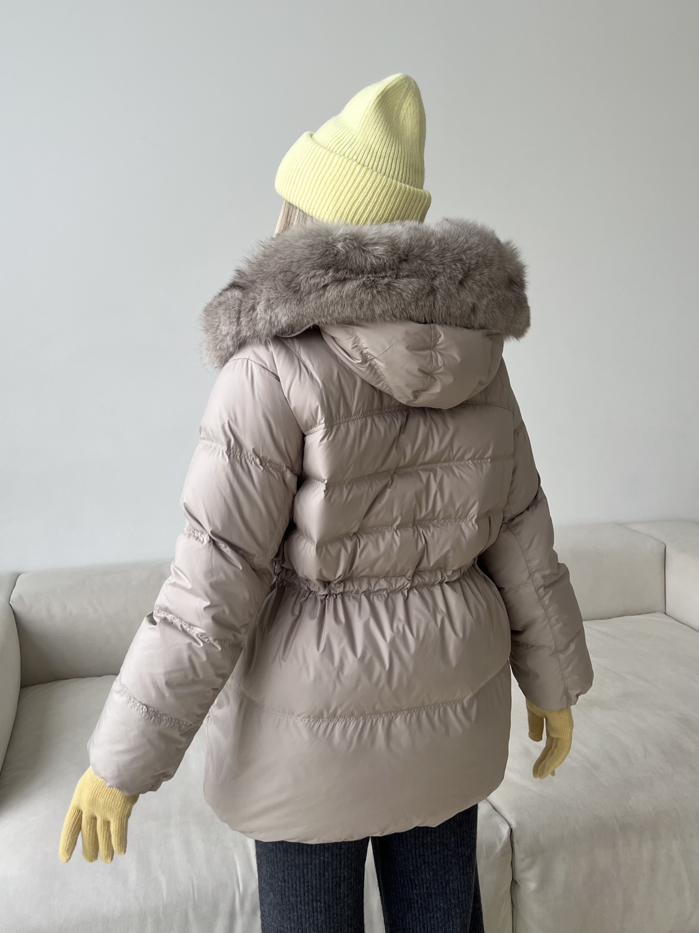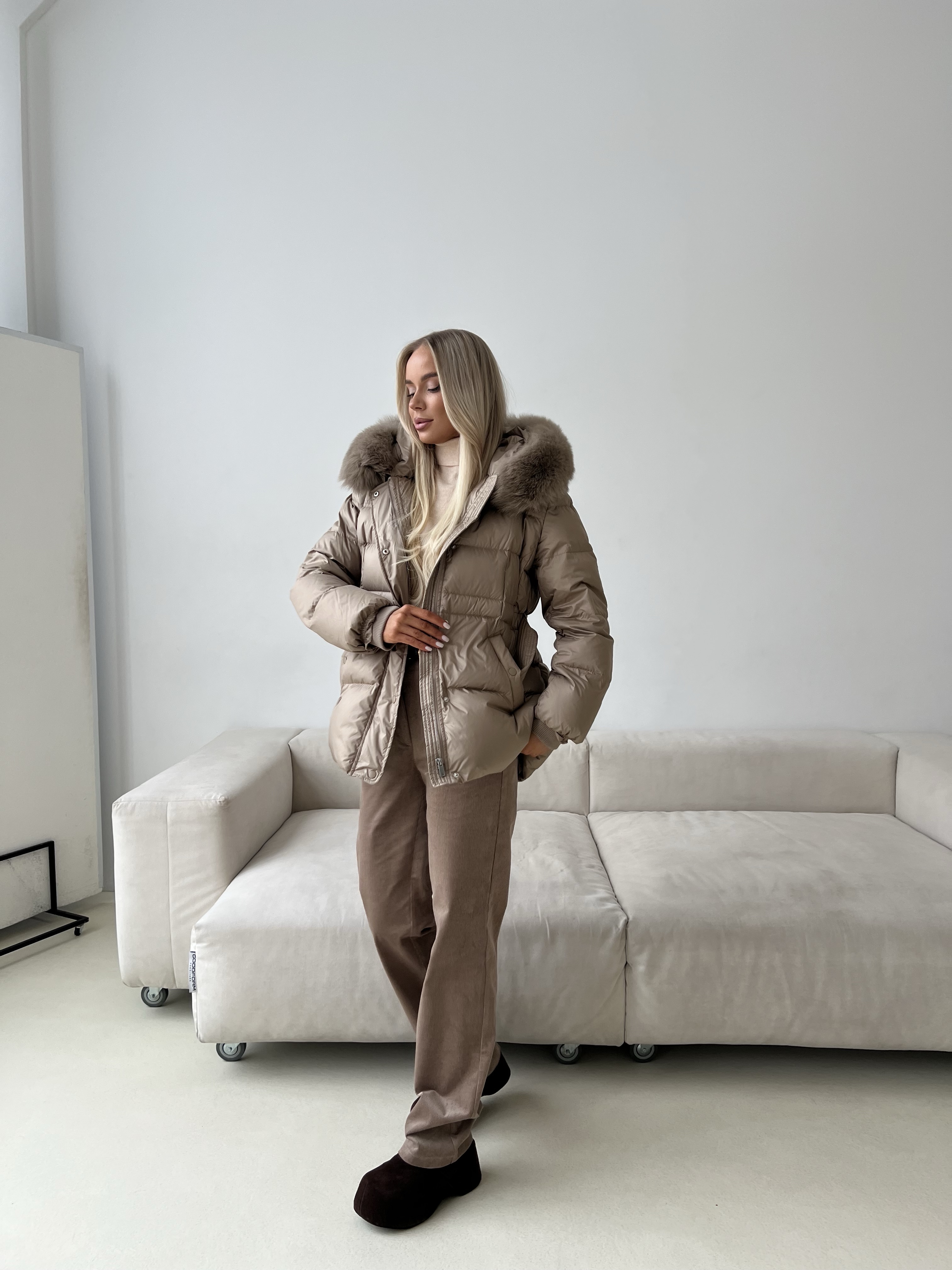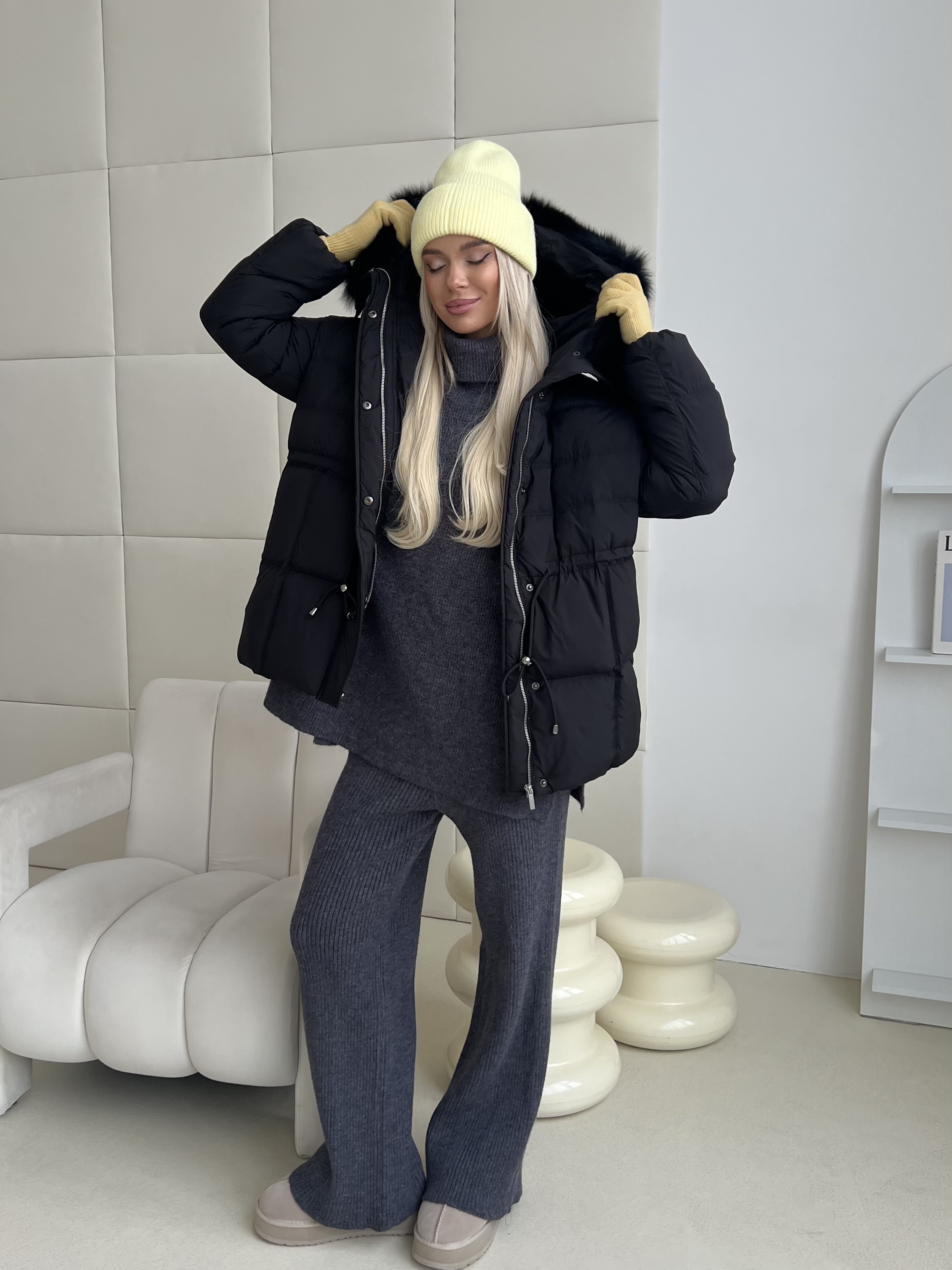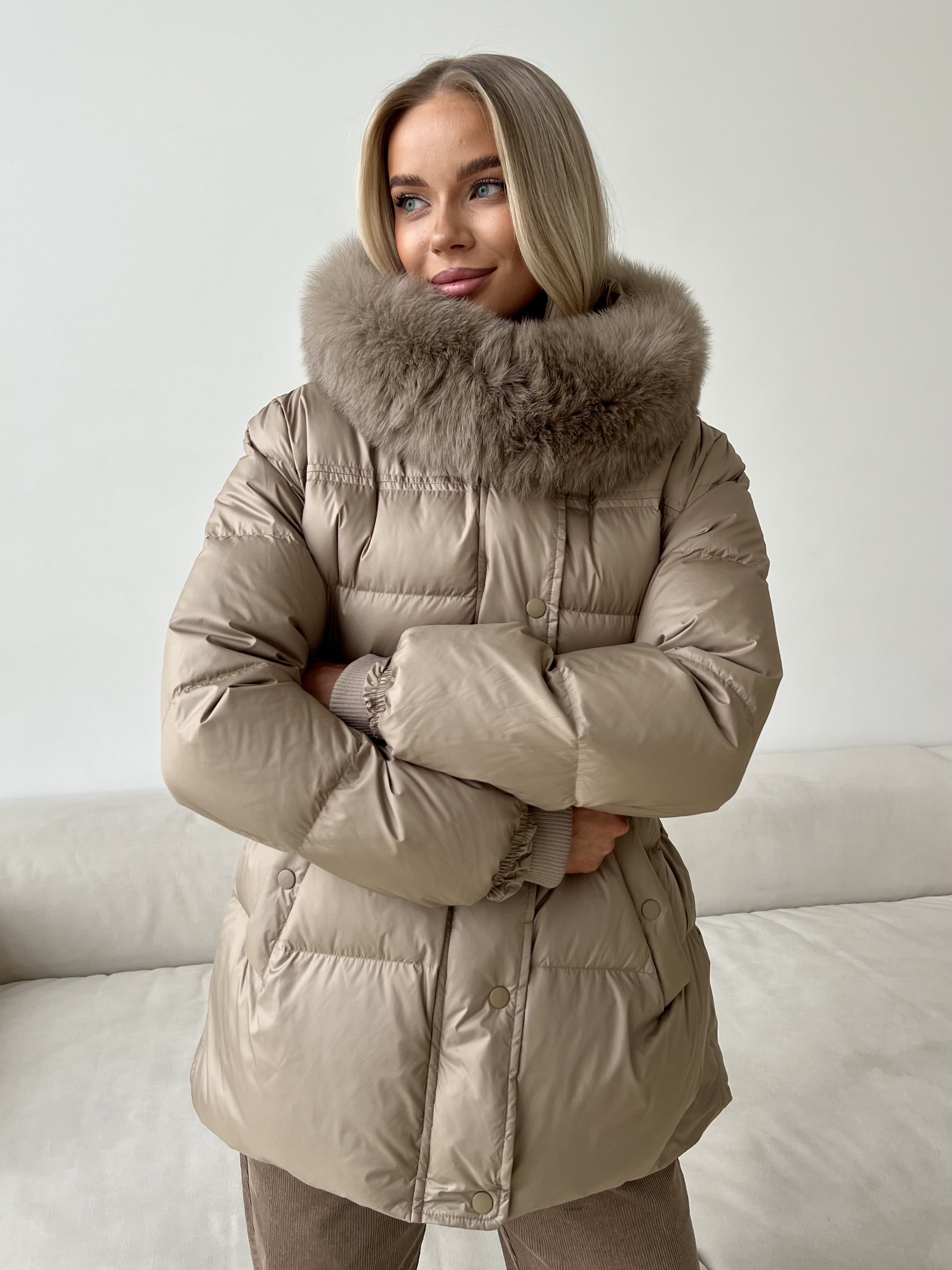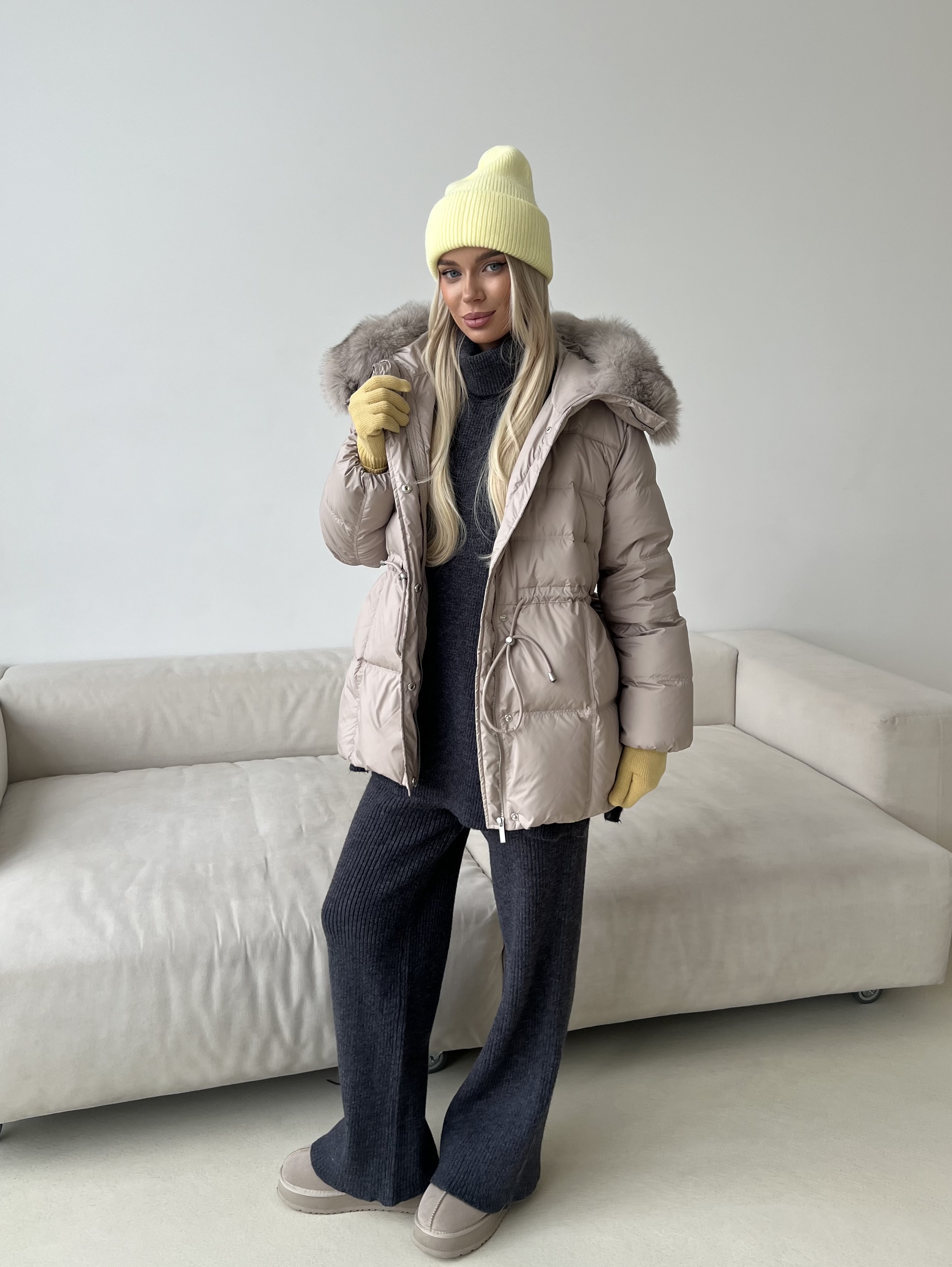 Натуральный мех добавляет образу статусности и завершённости, делая пуховик особенно эффектным. Пояс подчёркивает талию и позволяет регулировать посадку — можно носить как более приталенно, так и свободно. Универсальный вариант для города, поездок и долгих зимних прогулок