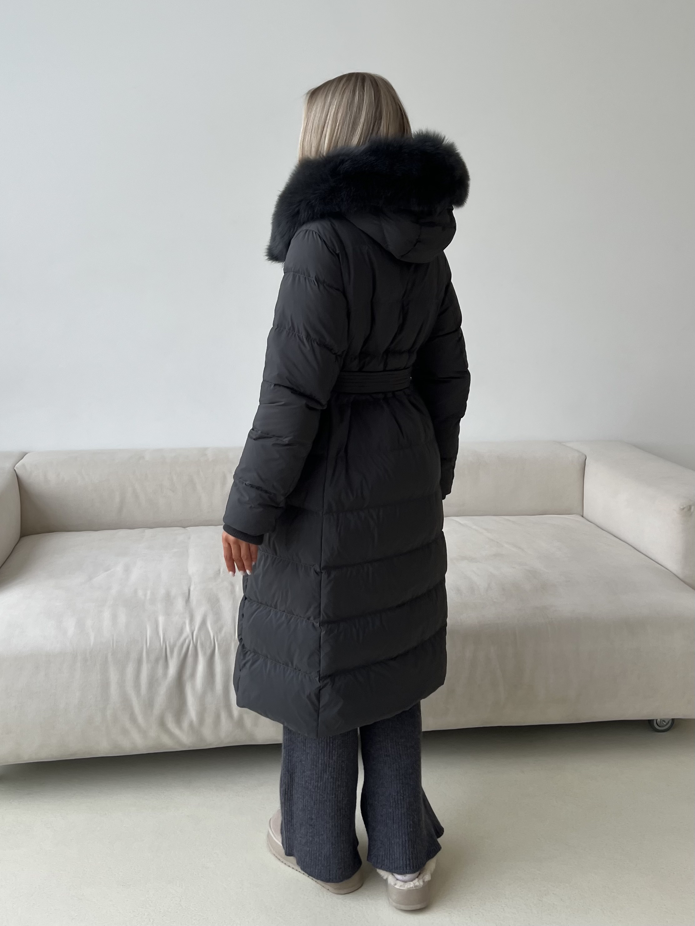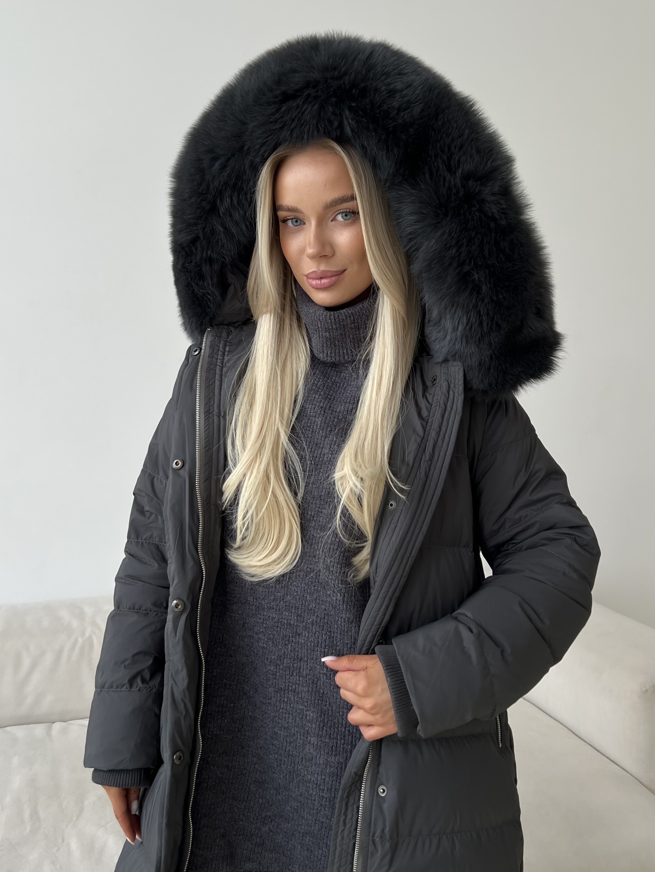 Внутри — натуральный пух, поэтому пуховик остаётся очень тёплым, но при этом лёгким. Карманы расположены удобно, застёжка выполняет свою функцию надёжно, а крой не сковывает движения, что делает модель удобной для ежедневной зимней носки.