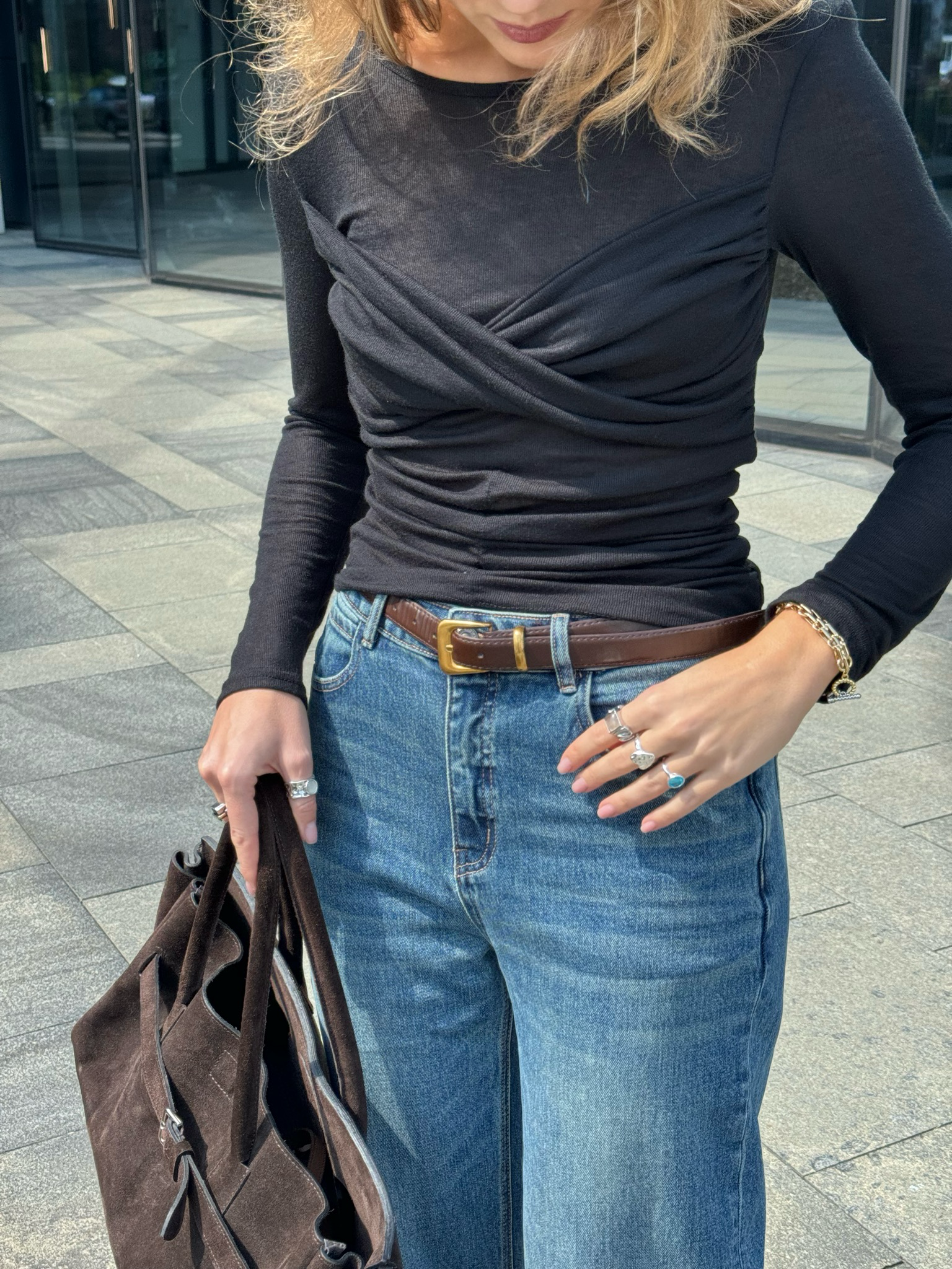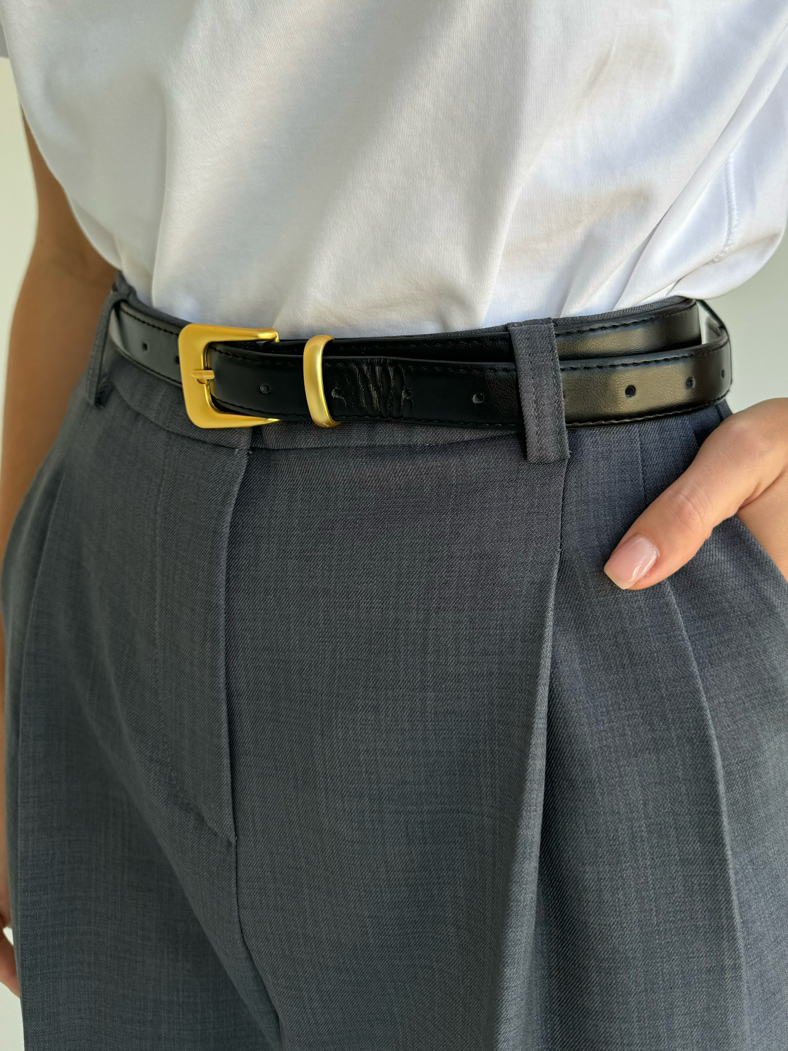 Женский ремень средней ширины в шоколадном оттенке - идеальный выбор для завершения образа.