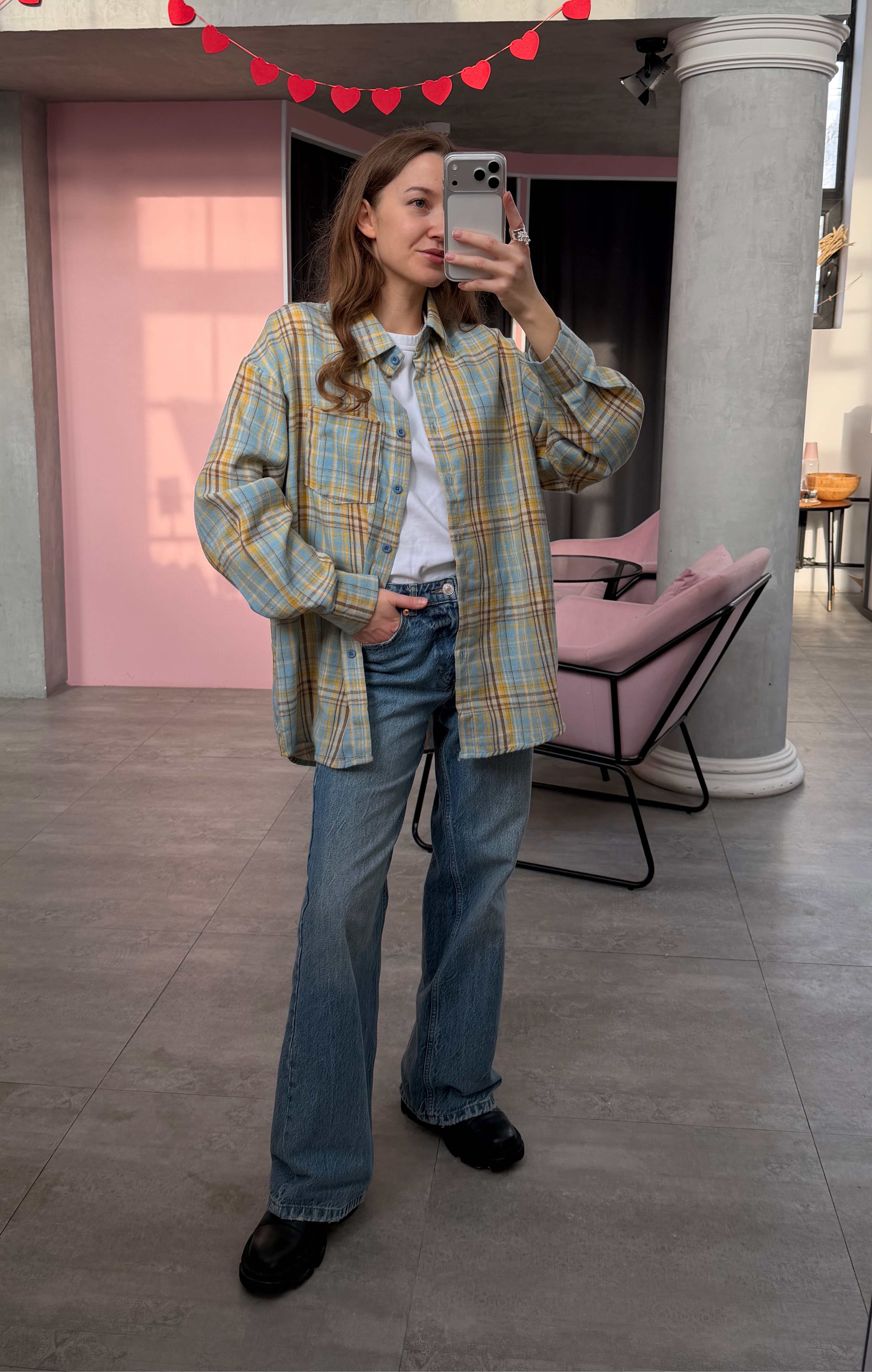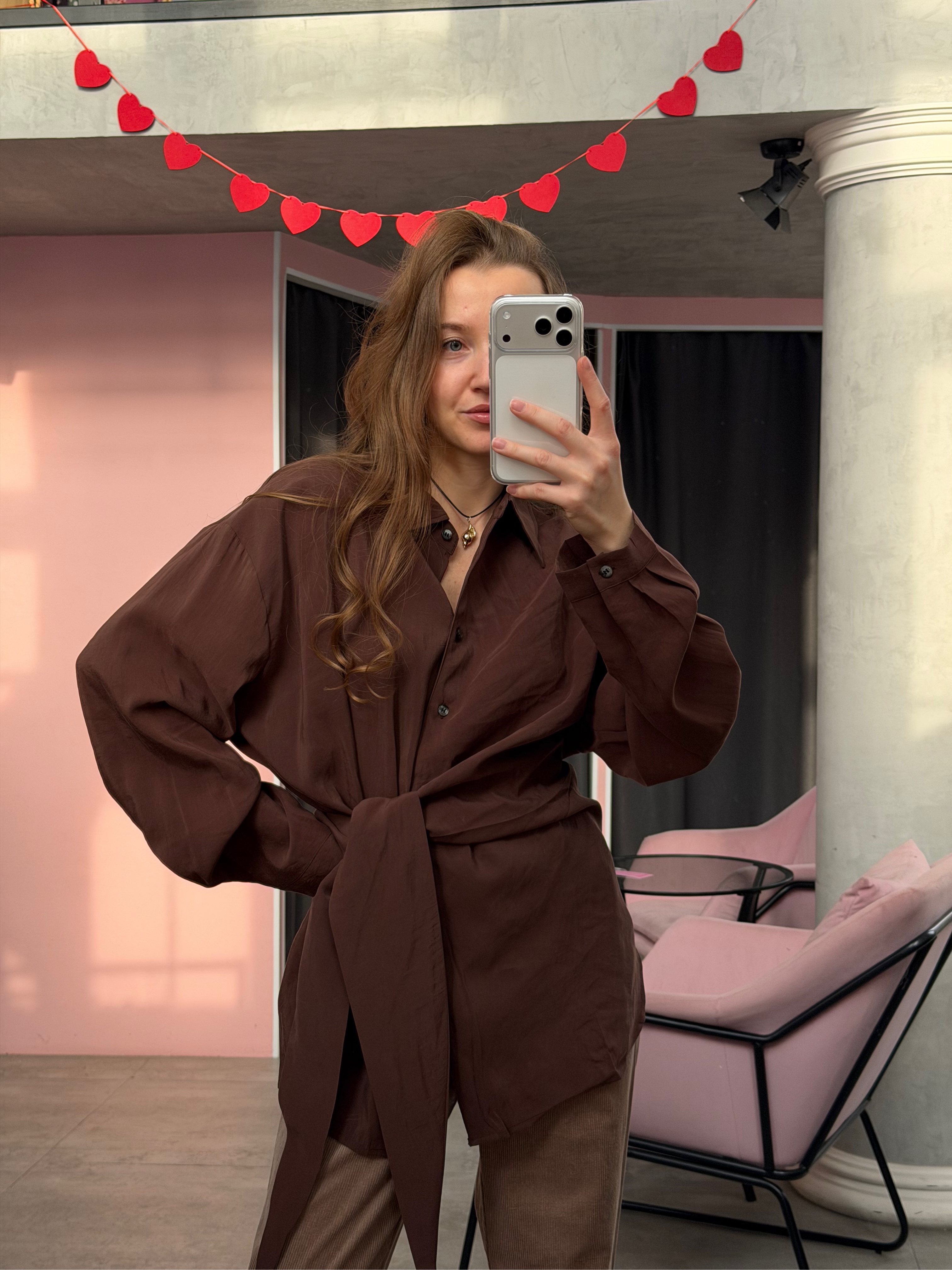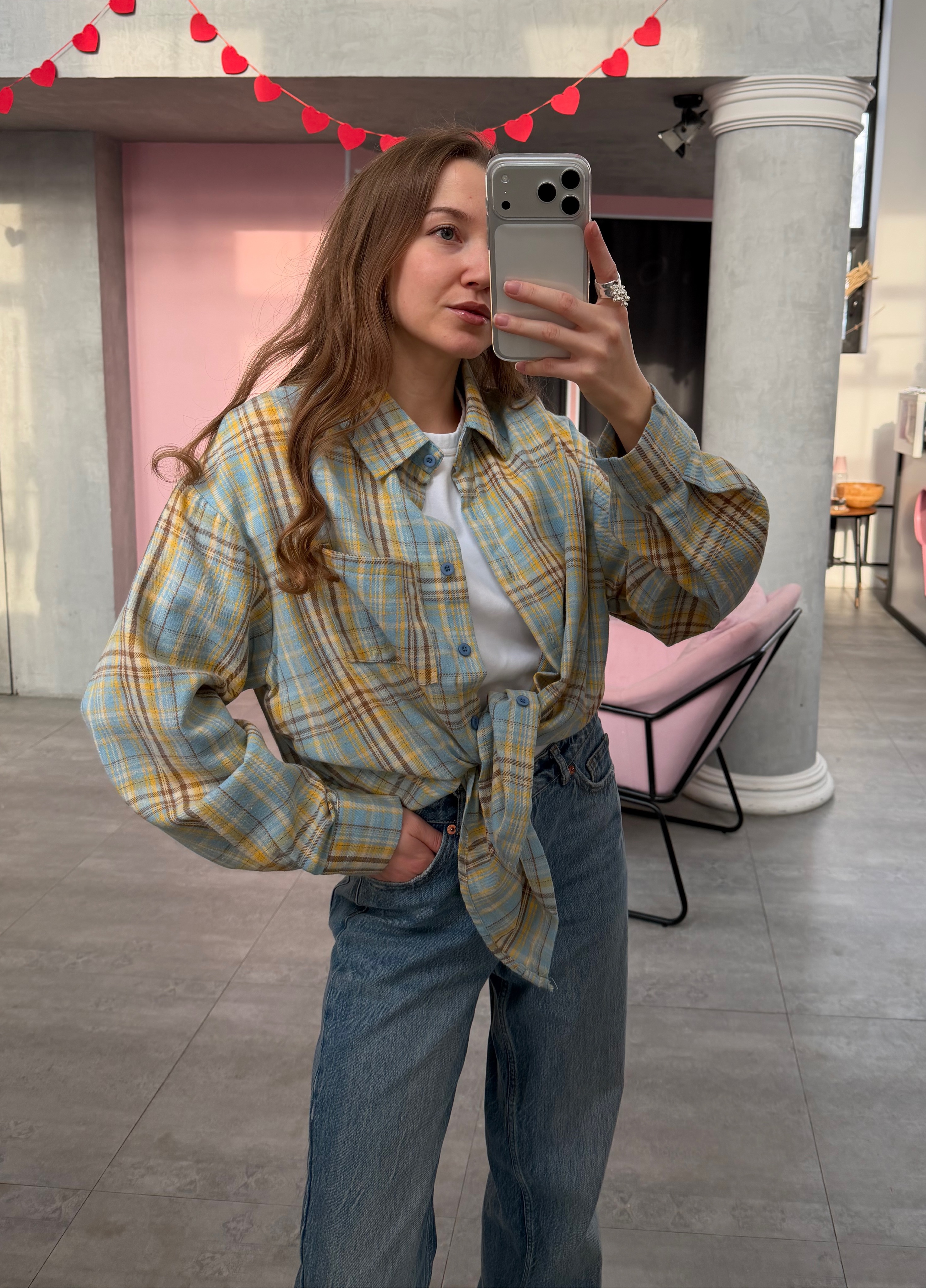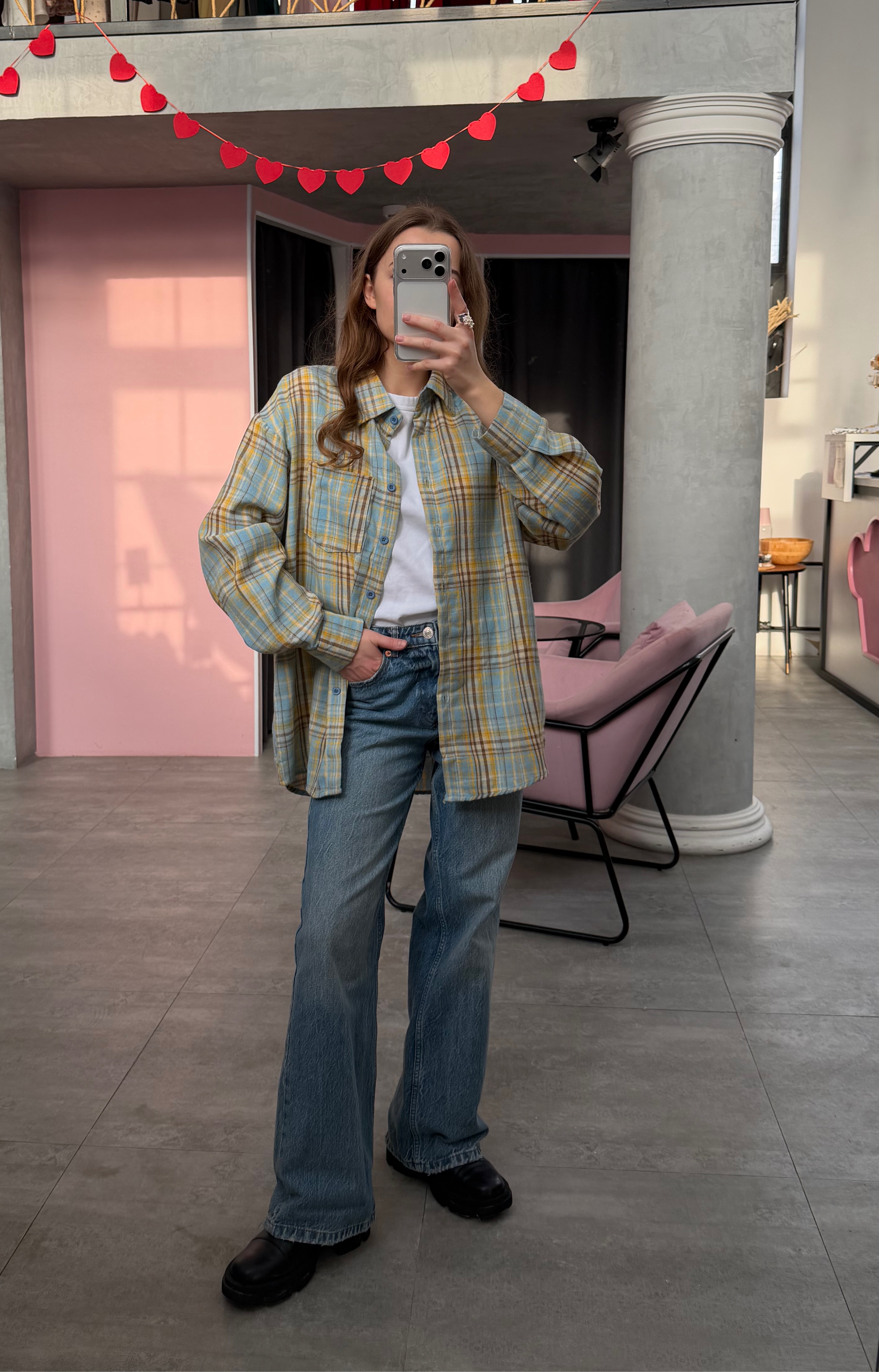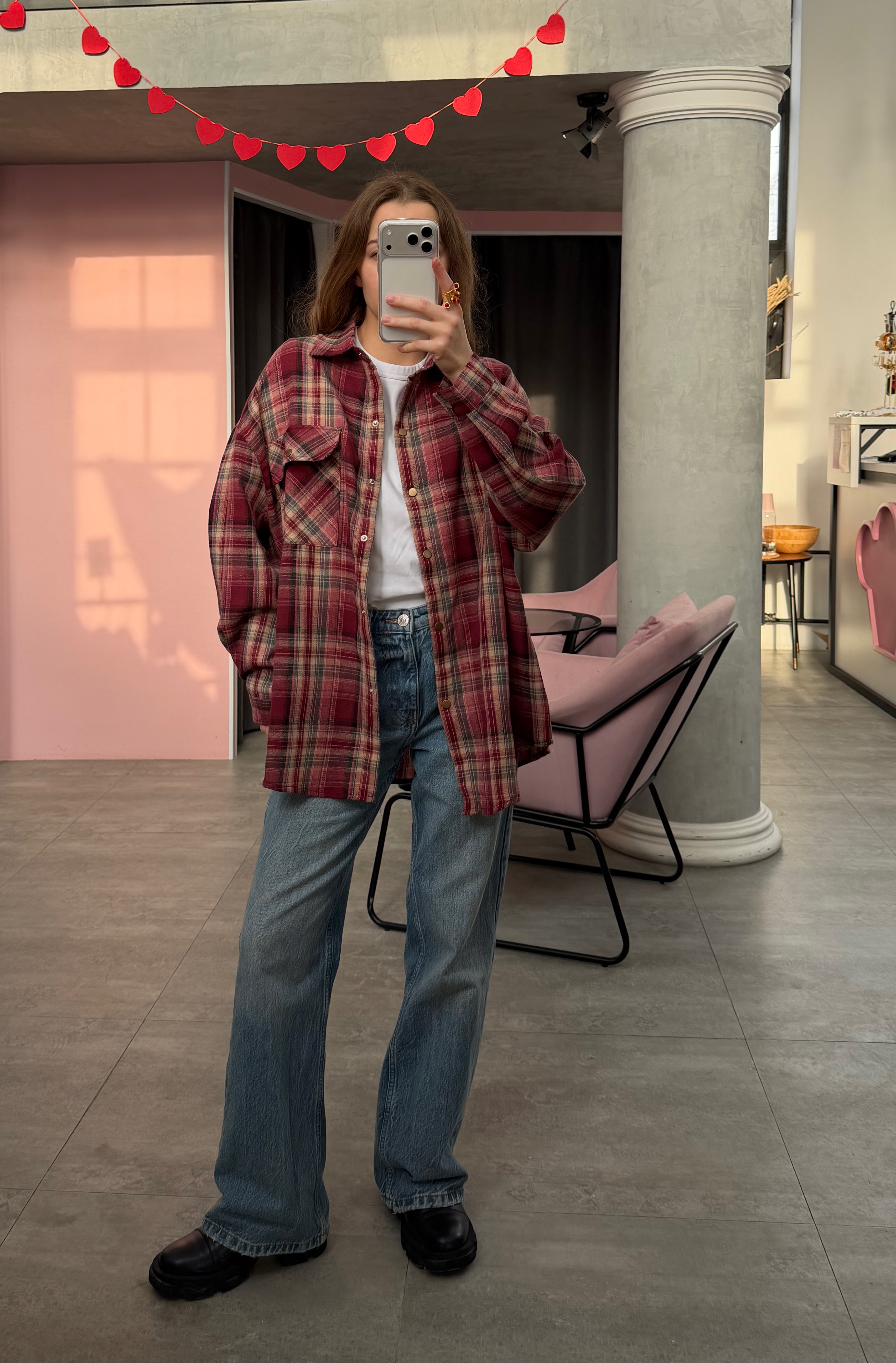 Свободный силуэт даёт простор для стилизации: носить её можно как самостоятельный элемент или вписать в многослойный аутфит. Натуральные оттенки, идеальная длина, расслабленный крой — универсальная база с лёгким намёком на гранж и эстетику винтажных casual-образов.