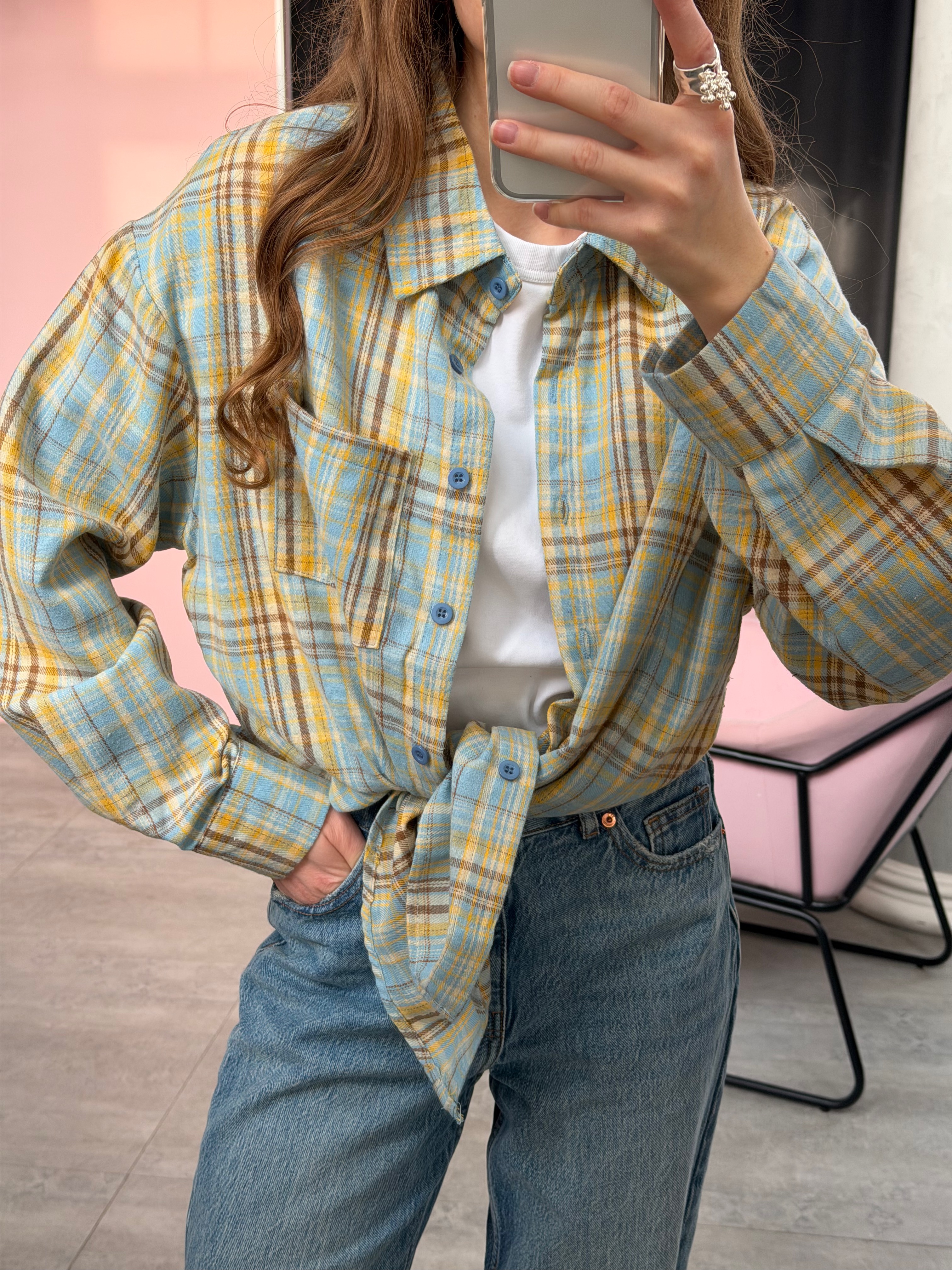 Рубашка в клетку голубой