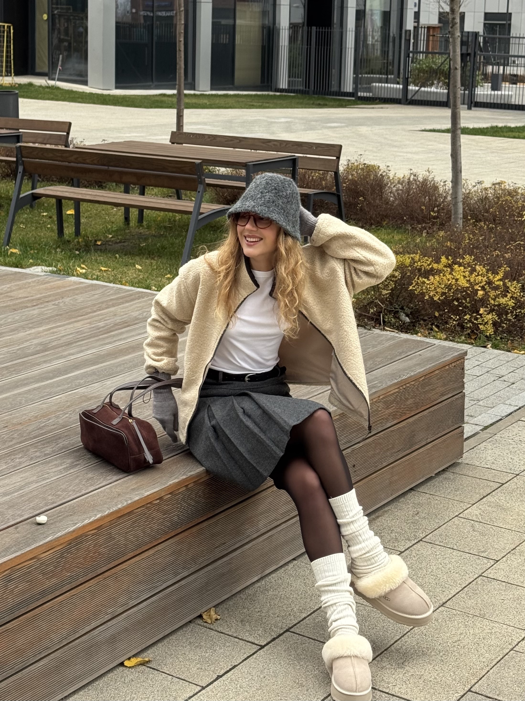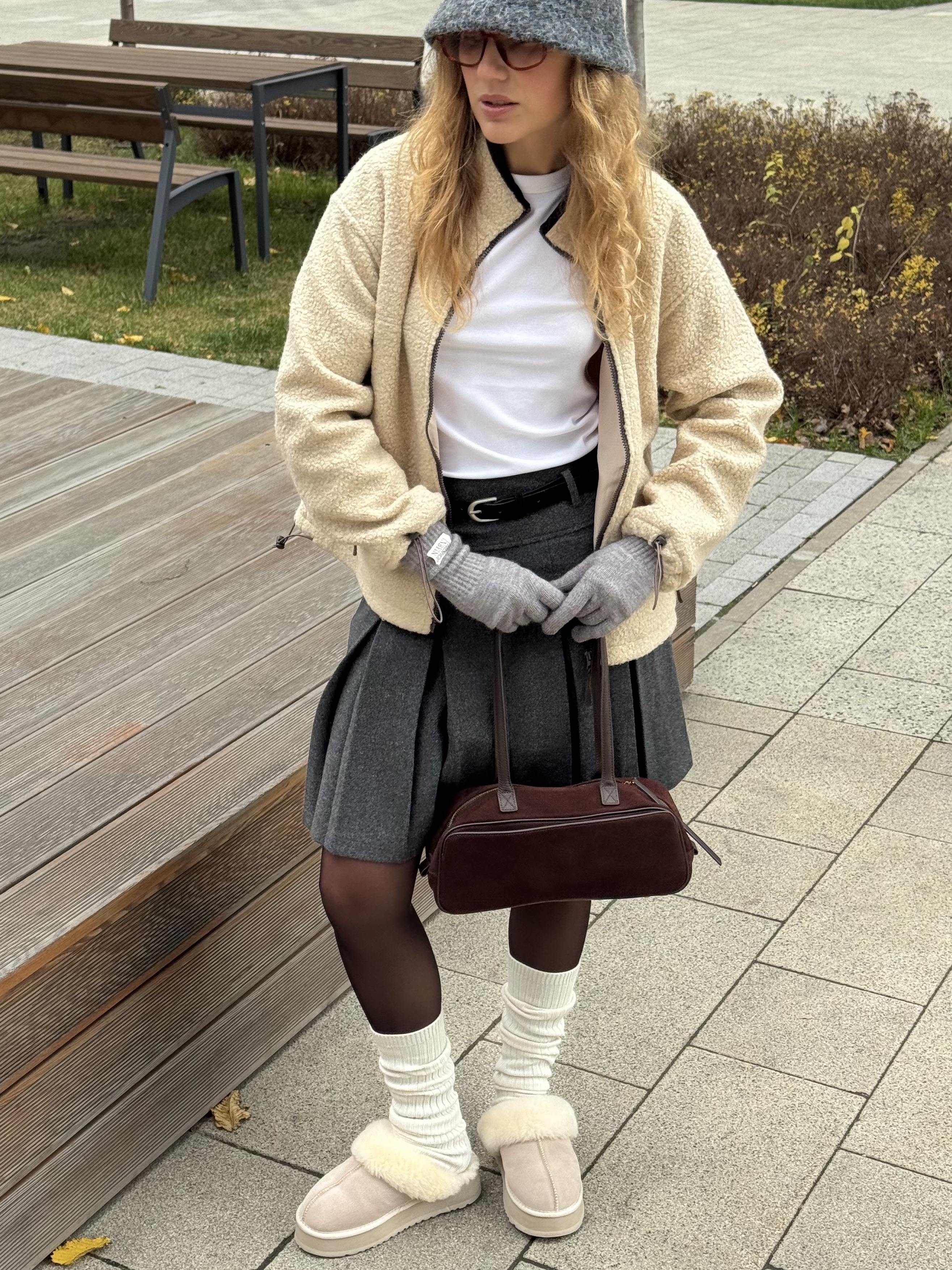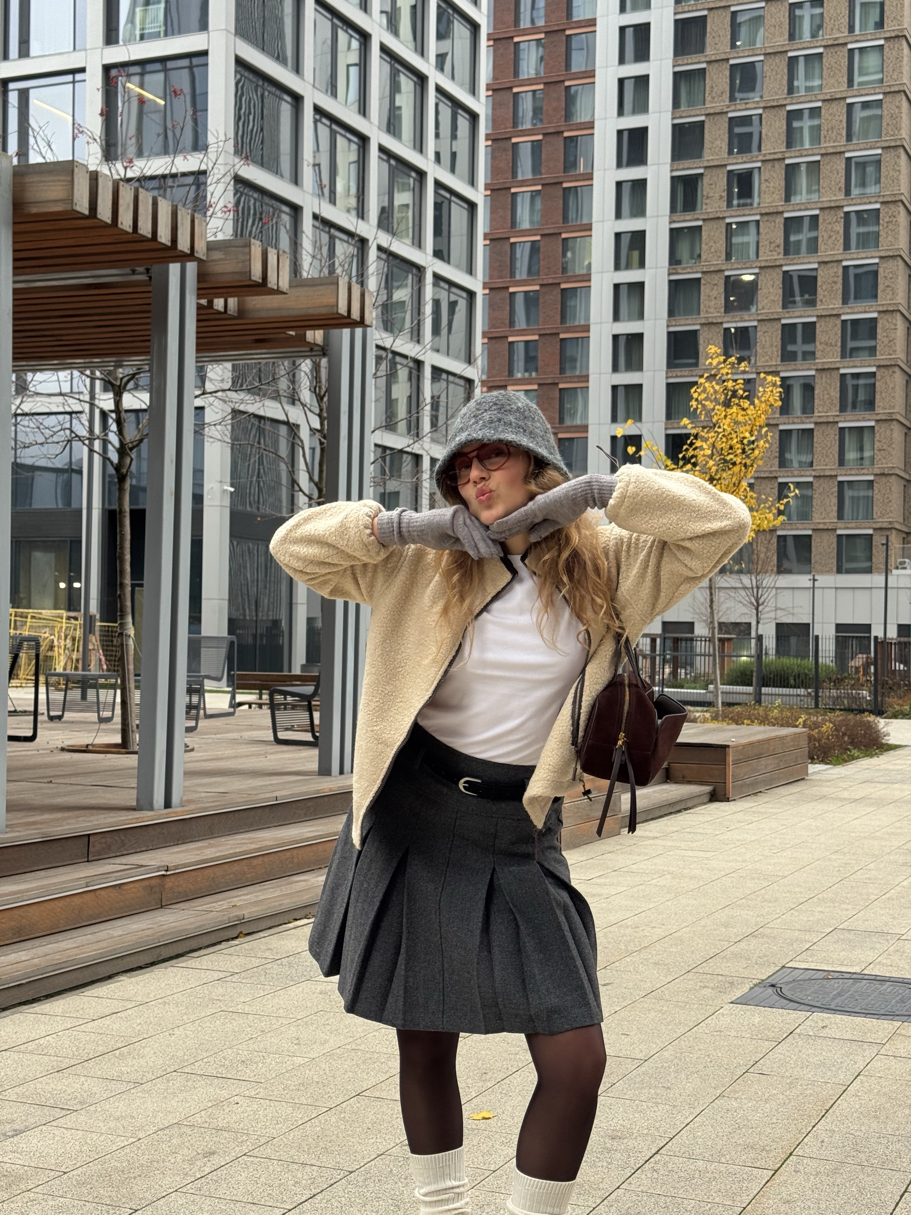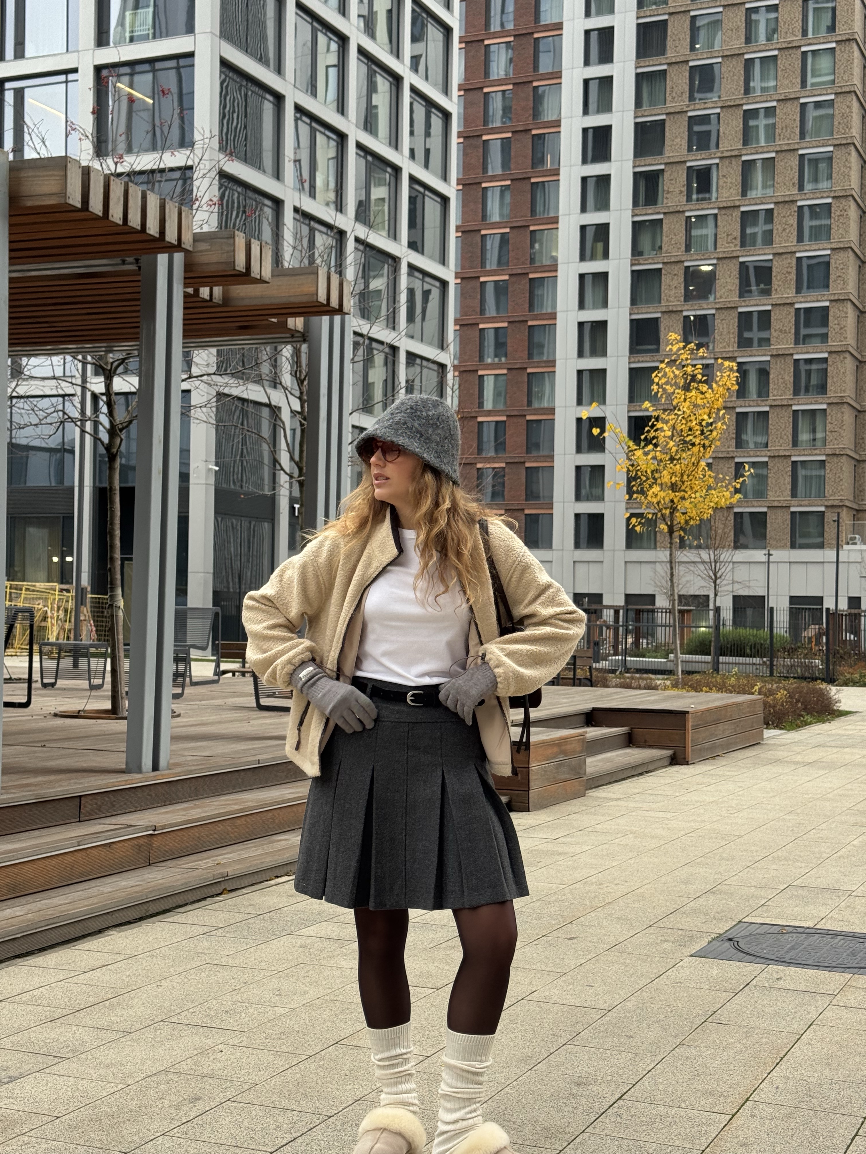 Юбка из тёплой шерстяной ткани с мягкой фактурой и удобной посадкой на талии. Глубокие встречные складки создают аккуратный объём и красиво двигаются при ходьбе. Благодаря плотному материалу модель отлично подходит для зимнего сезона — она сохраняет тепло и при этом выглядит элегантно. Идеальна для образов с уютными свитерами, гольфами, лонгсливами и тёплыми ботинками.