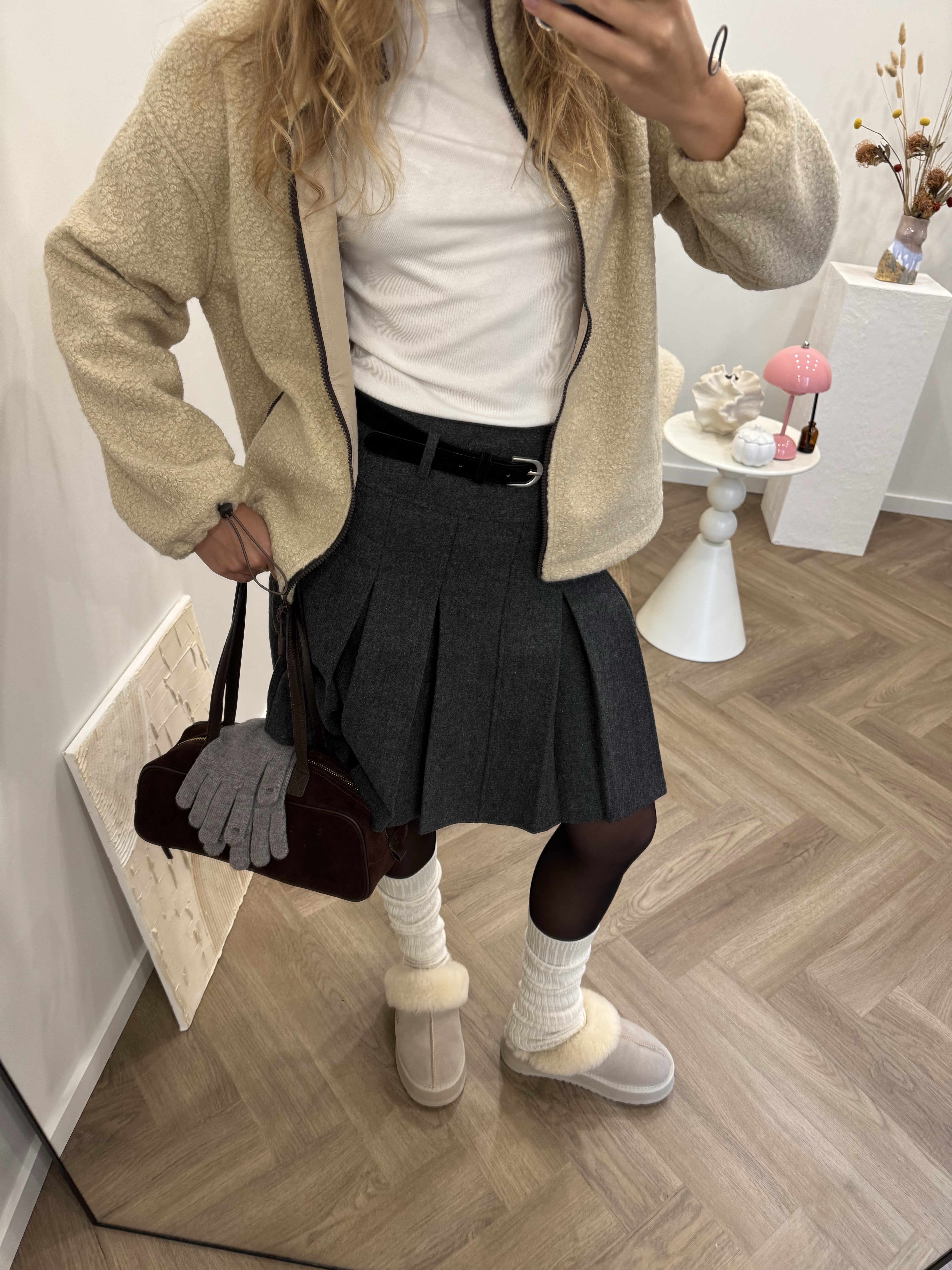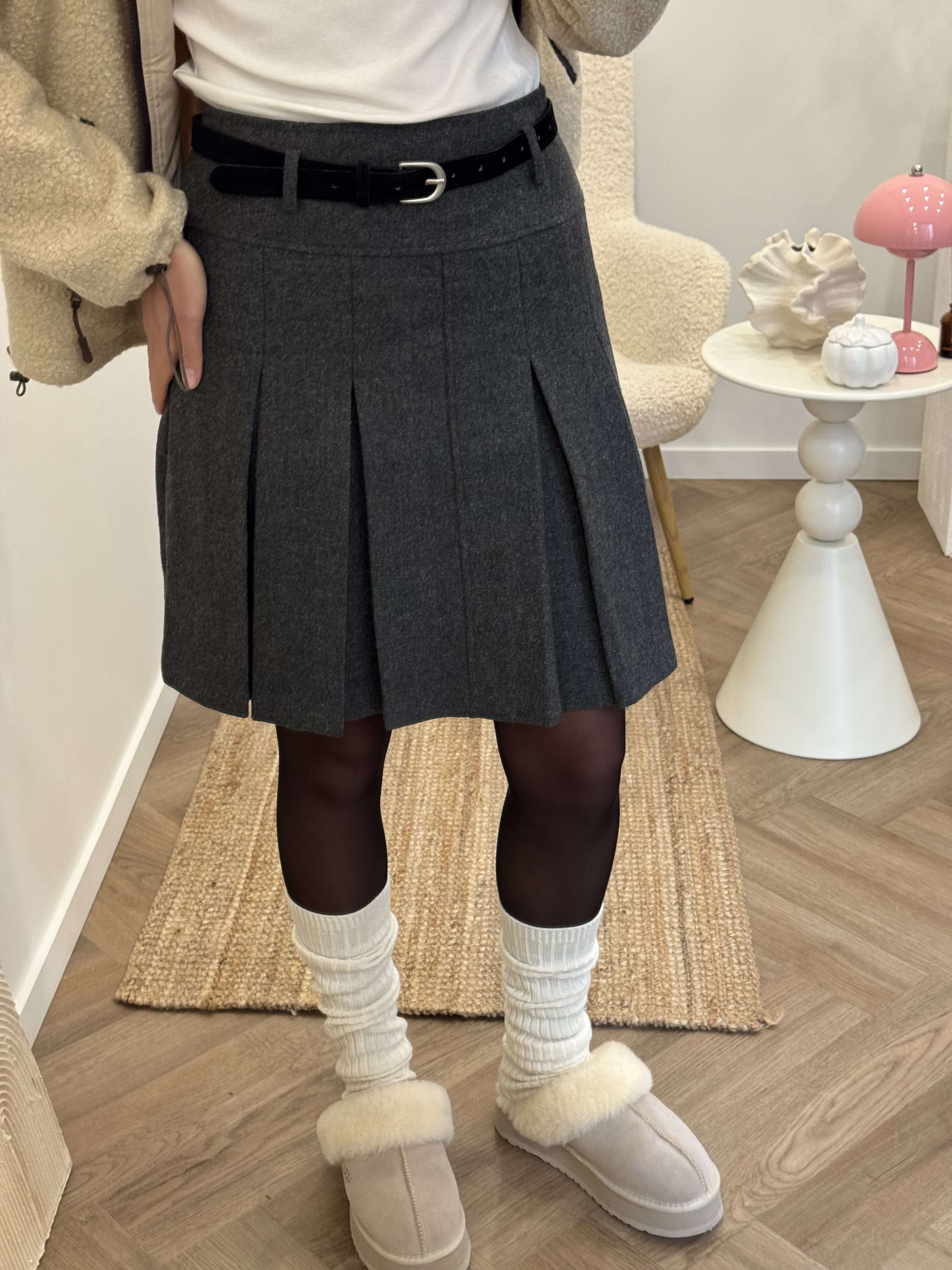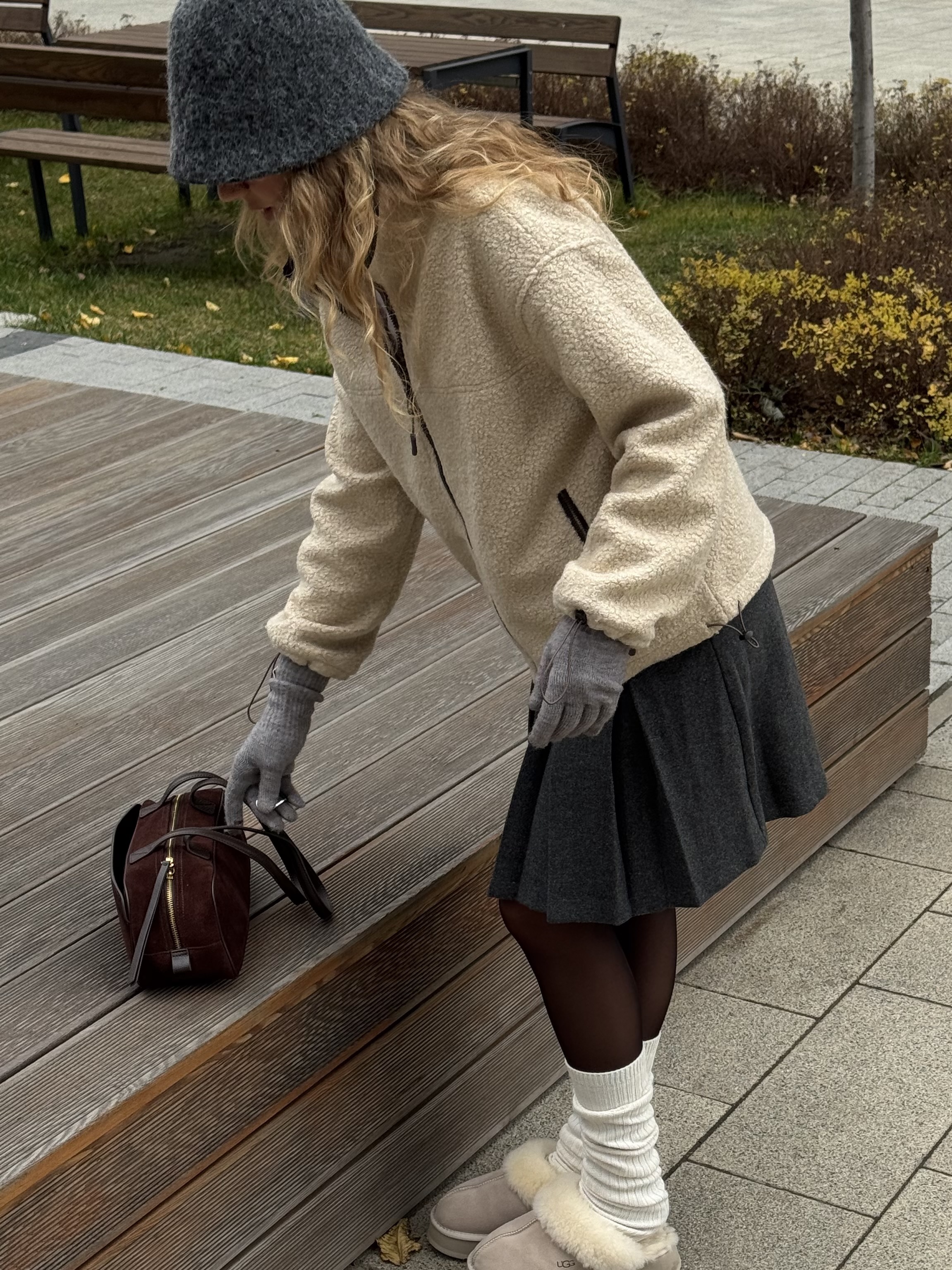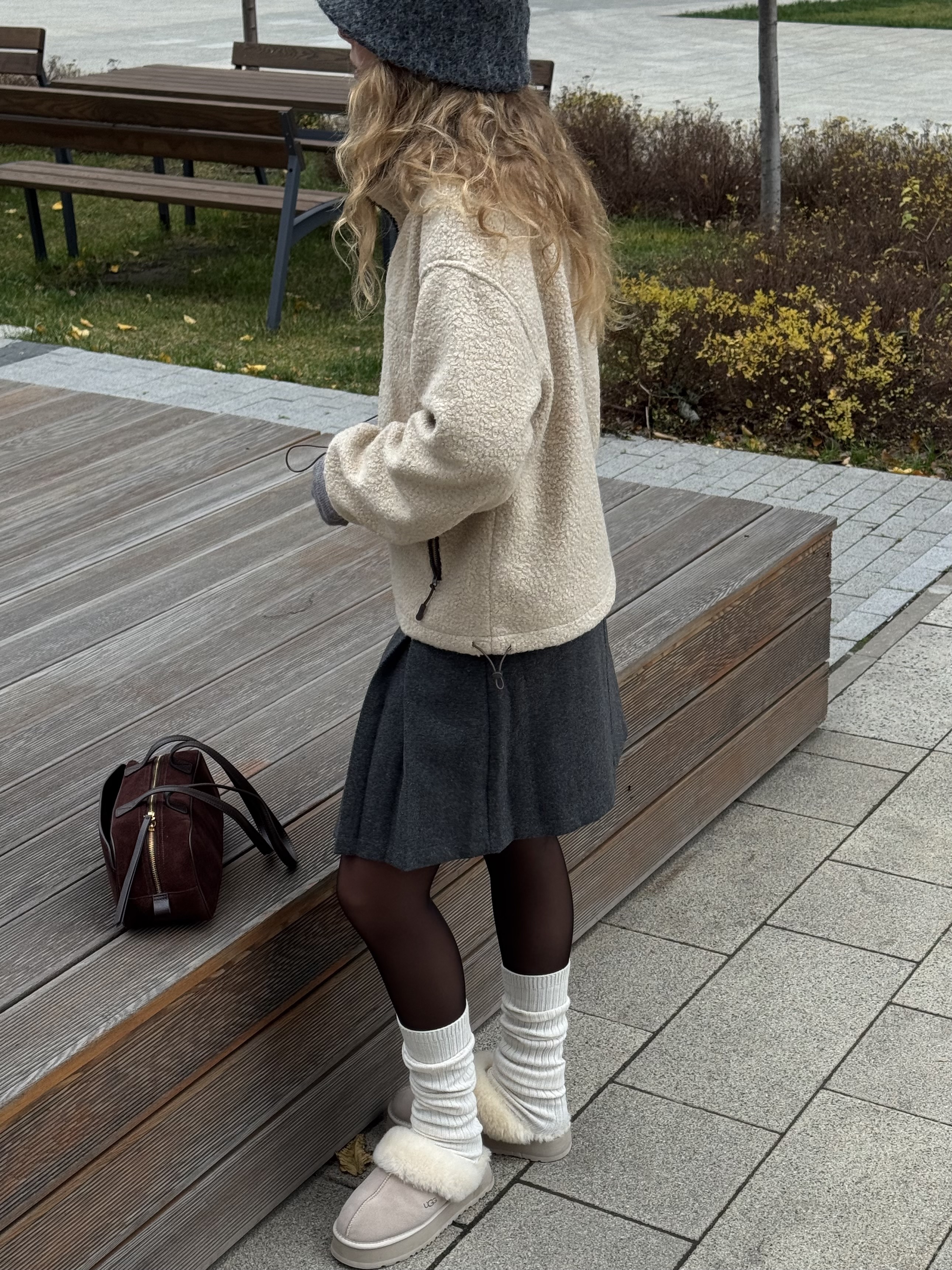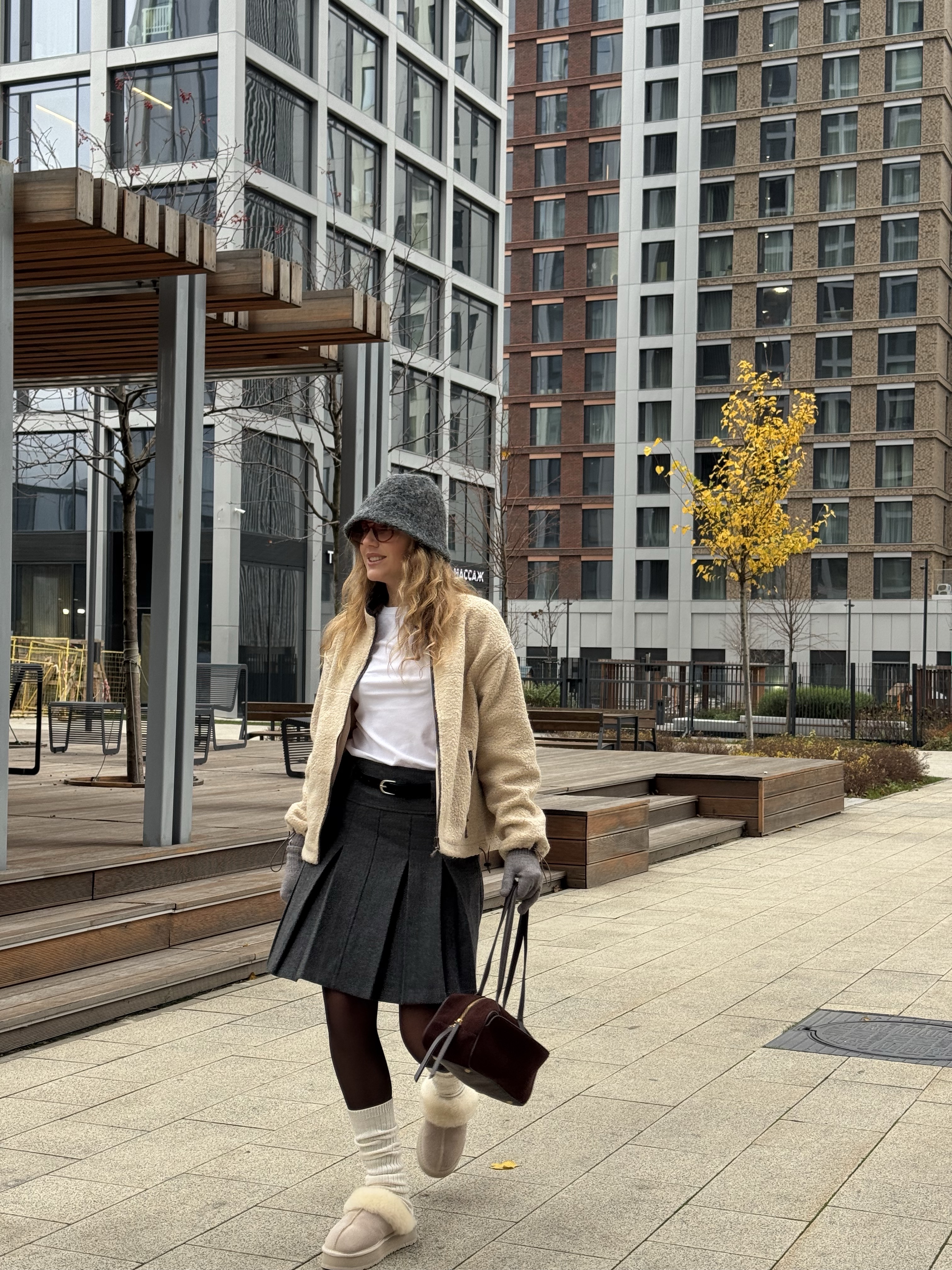 Юбка из тёплой шерстяной ткани с мягкой фактурой и удобной посадкой на талии. Глубокие встречные складки создают аккуратный объём и красиво двигаются при ходьбе. Благодаря плотному материалу модель отлично подходит для зимнего сезона — она сохраняет тепло и при этом выглядит элегантно. Идеальна для образов с уютными свитерами, гольфами, лонгсливами и тёплыми ботинками.