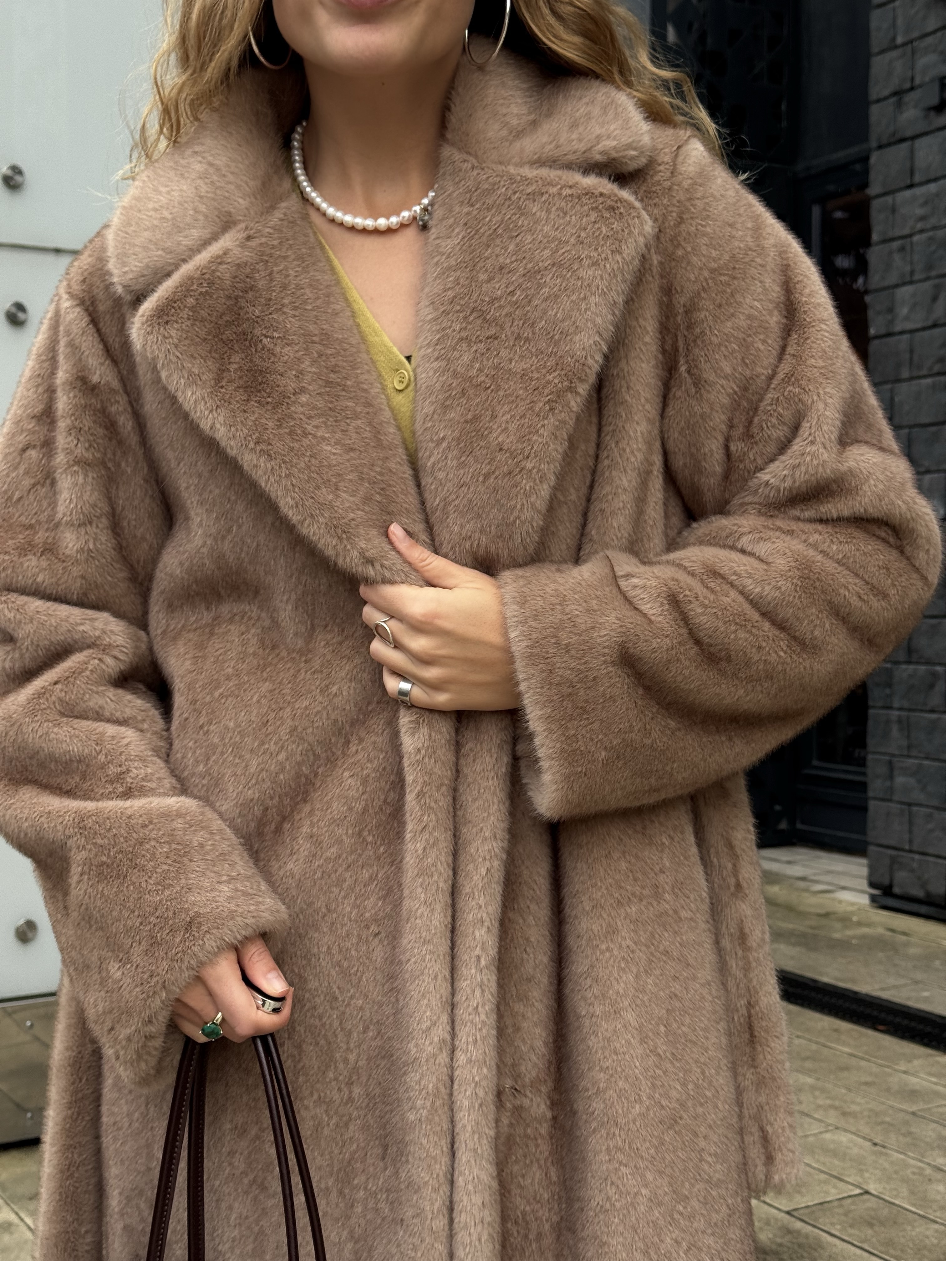 Шуба Lux — это длинный, эффектный силуэт, который сразу создаёт ощущение защищённости и спокойного комфорта. Мягкая фактура красиво ложится в движении, а макси-длина надёжно закрывает от ветра и холода, сохраняя тепло даже когда за окном –20 / –25.
