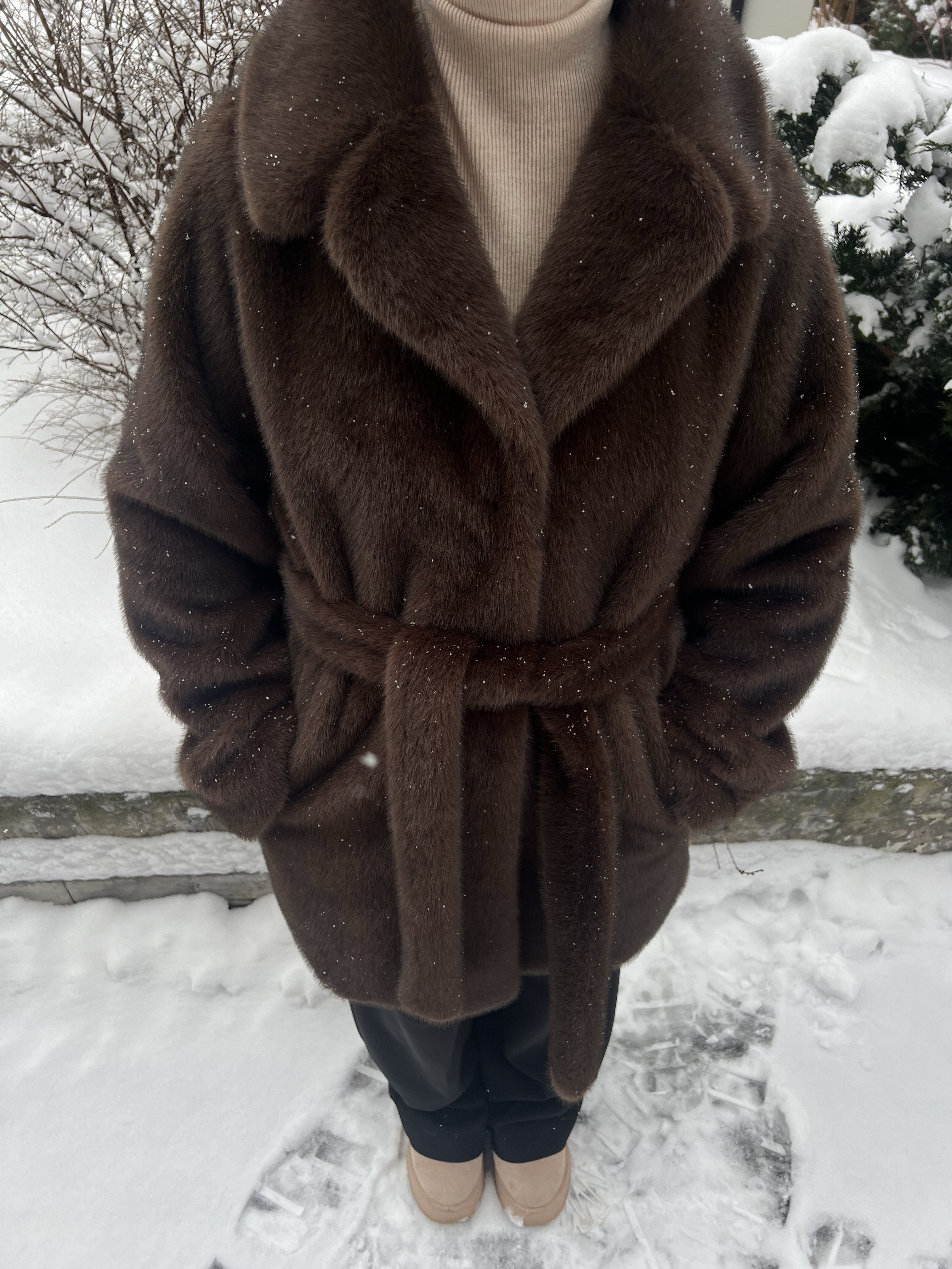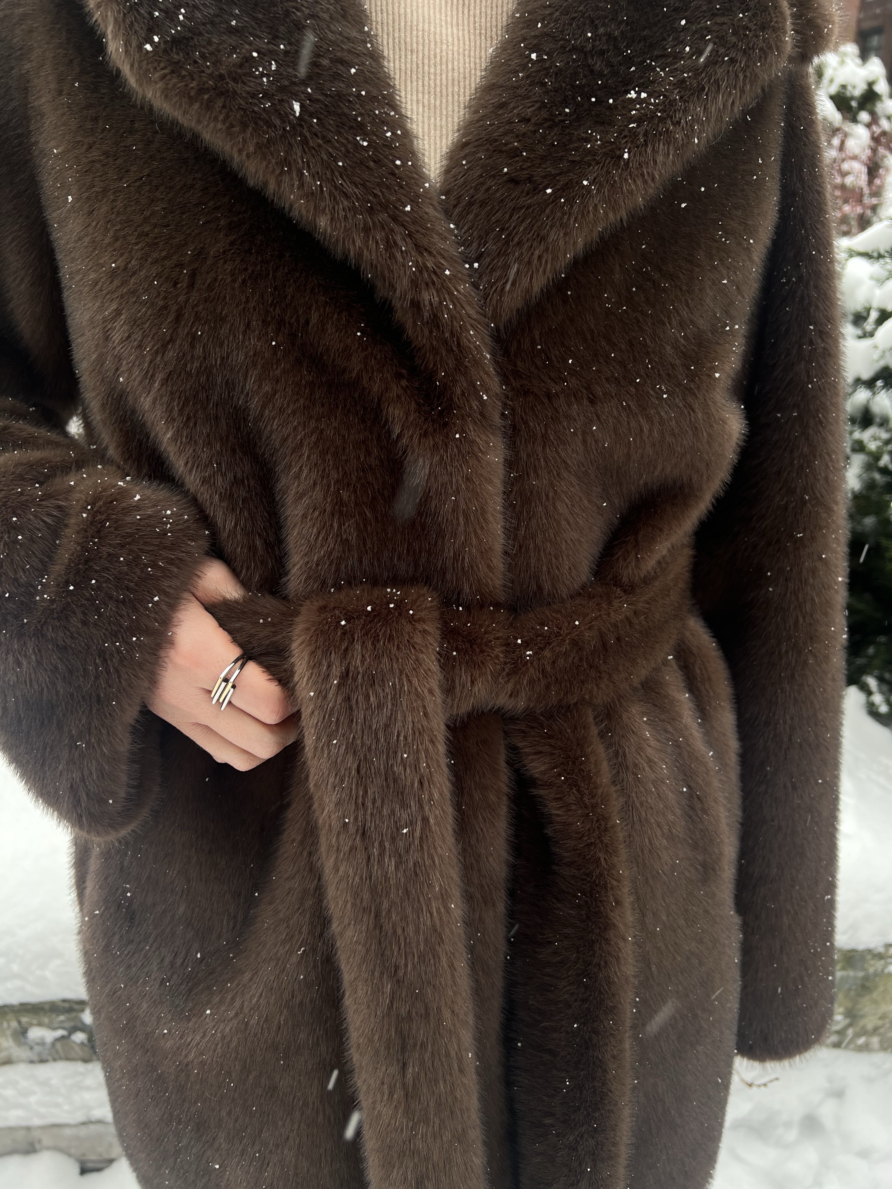 Шуба Lux — эффектный силуэт длины миди, который сразу создаёт ощущение защищённости и спокойного комфорта. Мягкая фактура красиво ложится в движении, а миди-длина надёжно закрывает от ветра и холода, сохраняя тепло даже когда за окном –20 / –25.
