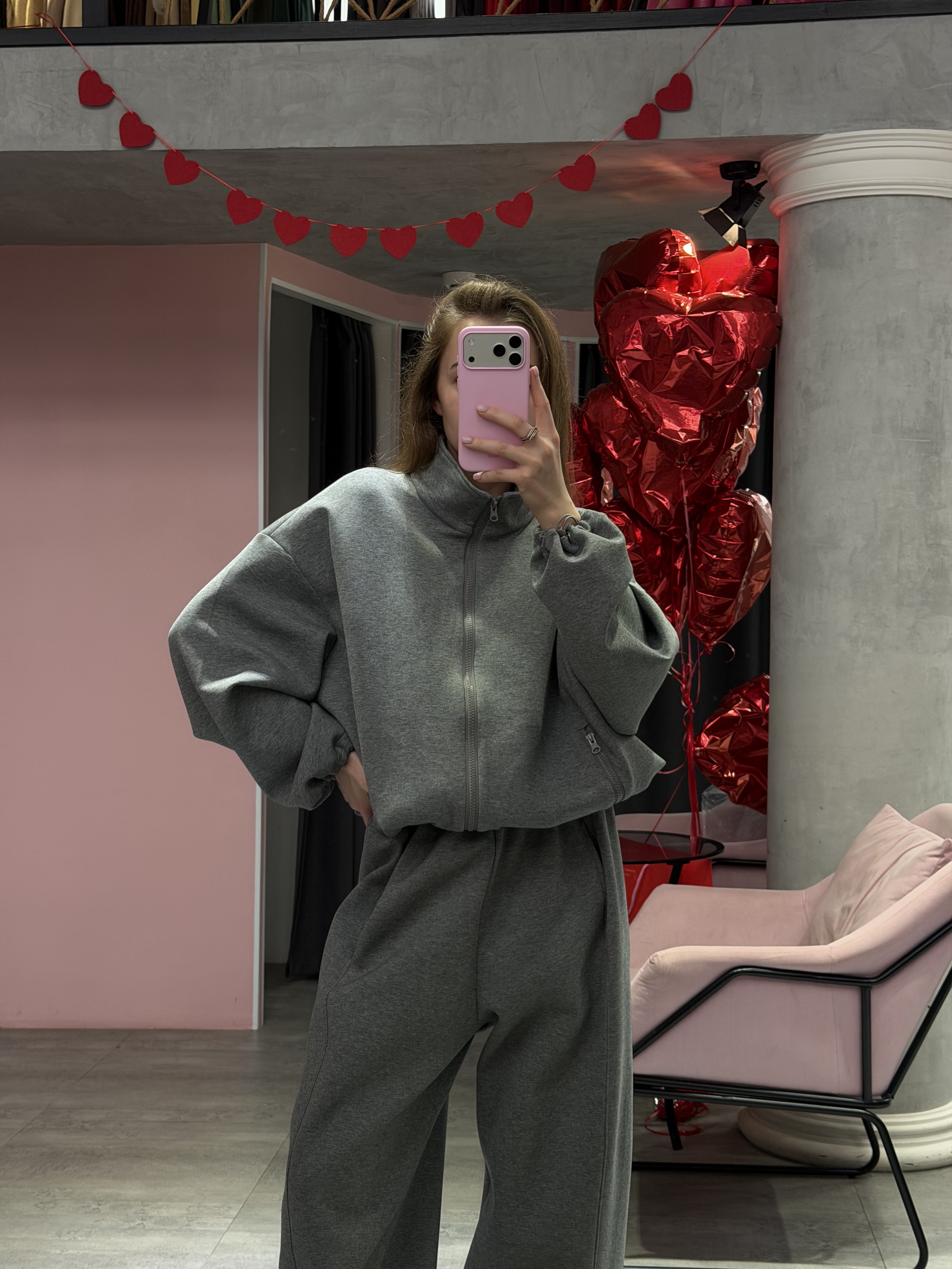 Брюки спортивного кроя с поясом на резинке обеспечивают удобную посадку и свободу движений. Костюм отлично подойдёт для прогулок, поездок и расслабленных образов на каждый день.