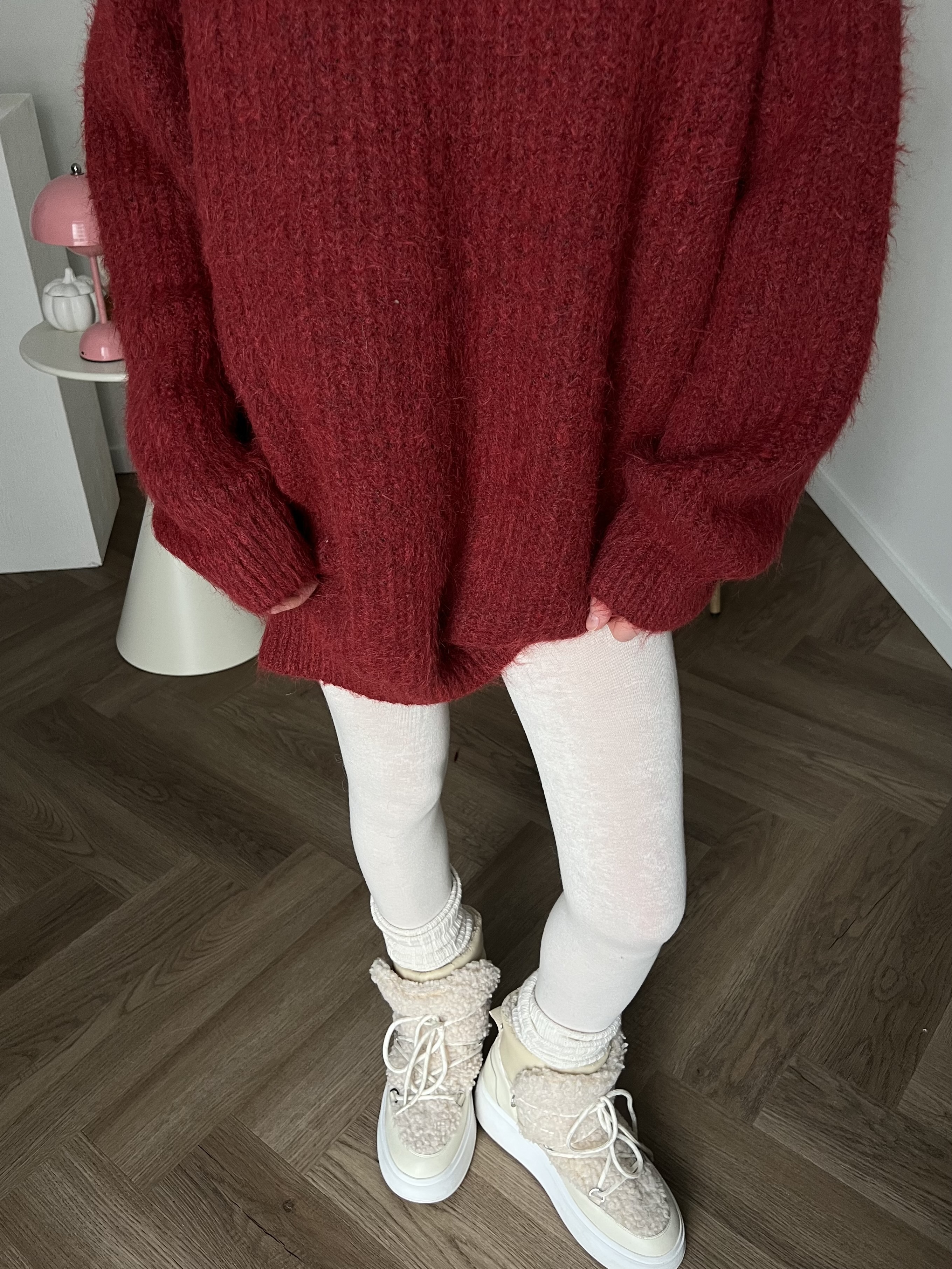 Универсальная посадка в стиле оверсайз, подходящая для разных типов фигуры. Свитер выглядит гармонично как на миниатюрных, так и на более высоких девушках, подчёркивая женственность и делая акцент на комфорте.