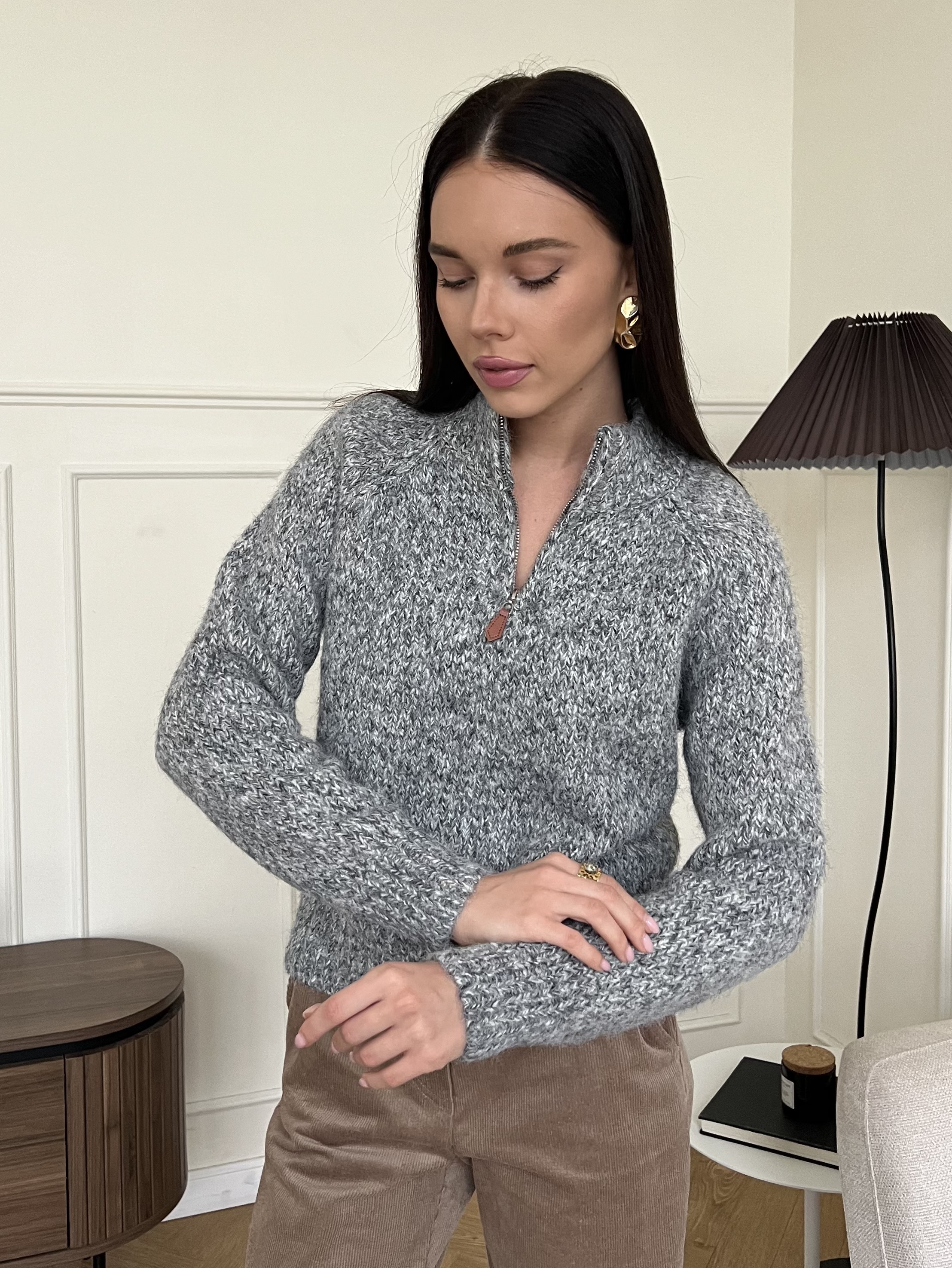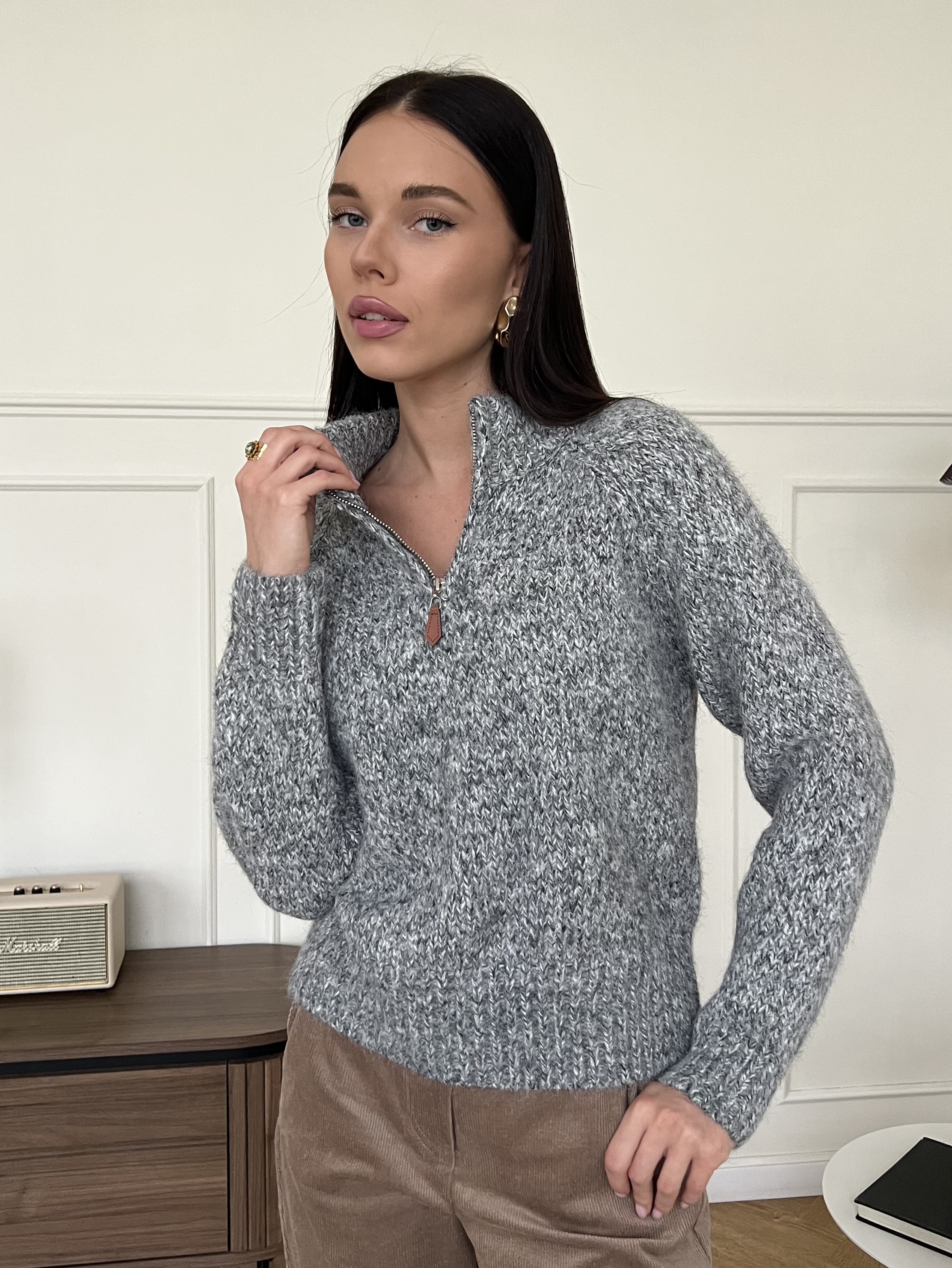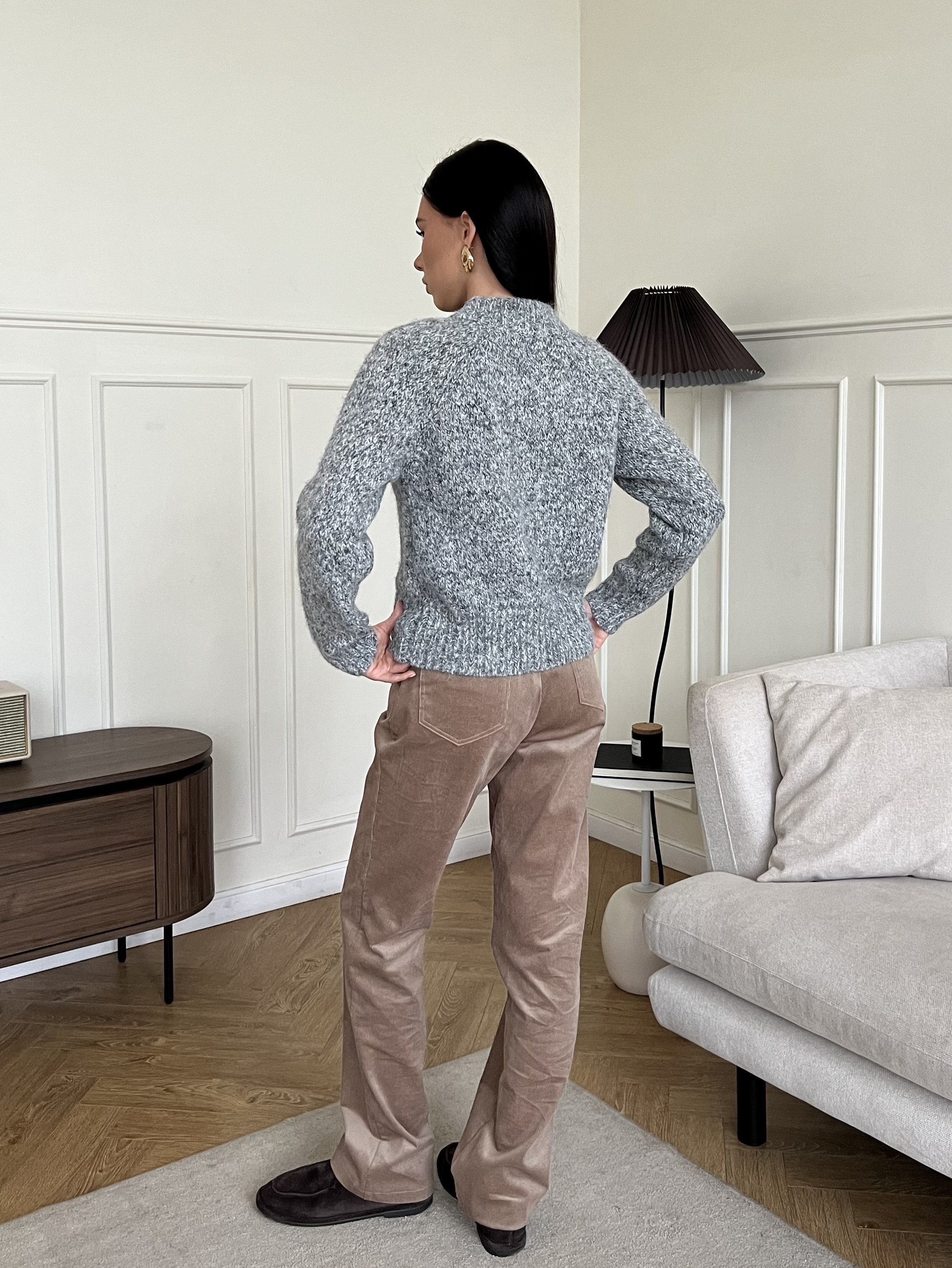 Уютный мягкий свитер с меланжевой пряжей и эффектом «вкраплений», которые создают интересную фактуру и добавляют образу живости. Модель с комфортной посадкой, слегка объёмными рукавами и аккуратной резинкой по низу и манжетам. Тёплый, нежный и приятный к телу — идеально подходит для холодного сезона и легко сочетается как с джинсами, так и с более женственными образами.