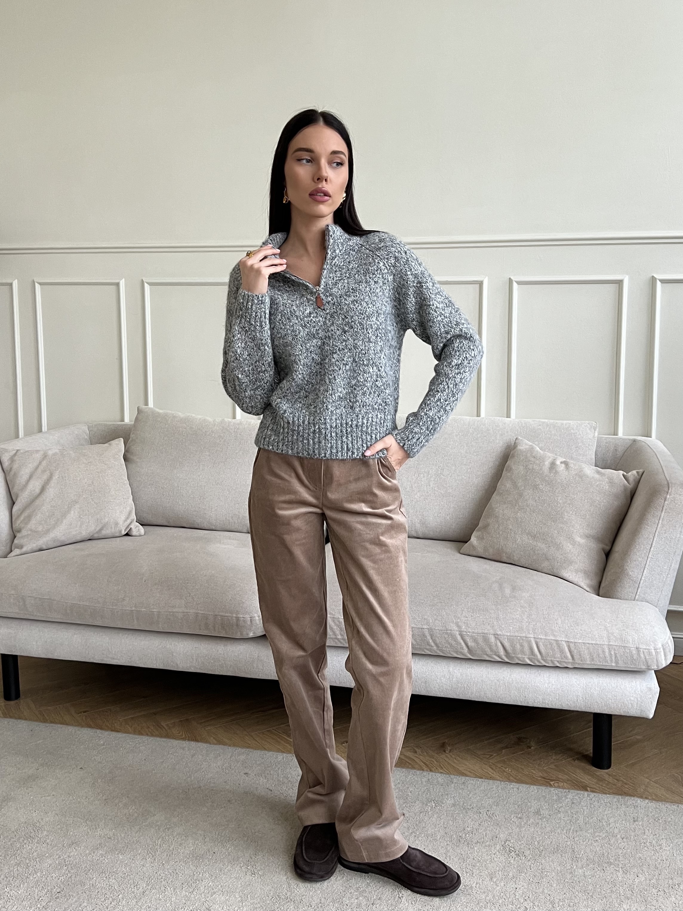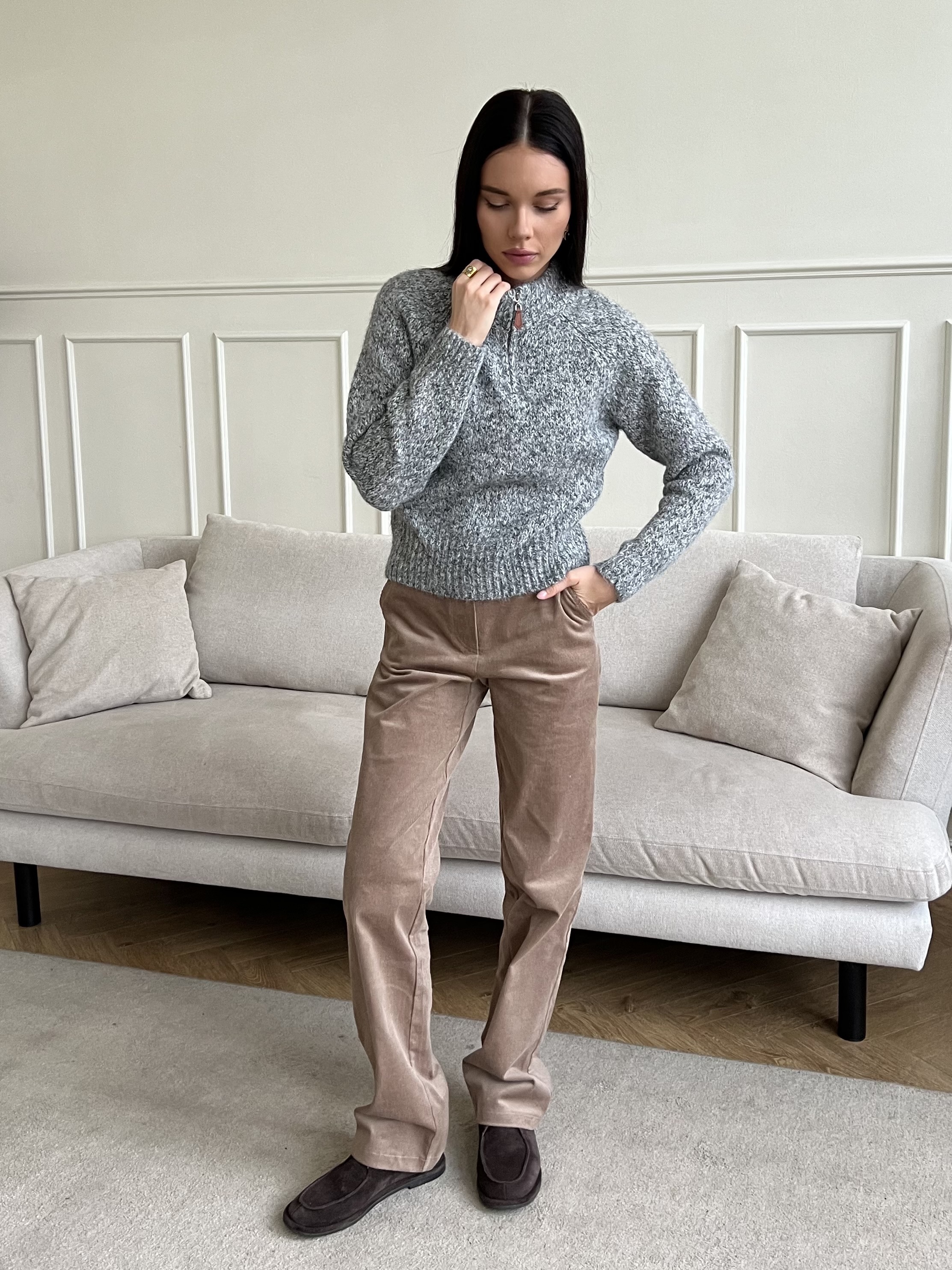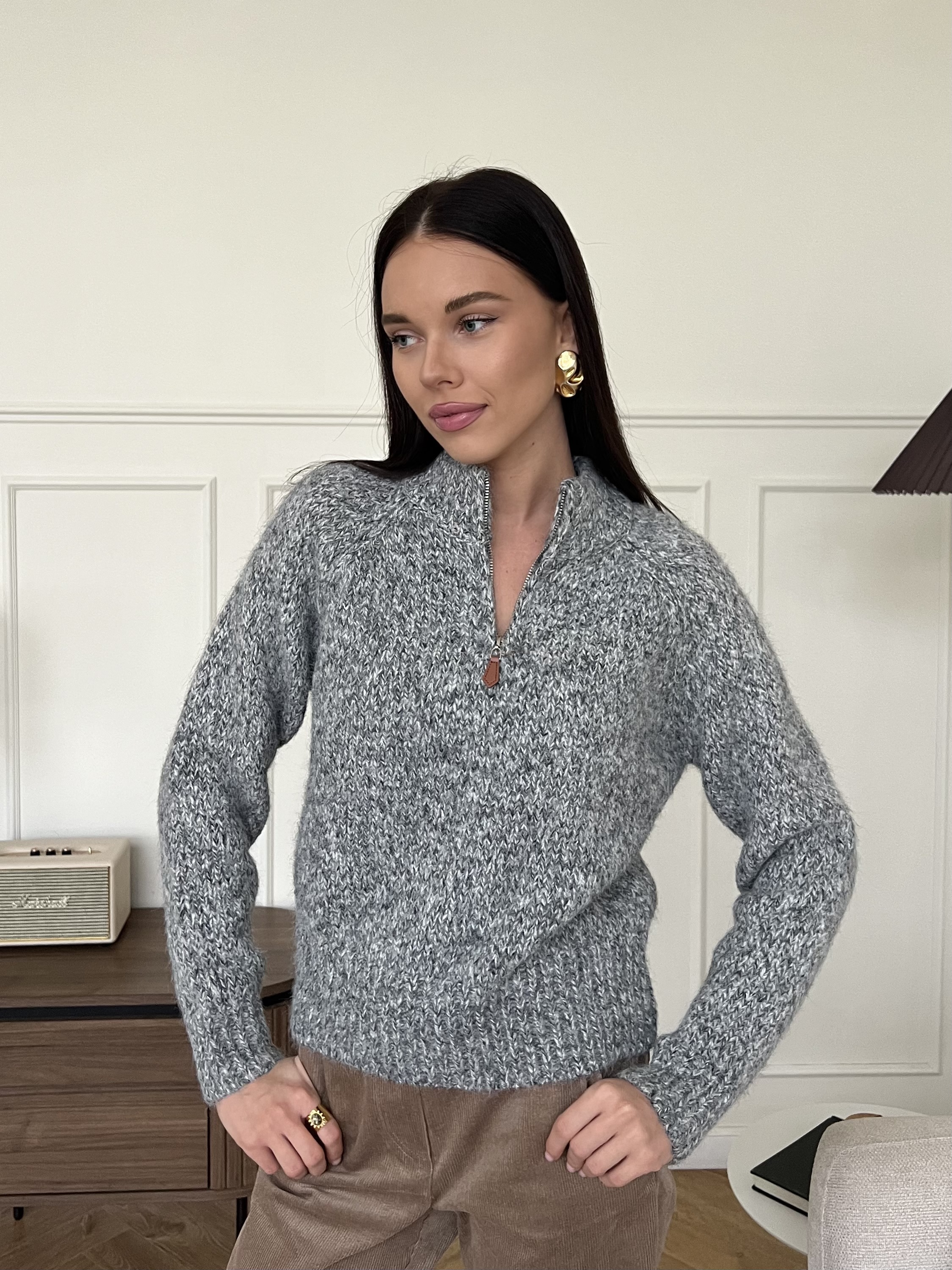 Уютный мягкий свитер с меланжевой пряжей и эффектом «вкраплений», которые создают интересную фактуру и добавляют образу живости. Модель с комфортной посадкой, слегка объёмными рукавами и аккуратной резинкой по низу и манжетам. Тёплый, нежный и приятный к телу — идеально подходит для холодного сезона и легко сочетается как с джинсами, так и с более женственными образами.