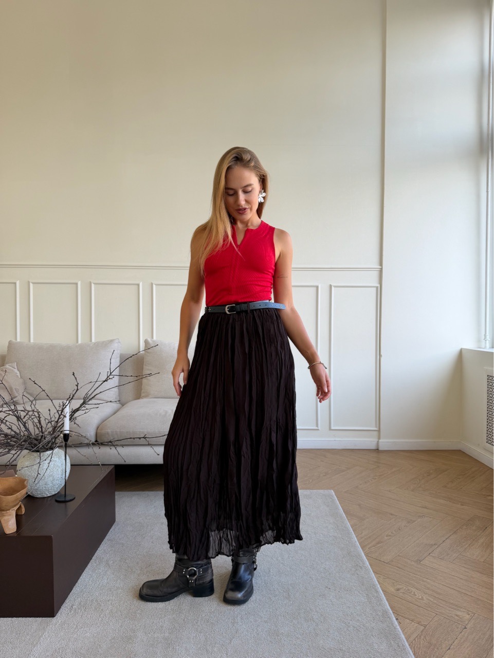 Универсальный дизайн легко вписывается в повседневный и вечерний гардероб: сочетайте с юбкой с высокой талией или прямыми брюками для сдержанного образа, либо с джинсами и эффектными украшениями для более непринуждённого стиля. Топ подчёркивает силуэт и служит стильной основой для многослойных комбинаций и сезонных экспериментов