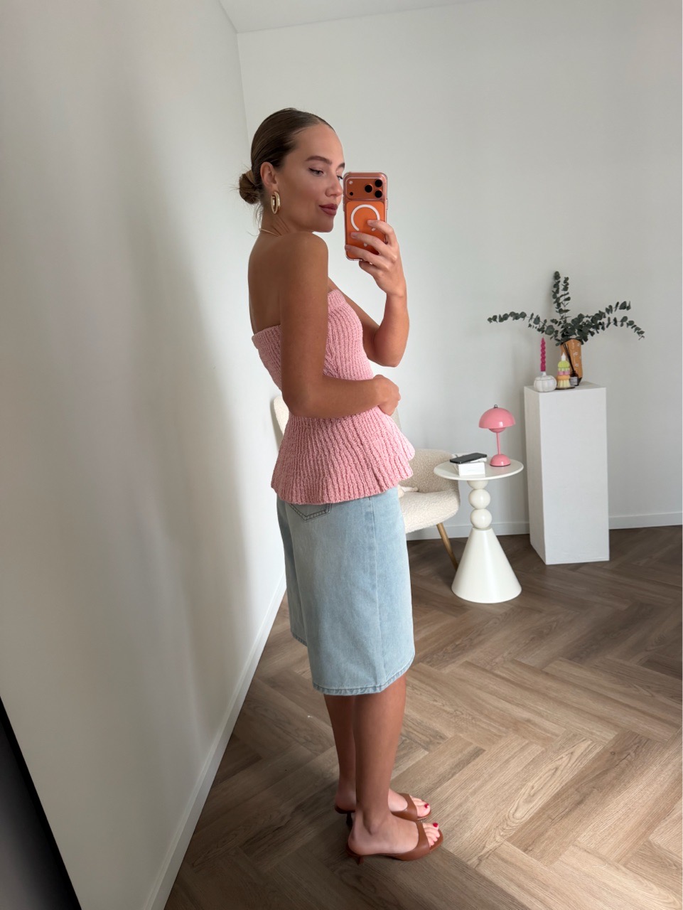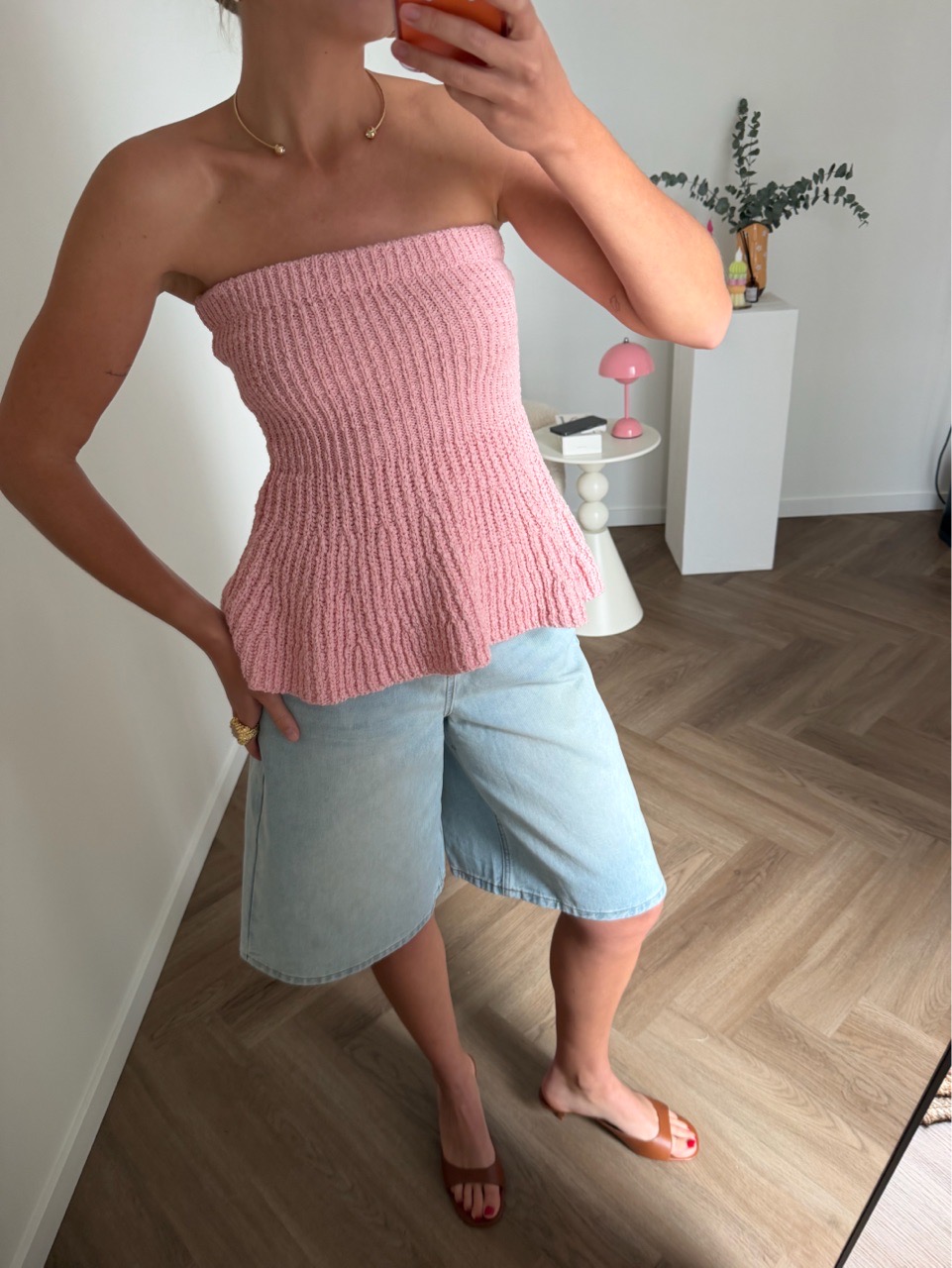 Вязаный топ без бретелей розовый