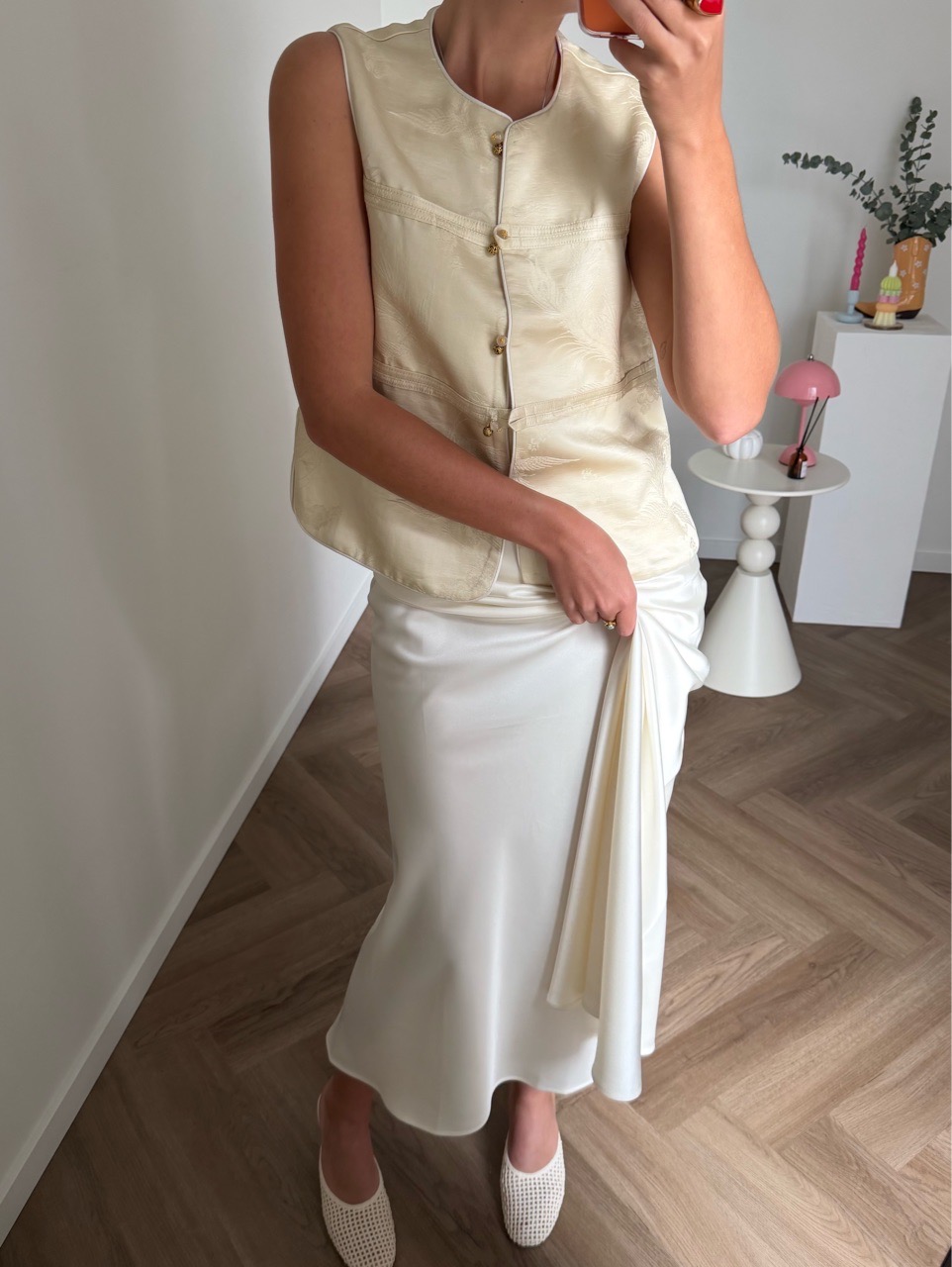 Гладкая струящаяся ткань смотрится благородно и легко комбинируется с разными фактурами — от тонкого трикотажа до структурных жакетов. Универсальная модель, которая остаётся актуальной вне сезона и трендов.