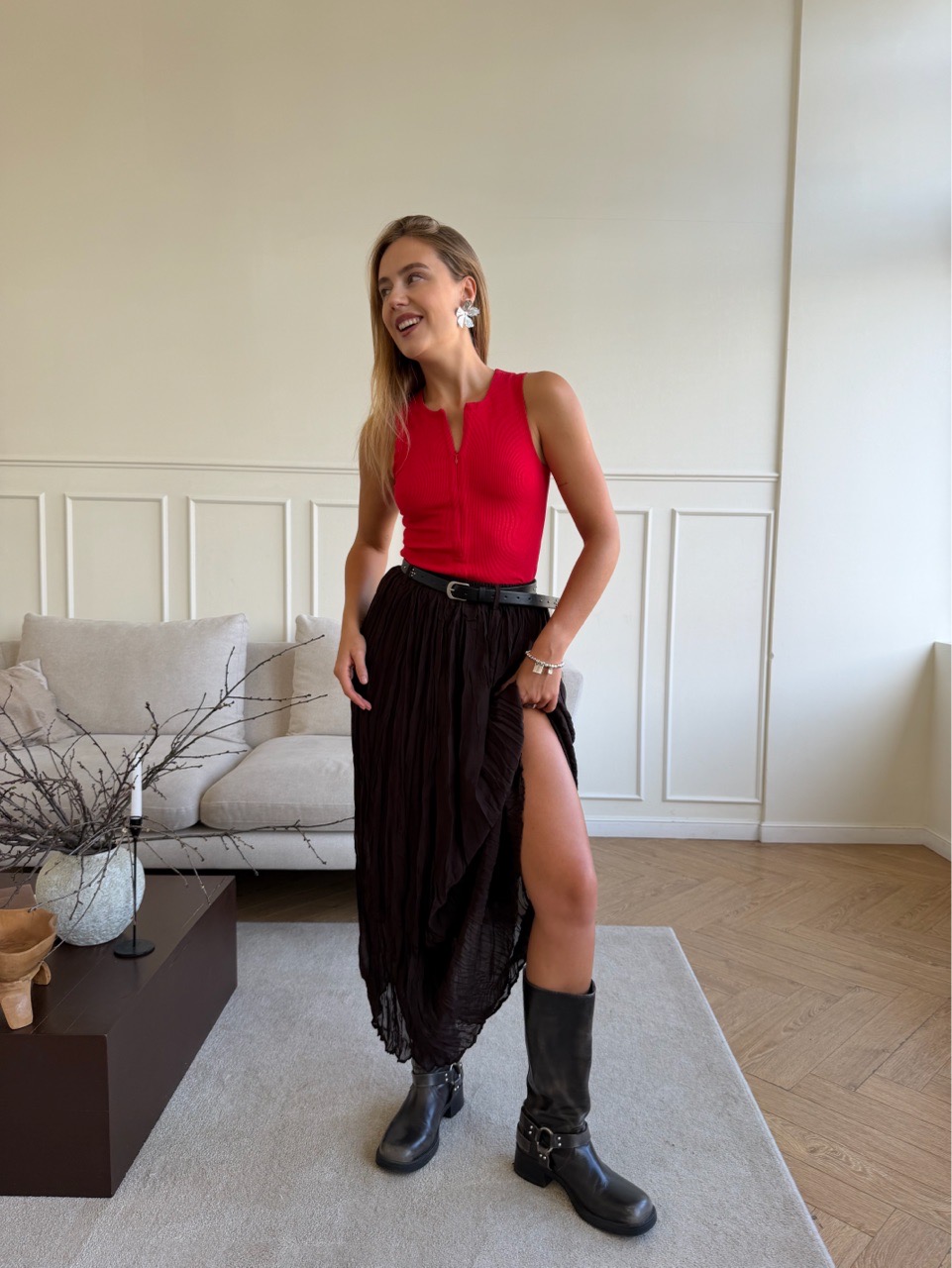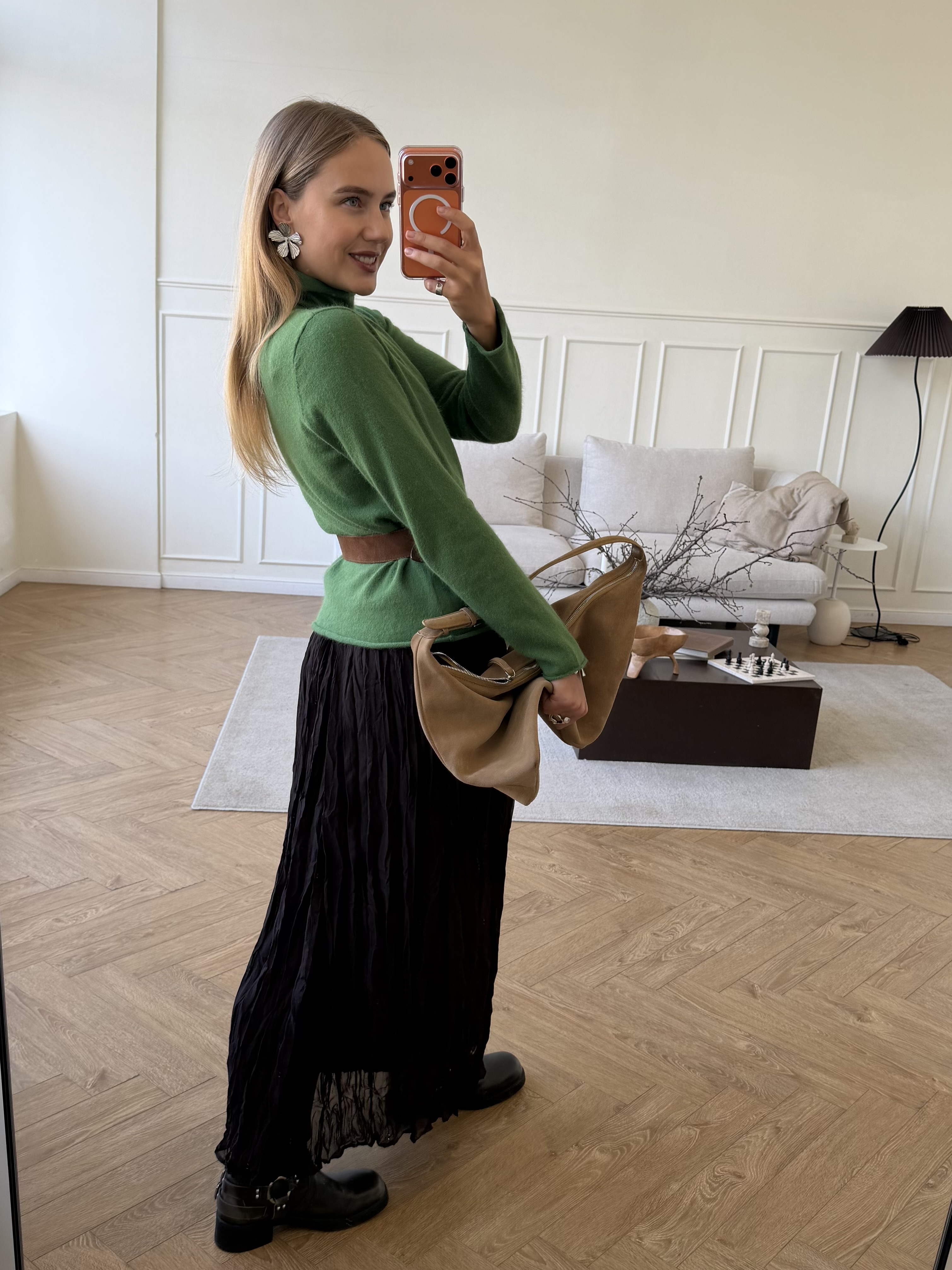 Лёгкая полупрозрачная ткань придаёт юбке воздушность, а длина макси делает её универсальной для разных стилей. Юбка легко сочетается как с лаконичными топами и трикотажем, так и с рубашками или жакетами. Её можно носить с грубыми ботинками, сапогами или более изящной обувью, создавая образы для города, прогулок и повседневных выходов.